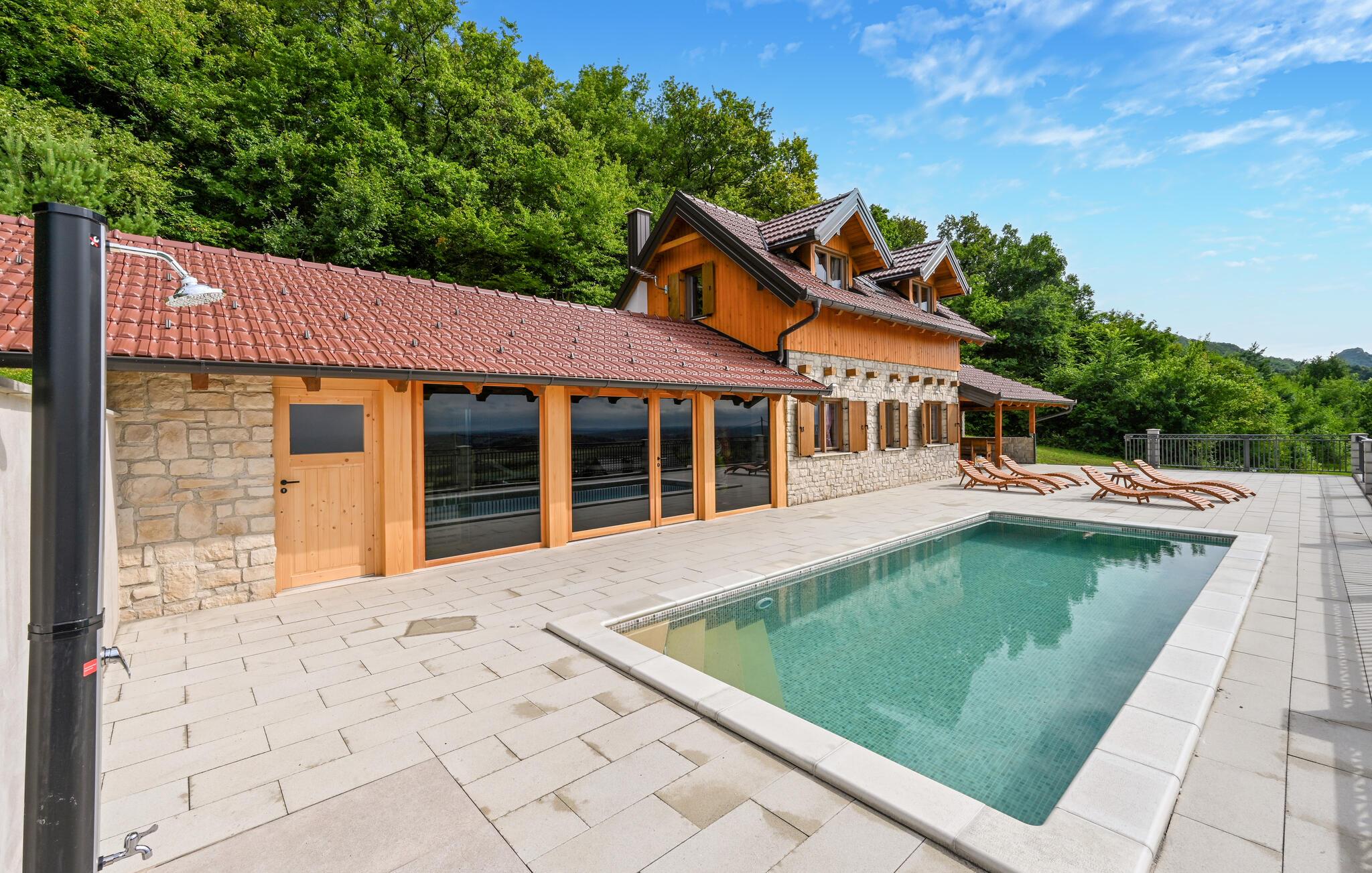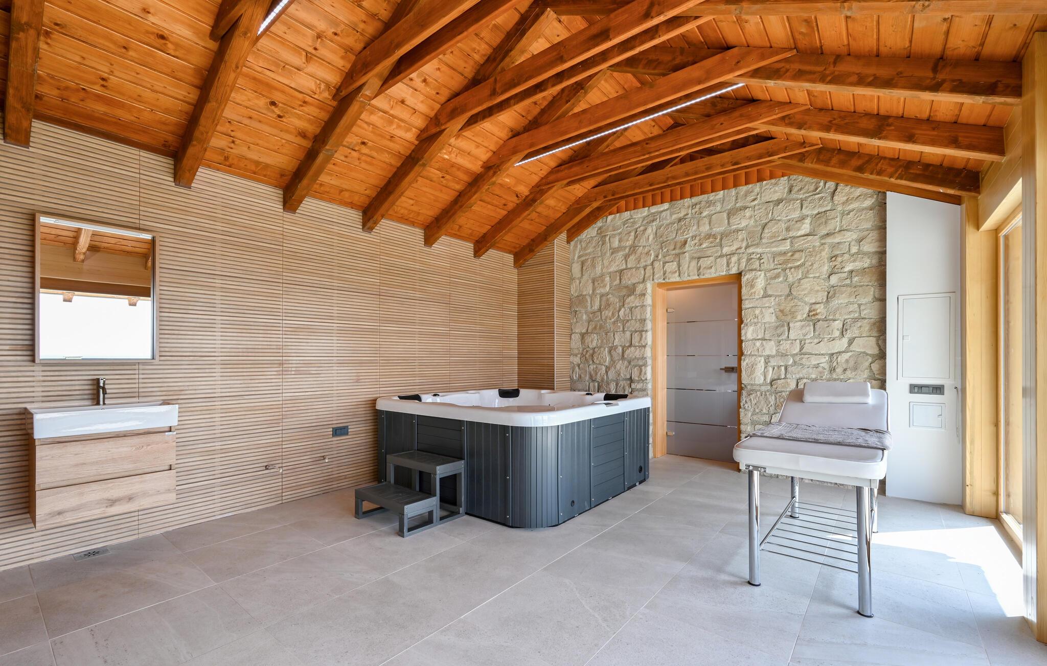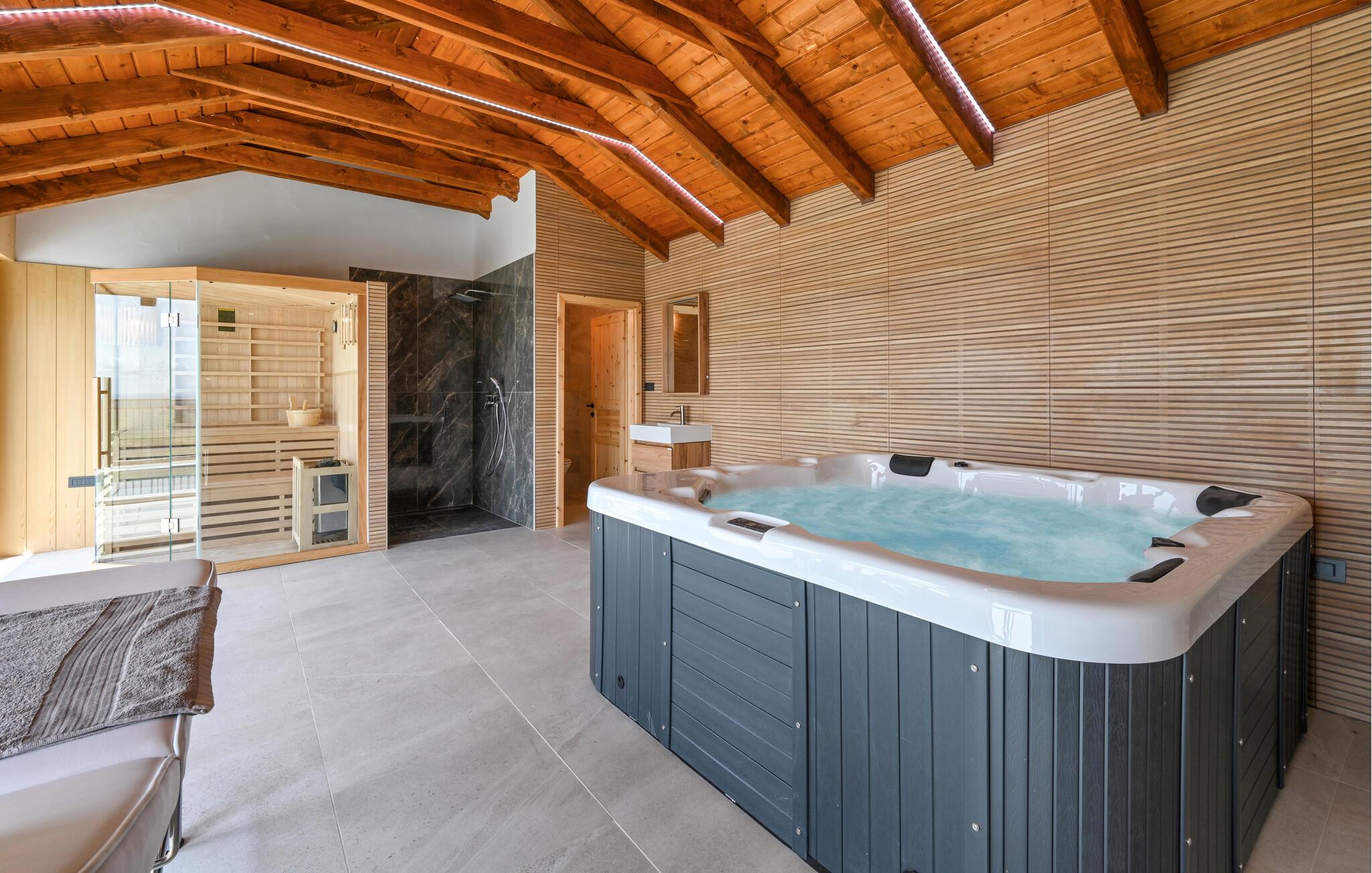 Genießen Sie einen herrlichen Urlaub in diesem Ferienhaus mit Pool und Wellness.