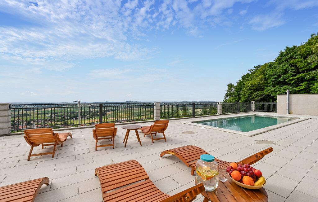 Lassen Sie den Blick weit über die Landschaft schweifen, während Sie die Sonne genießen, kühlen Sie sich vor zauberhafter Kulisse im Pool ab und servieren Sie später Köstlichkeiten vom Grill.