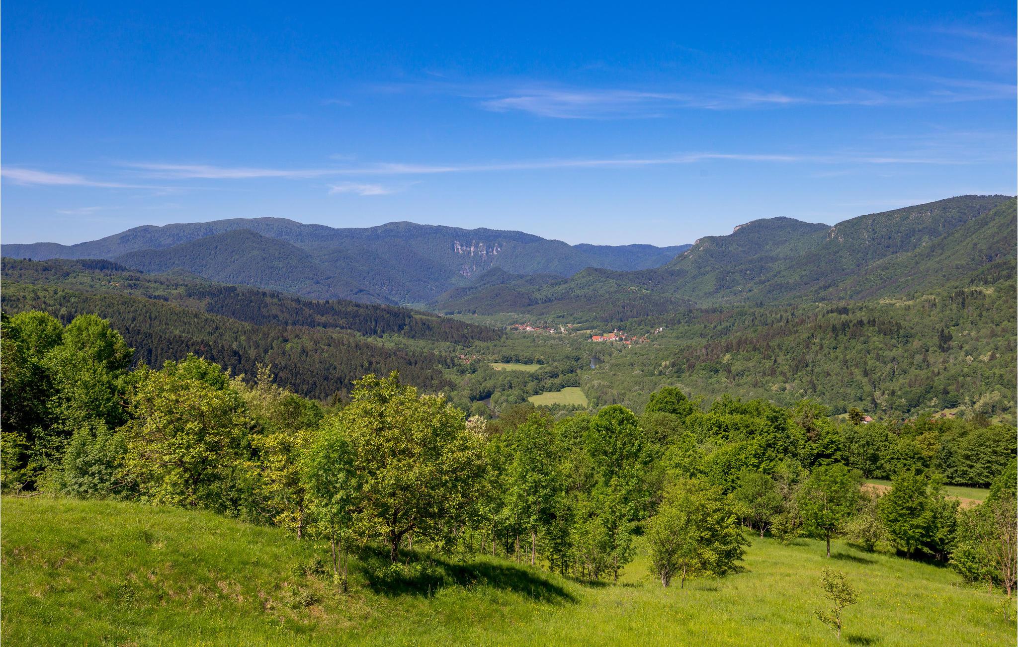 Bei der Ankunft werden Sie direkt vom Highlight des Hauses, der schönen großen Terrasse mit Blick auf die Landschaft, überzeugt. Hier machen Sie es sich jederzeit bequem und genießen Ihren Morgenkaffee, eine reichhaltige Mittagsmahlzeit, ein gutes Buch oder ganz einfach die fantastische Aussicht und die Sonne. Umgeben sind Sie hier von grünen Bergen, rund um das Tal des slowenischen Grenzflusses Kolpa.