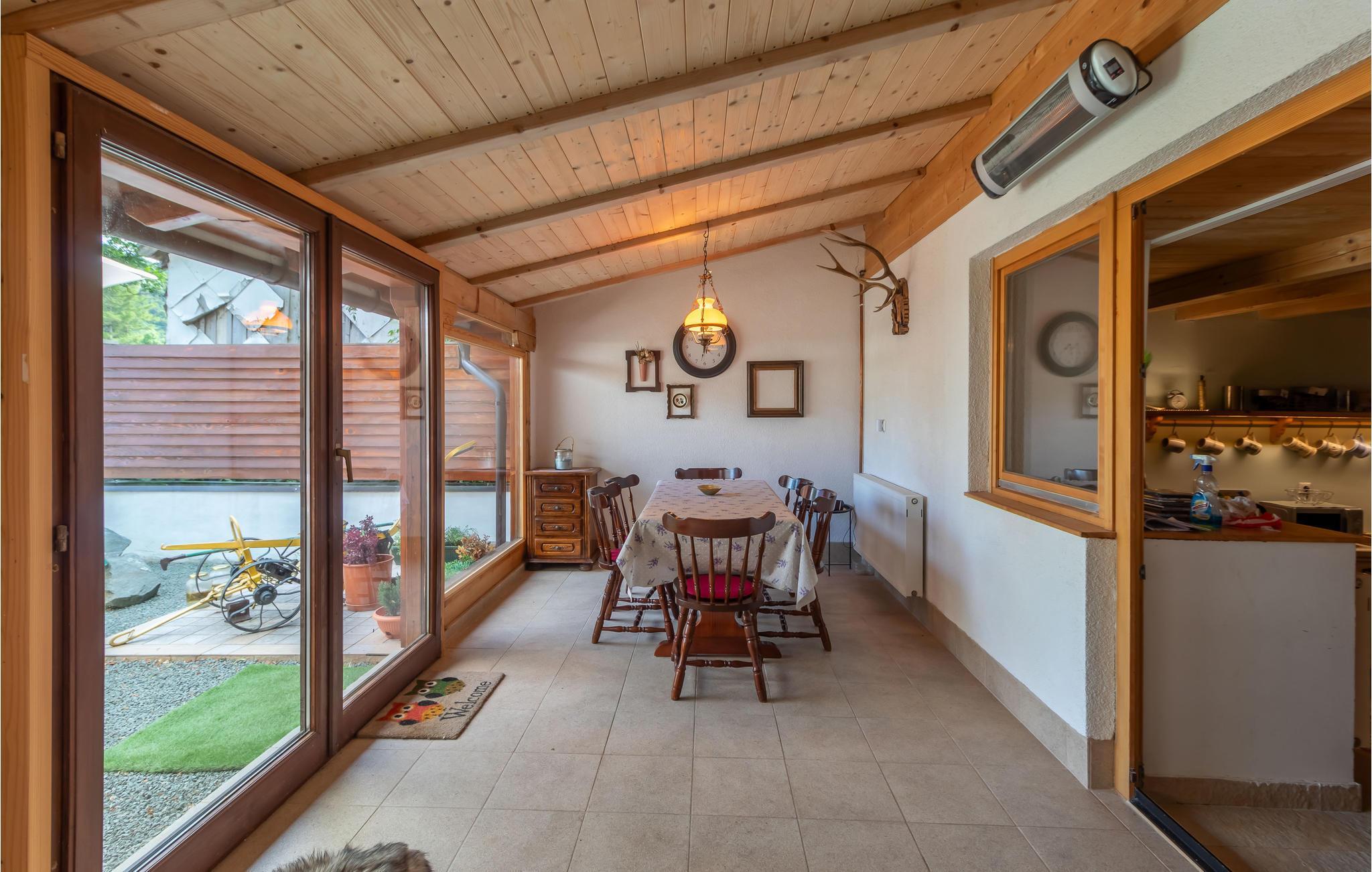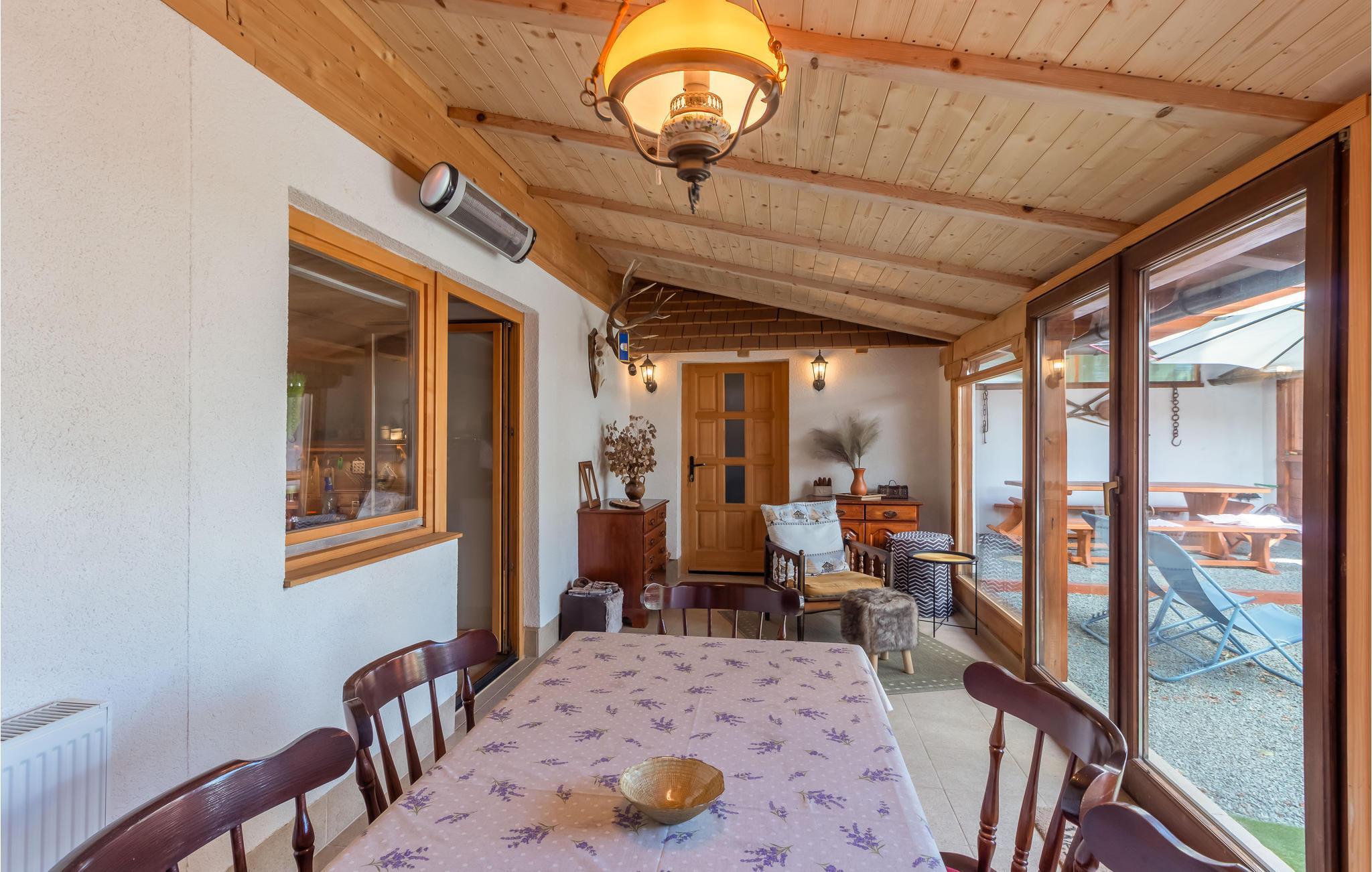 Freuen Sie sich auf dieses Haus, das ideal für diejenigen ist, die gerne wandern und in den Bergen spazieren gehen. Das Haus ist einladenden und bietet Ihnen und Ihren Lieben viel Platz, Dabei können Sie sich auf das gemütliche Ambiente von Holzdecken und Wänden freuen und es sich in den Wohnräumen mit liebevollem Dekor wohlfühlen. Auch im Garten können Sie sich im Anbau auf ruhige und entspannte Stunden freuen. Baden Sie im Whirlpool und kommen Sie zur Ruhe!