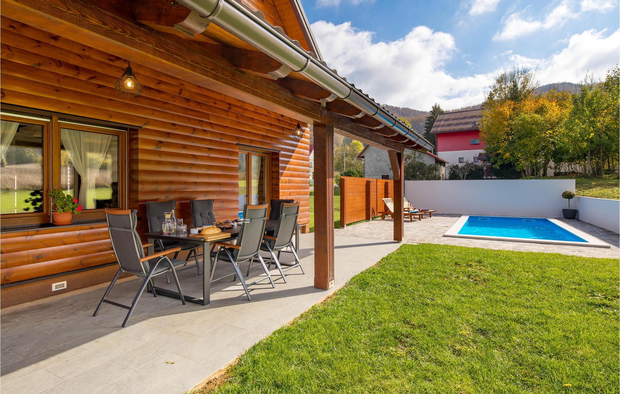 Wenn Sie vom Haus in den Garten treten, befinden Sie sich auf einer großen, überdachten Terrasse, auf der Sie Ihre Lieblingsspeisen auf dem Grill zubereiten und zusammen essen können. Ein schöner Swimmingpool und Spielgeräte für Ihre Kinder runden das tolle Angebot des Hauses für Sie ab. Genießen Sie einen großartigen Ausblick auf die grüne Gebirgswelt um das Grundstück herum.
