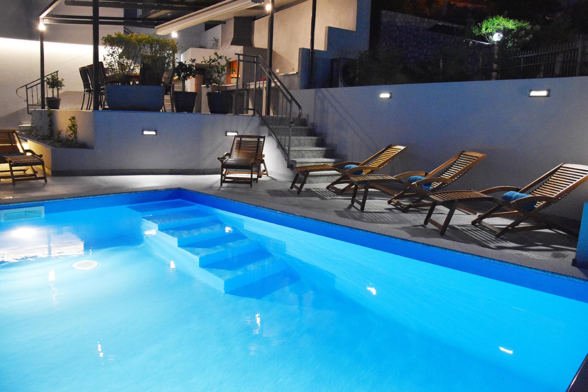 Perfect holiday home for nice barbecue evenings with friends or family on the poolside terrace with sea. Dogs and house cleaning are extra charged at check-in!