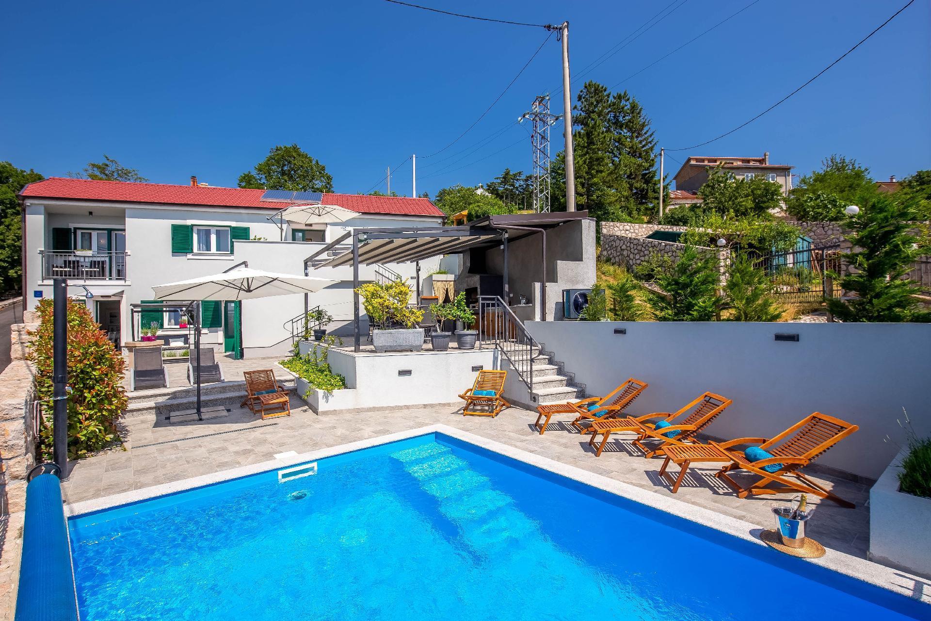Villa with pool, terrace, barbecue, children’s playground, sauna and gym, Croatia Newly renovated 5-star house “Leticija” is located in Kvarner bay in the picturesque village Hreljin. A small, traditional village between sea and mountains offers peace and relaxation. A paradise for a relaxing holiday. In the village there are grocery, butcher, pharmacy cafe – bar and ATM.