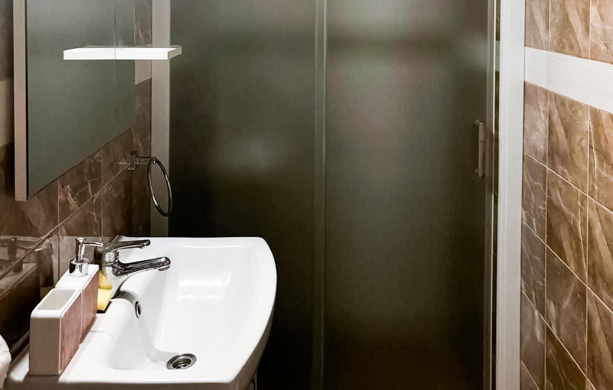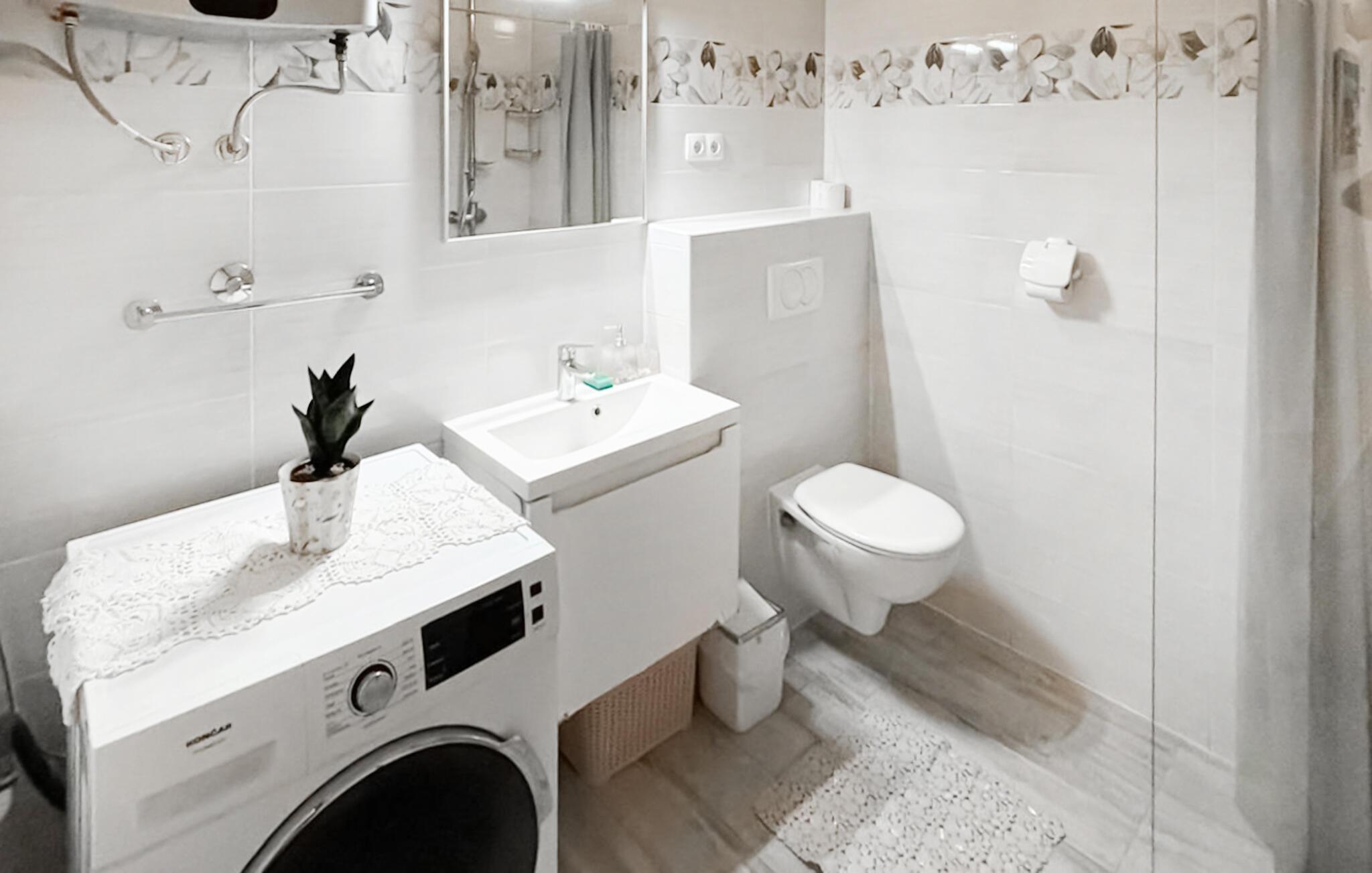 Badezimmer 5m2 (nr. 1) - WC. Warmes und kaltes Wasser. Dusche