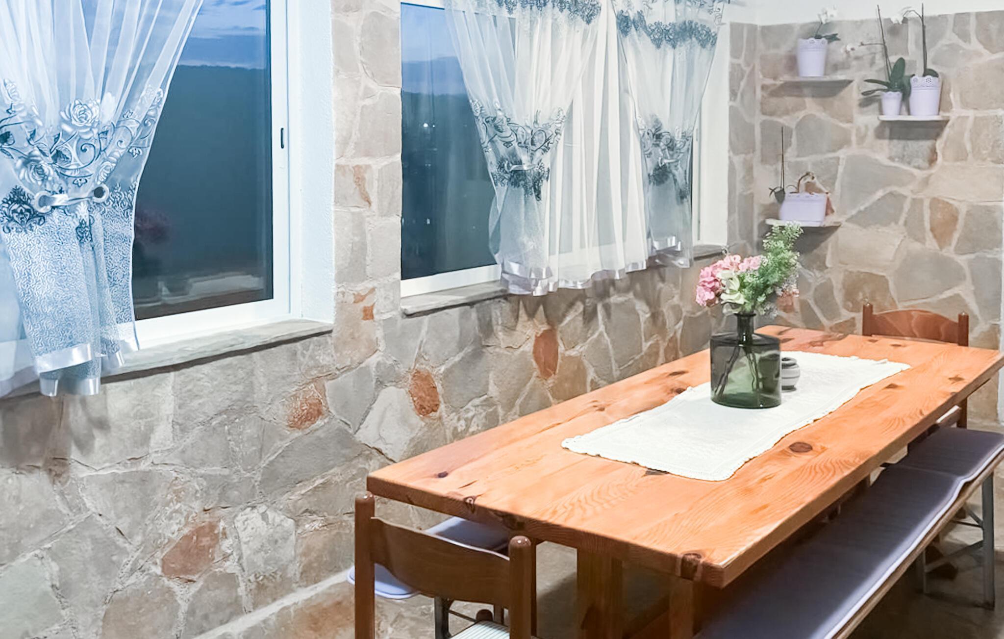 Machen Sie es sich bequem in dieser komfortablen Ferienwohnung, in der Sie mit der ganzen Familie einen gemütlichen Urlaub nahe der Adriaküste genießen können. Versuchen Sie sich in der modernen Küche an kroatischen Gerichten und genießen Sie diese wahlweise im modernen Essbereich oder im rustikalen Ambiente mit Natursteinwänden und Weitblick. Lassen Sie sich nach einem langen Ausflugstag auf dem Sofa nieder und gönnen Sie sich einen guten Film oder einen geselligen Spieleabend.
