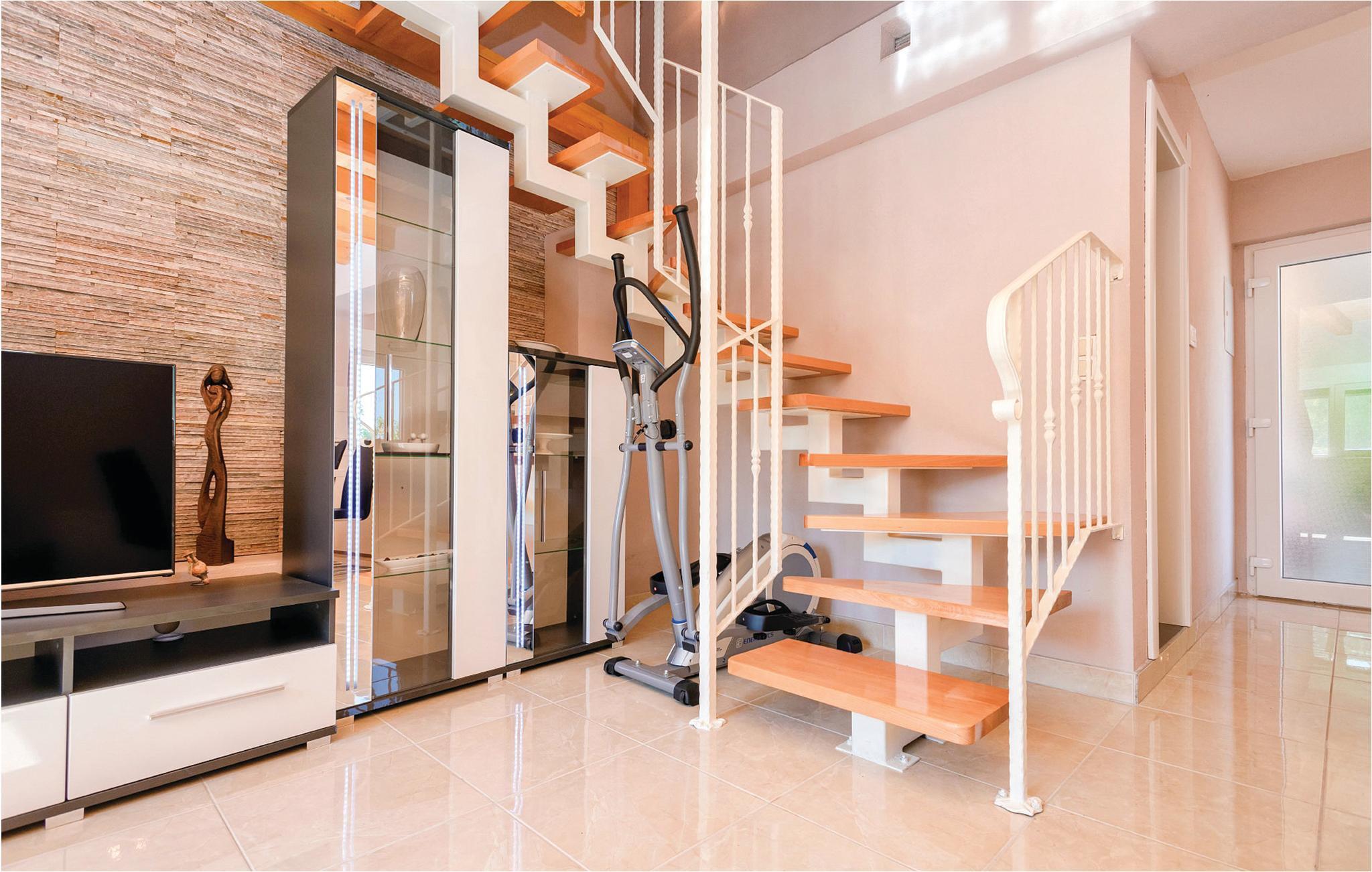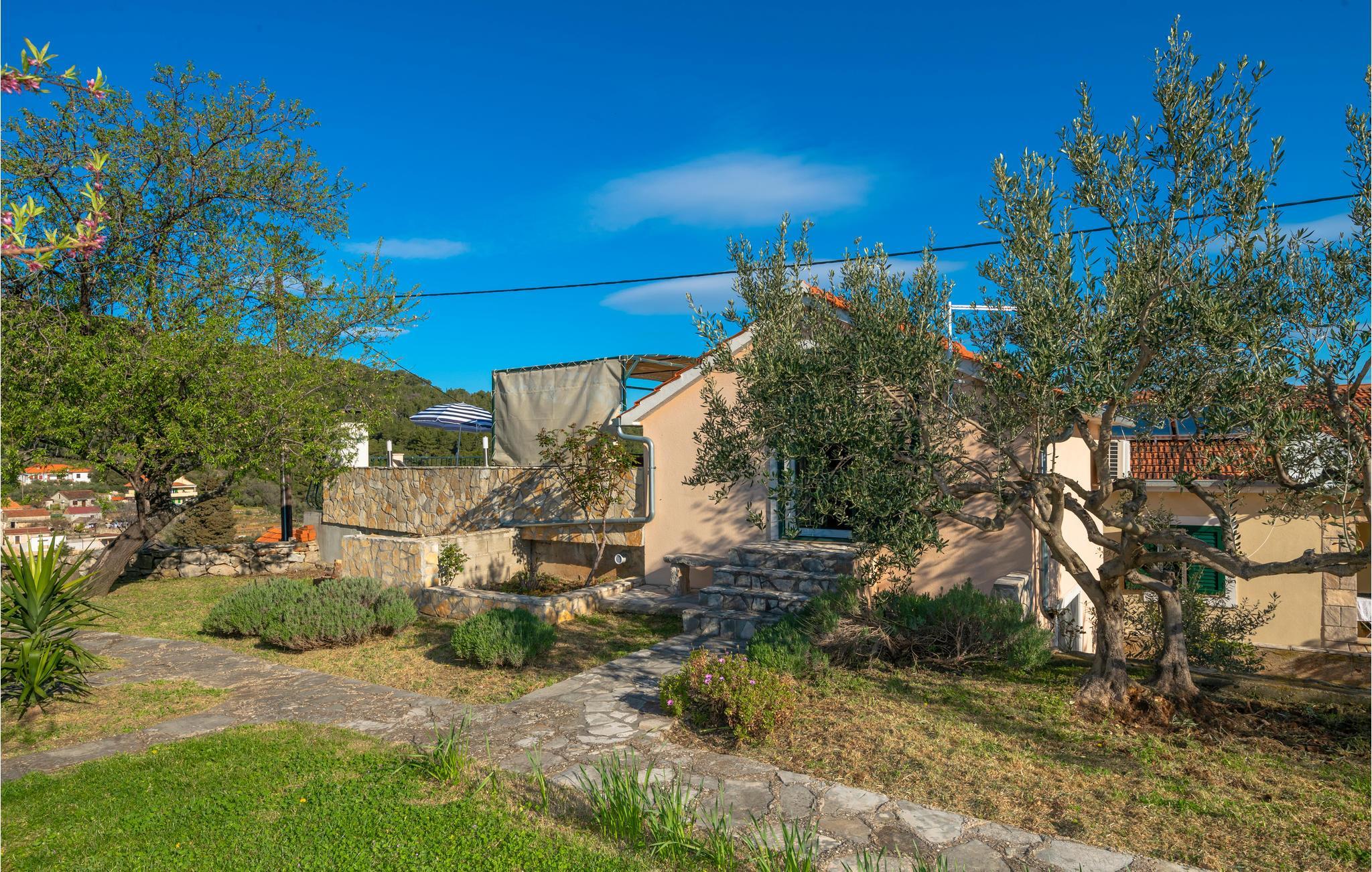 Der malerische Ort Dol auf der Insel Hvar liegt nur einen Katzensprung von der bekannten Stadt Stari Grad, wo Sie Ihren Urlaub in diesem modern ausgestatteten Ferienhaus verbringen können. Zum Schlafzimmer im Spitzboden, wo die minimale Deckenhöhe 150 cm beträgt, gelangen Sie über eine Wendeltreppe. Aus dem Schlafzimmer kommen Sie auf die großzügige Terrasse, ideal um den Tag mit einem Frühstück zu beginnen. Vor dem Haus befindet sich noch eine überdachte Terrasse, auf der Sie gemütliche Grillabende verbringen können.
