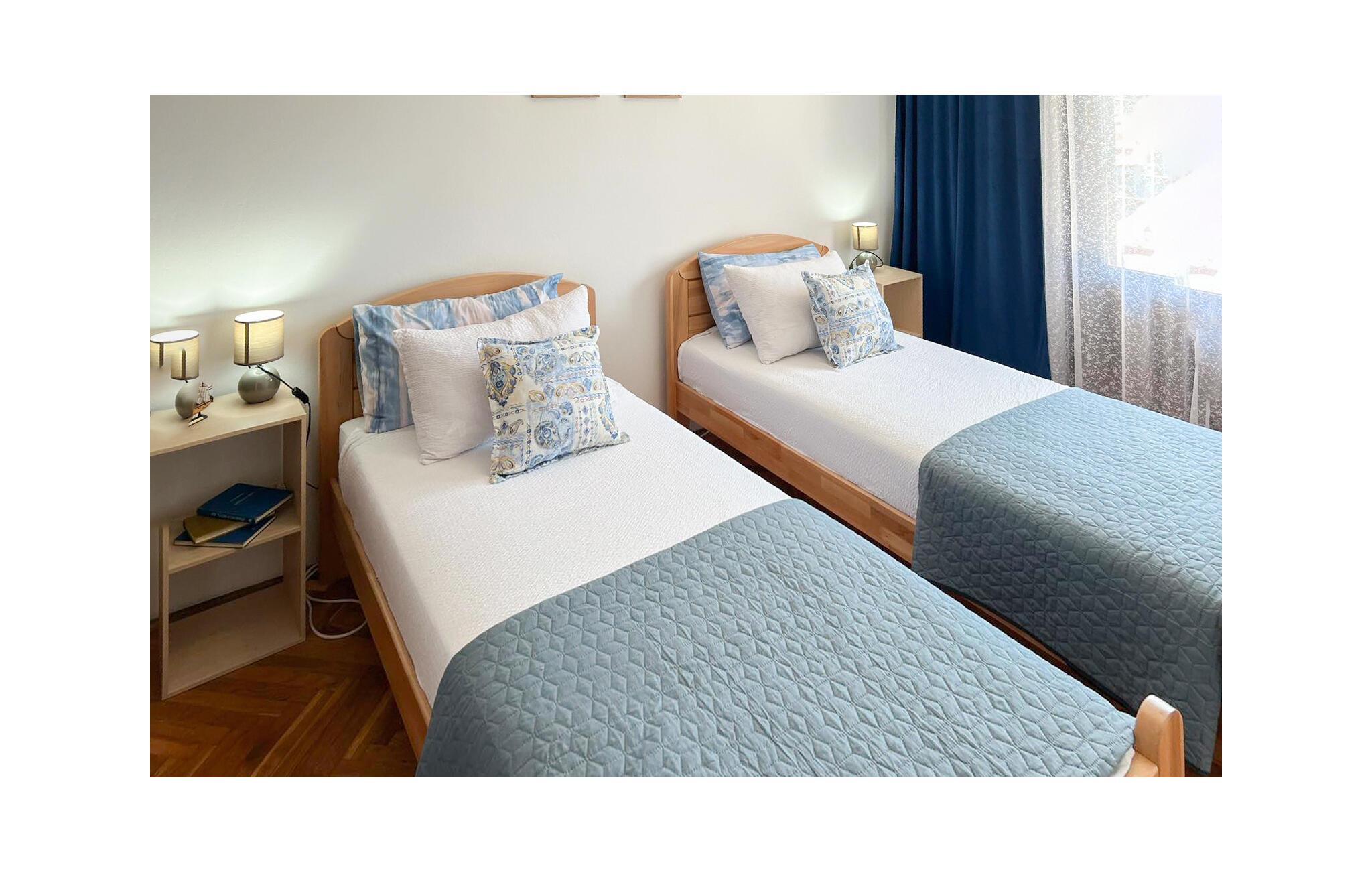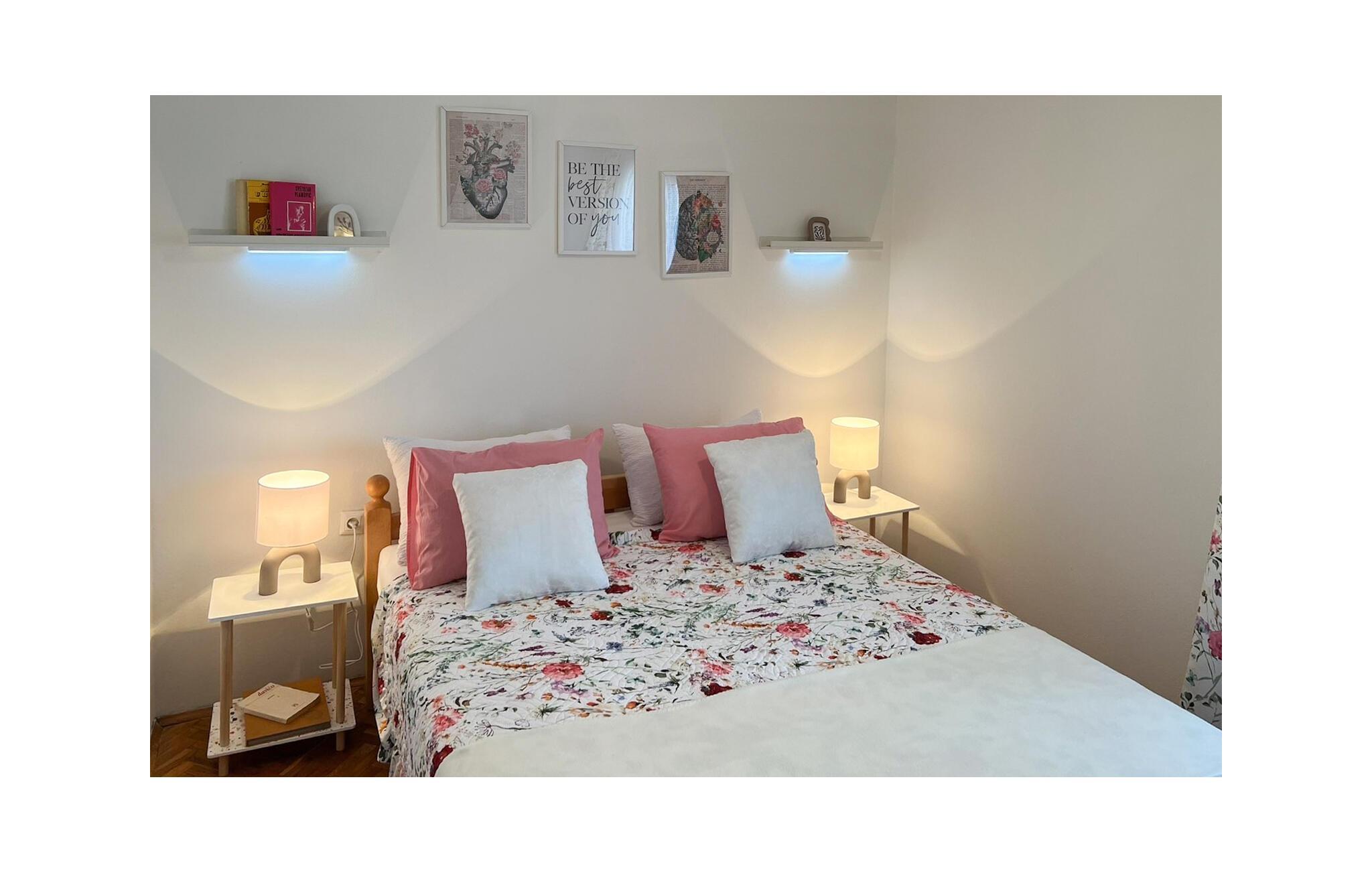 Hvar, die Insel der Sonne, mit üppiger mediterraner Natur ist eine reiche Schatzkammer des kulturellen und historischen Erbes. Auf der ersten Etage eines Einfamilienhauses ist diese geräumige Ferienwohnung platziert und besteht aus drei Schlafzimmern und drei Terrassen, die Blick auf den Garten haben. In 5 Gehminuten gelangen Sie zum Marktplatz, wo es immer lebhaft ist. Zum nächsten Stadtstrand, vor dem Franziskanerkloster, führen Sie ein leichter Hang und Treppen. Dort kann man ein Boot mieten und Ausflüge auf die vielen Inseln um Hvar machen. Eine 40 m lange Treppe bildet den Zugang zum Haus.
