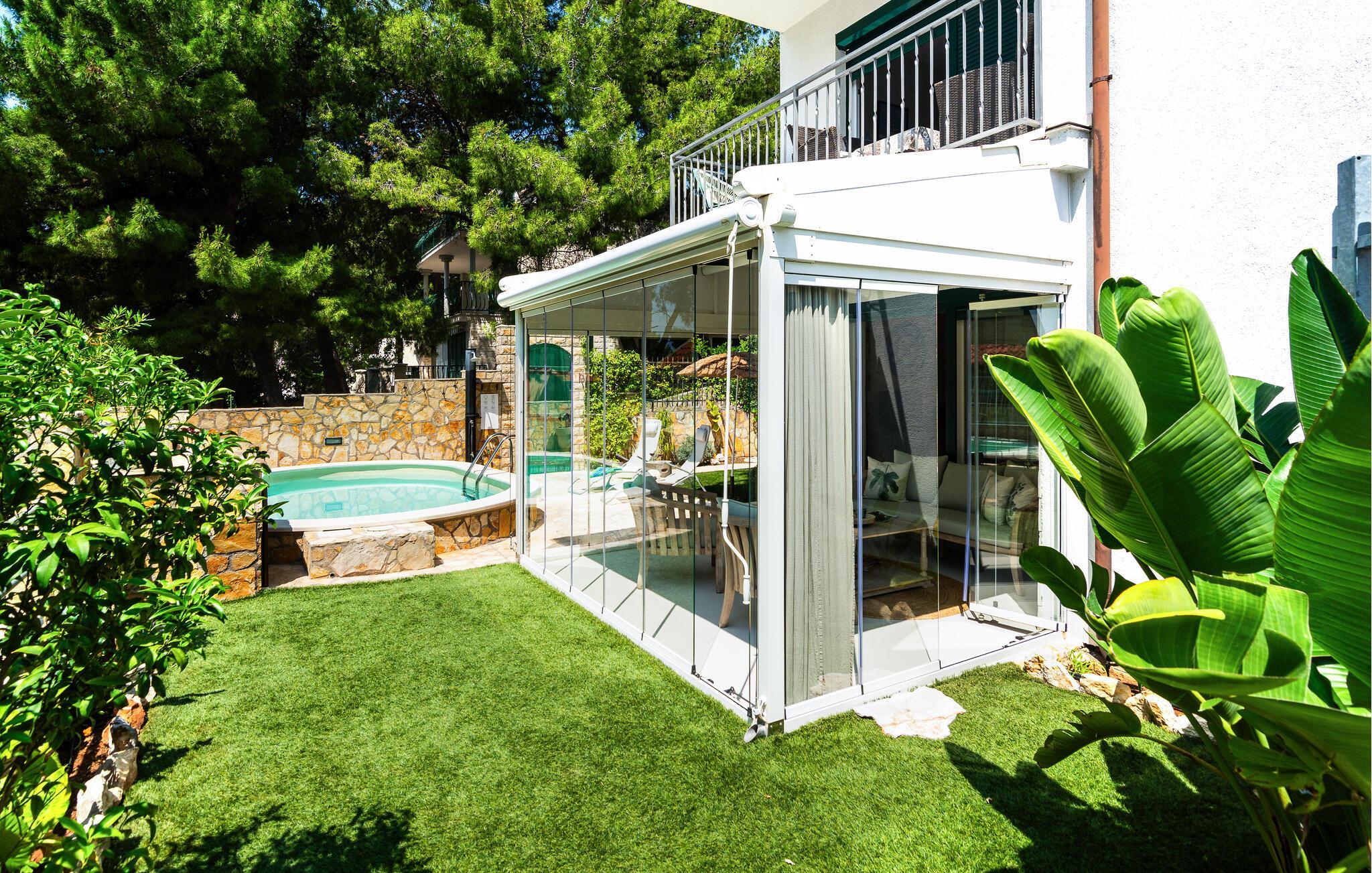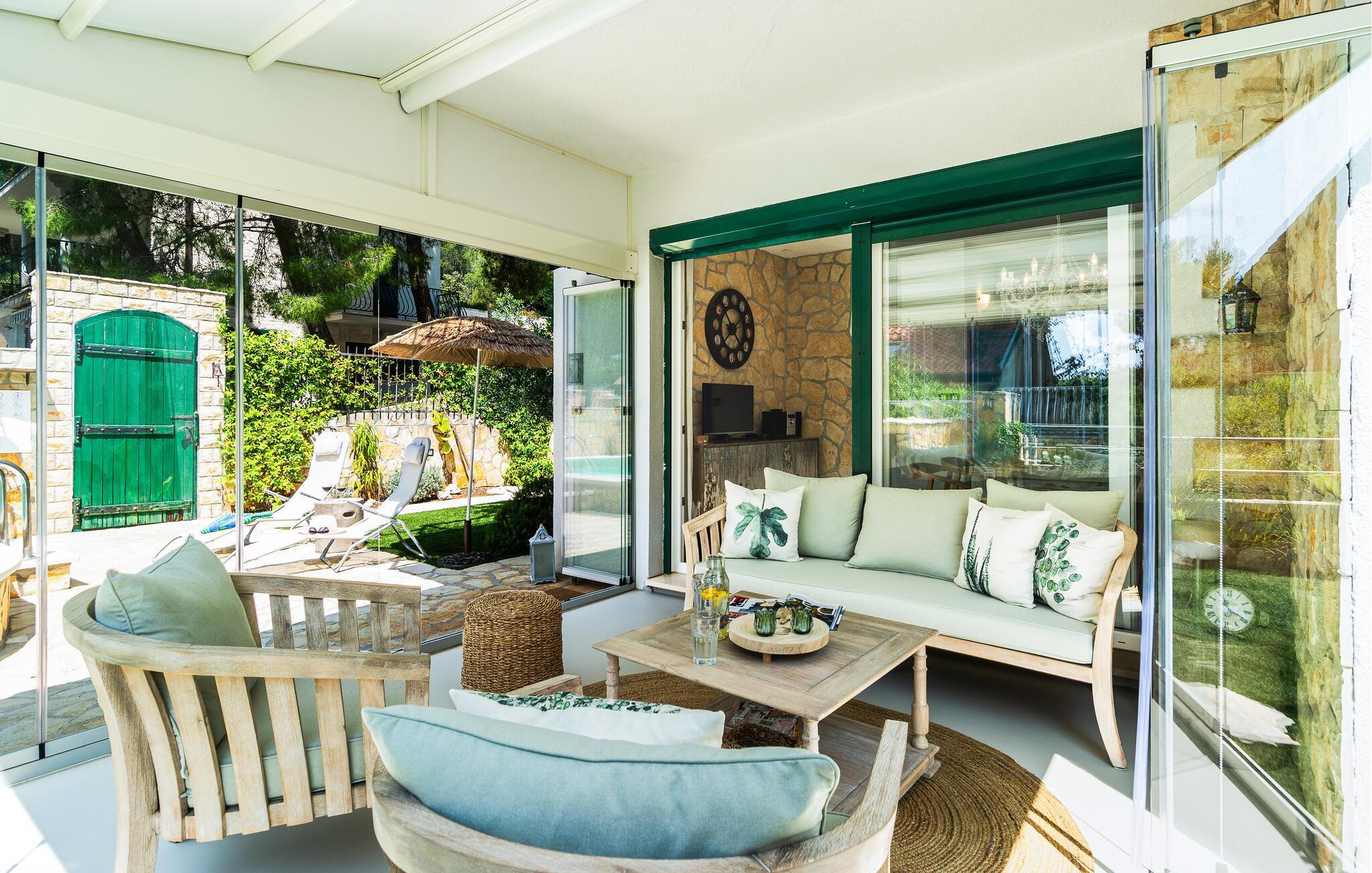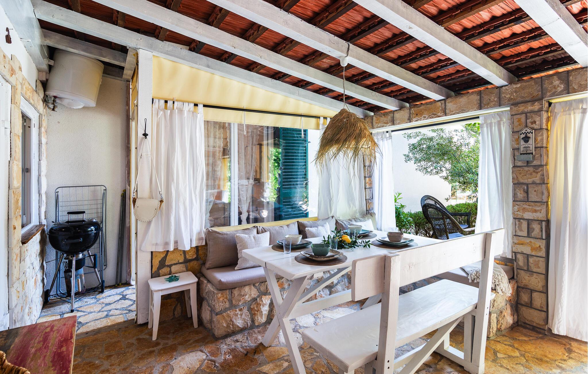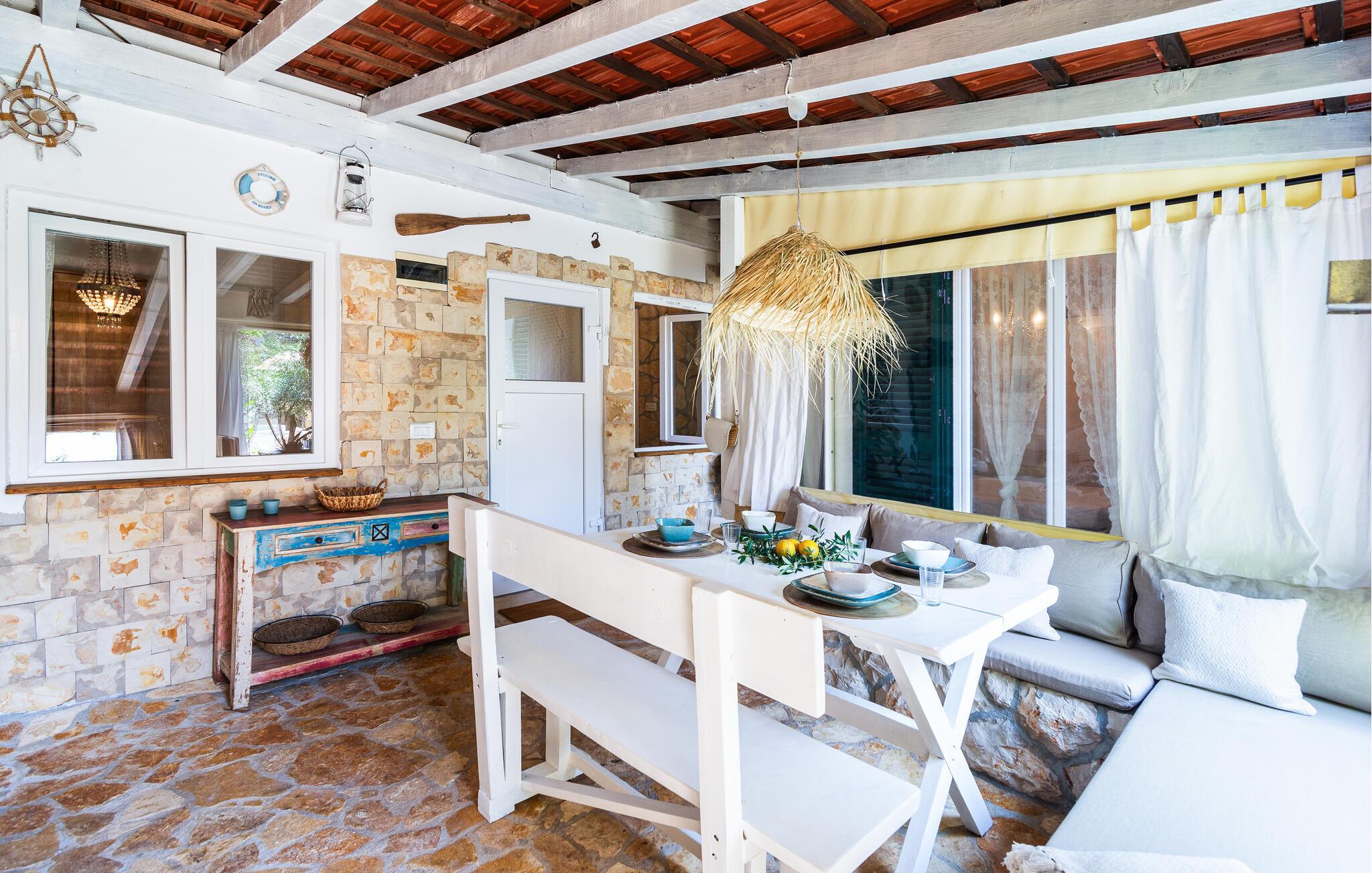 Verbringen Sie Ihren Urlaub auf der Südseite der Insel Hvar, wo wilde Natur, hübsche Kiesstrände und einige der besten Weinberge Kroatiens Sie erwarten. Ihre geschmackvoll und modern eingerichtete Ferienwohnung liegt im Erdgeschoss mit einem separaten Eingang. Sie besteht aus zwei Wohneinheiten, jeweils mit einem eigenen Ausgang auf die Terrasse, die sie verbindet. Im größerem Teil finden Sie ein Bad, Schlafzimmer 1 und das Esszimmer, aus dem Sie auf eine Terrasse kommen. Hier finden Sie eine Glastürharmonika, die diesen Teil als einen Wohnraum abschließen kann. In kleinerem Teil gibt es ein Bad und das zweite Schlafzimmer. Die Poolterrasse bietet eine Sommerküche und Gartenmöbel. Der Pool mit Wasser auf Meersalzbasis ist ohne Chlor.