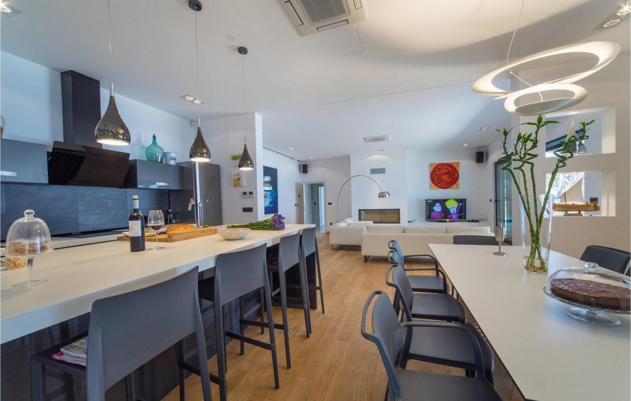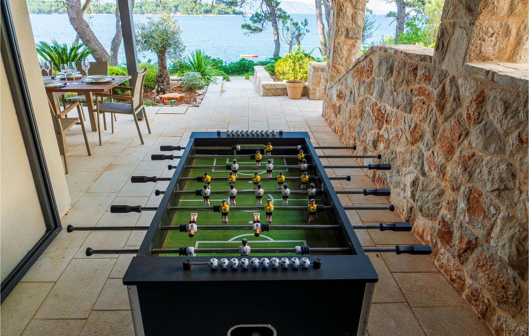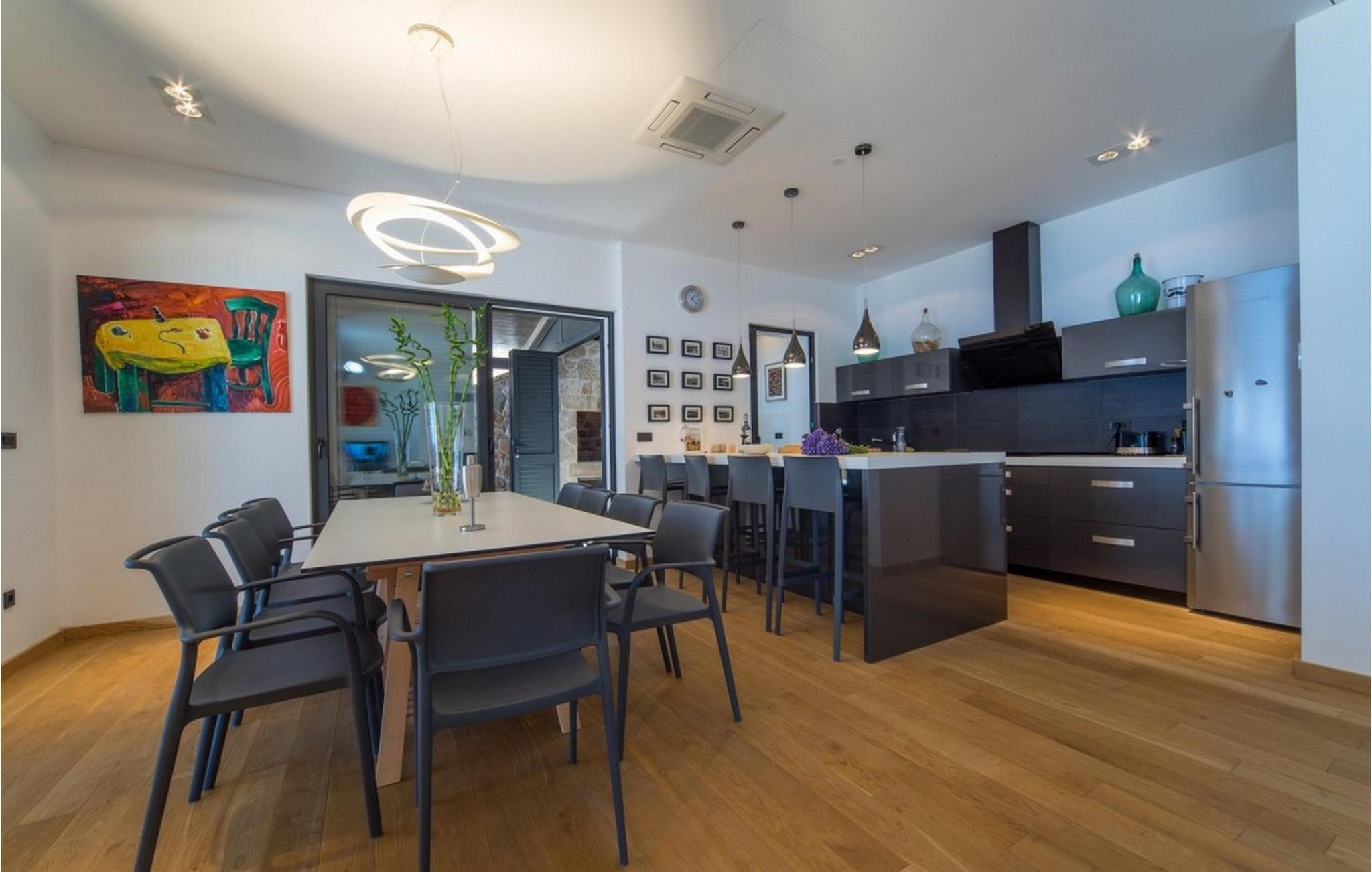 Die hochwertig und geschmackvoll eingerichtete Villa Ana begrüßt Sie nur wenige Schritte vom Meer entfernt und bietet Ihnen einen komfortablen Rückzugsort für entspannte Tage mit Ihren Liebsten. Das geräumige, moderne Interieur besticht mit einer angenehmen Atmosphäre und großen Fensterfronten mit Blick auf das blaue Meer. Zaubern Sie kulinarische Highlights, freuen Sie sich auf ausgedehnte Mahlzeiten am stilvollen Esstisch und vergnügen Sie sich an der PlayStation, an der Tischtennisplatte oder am Kickertisch.