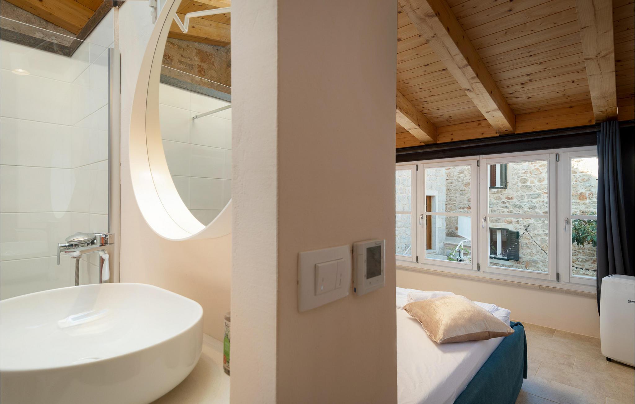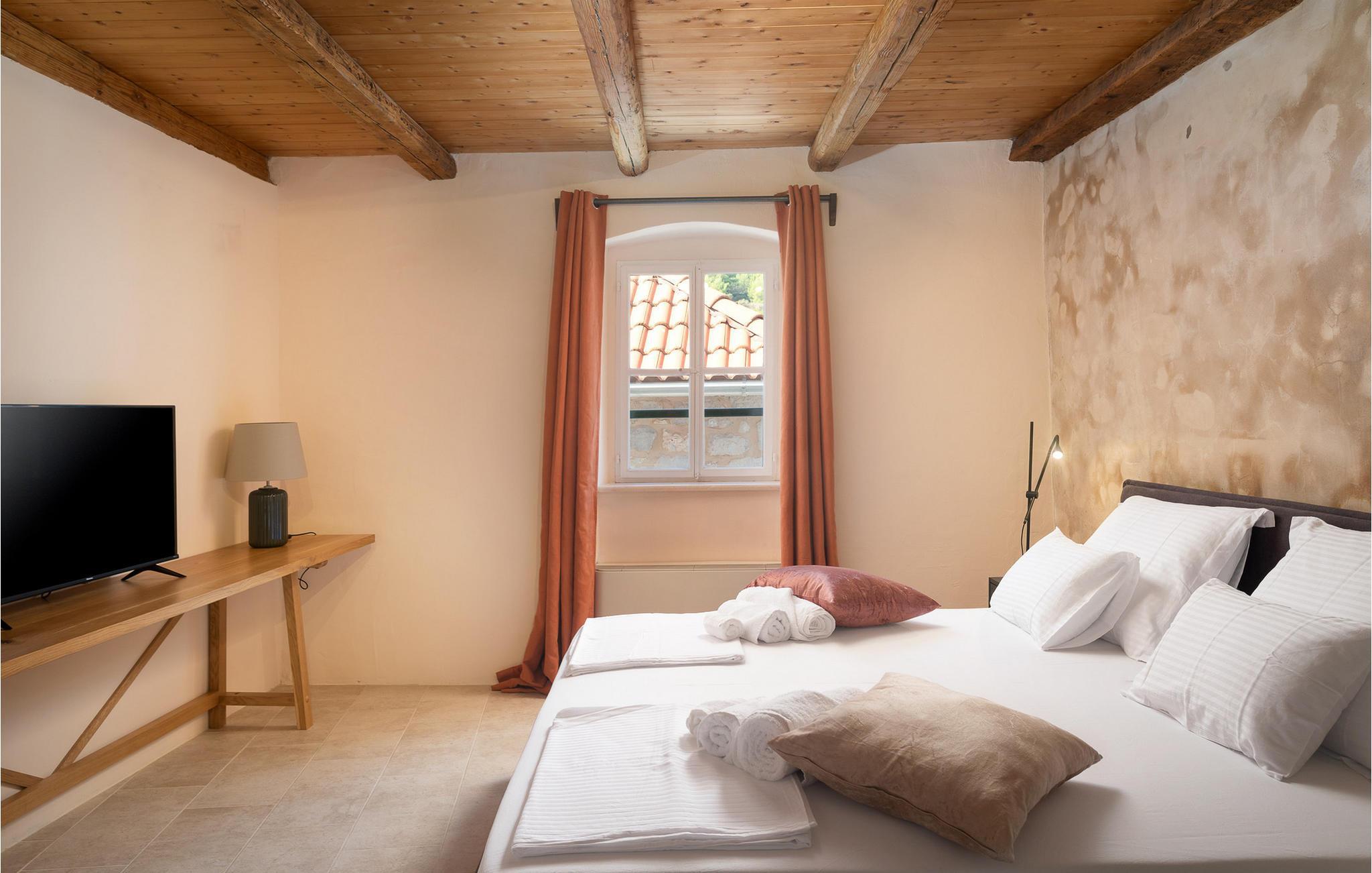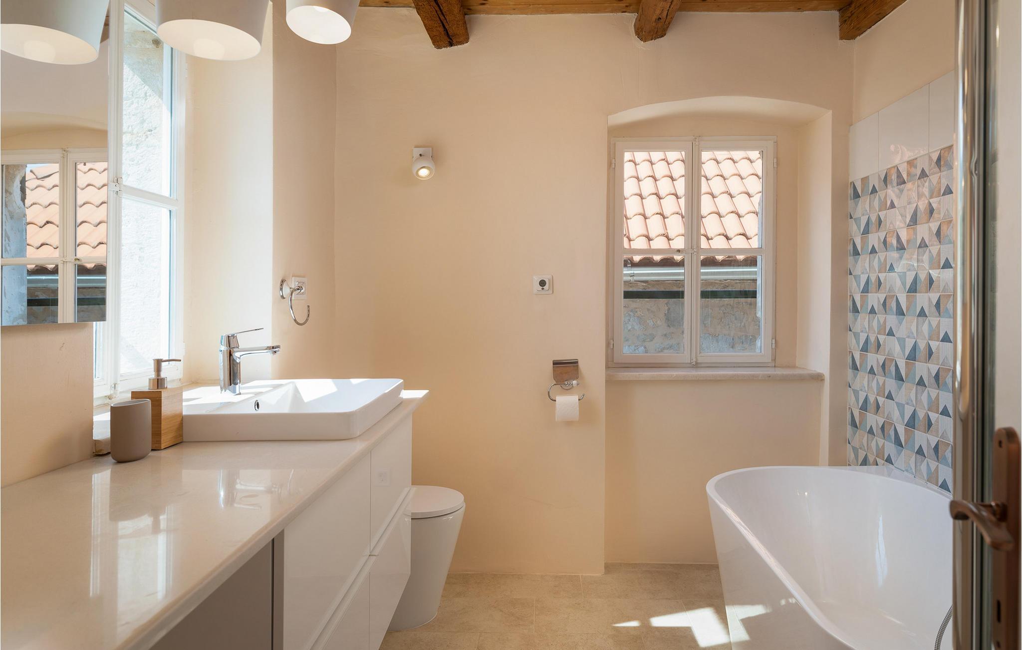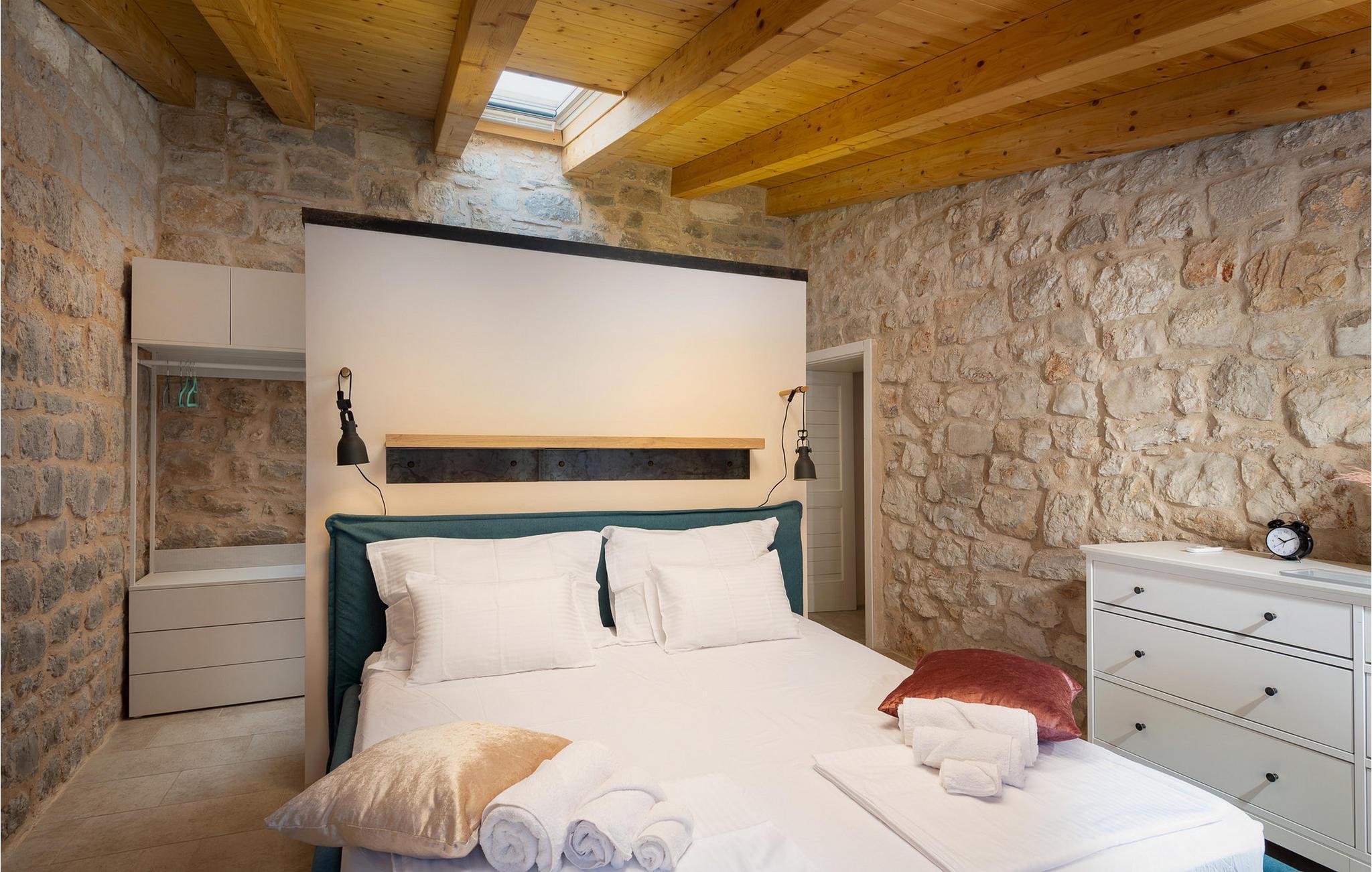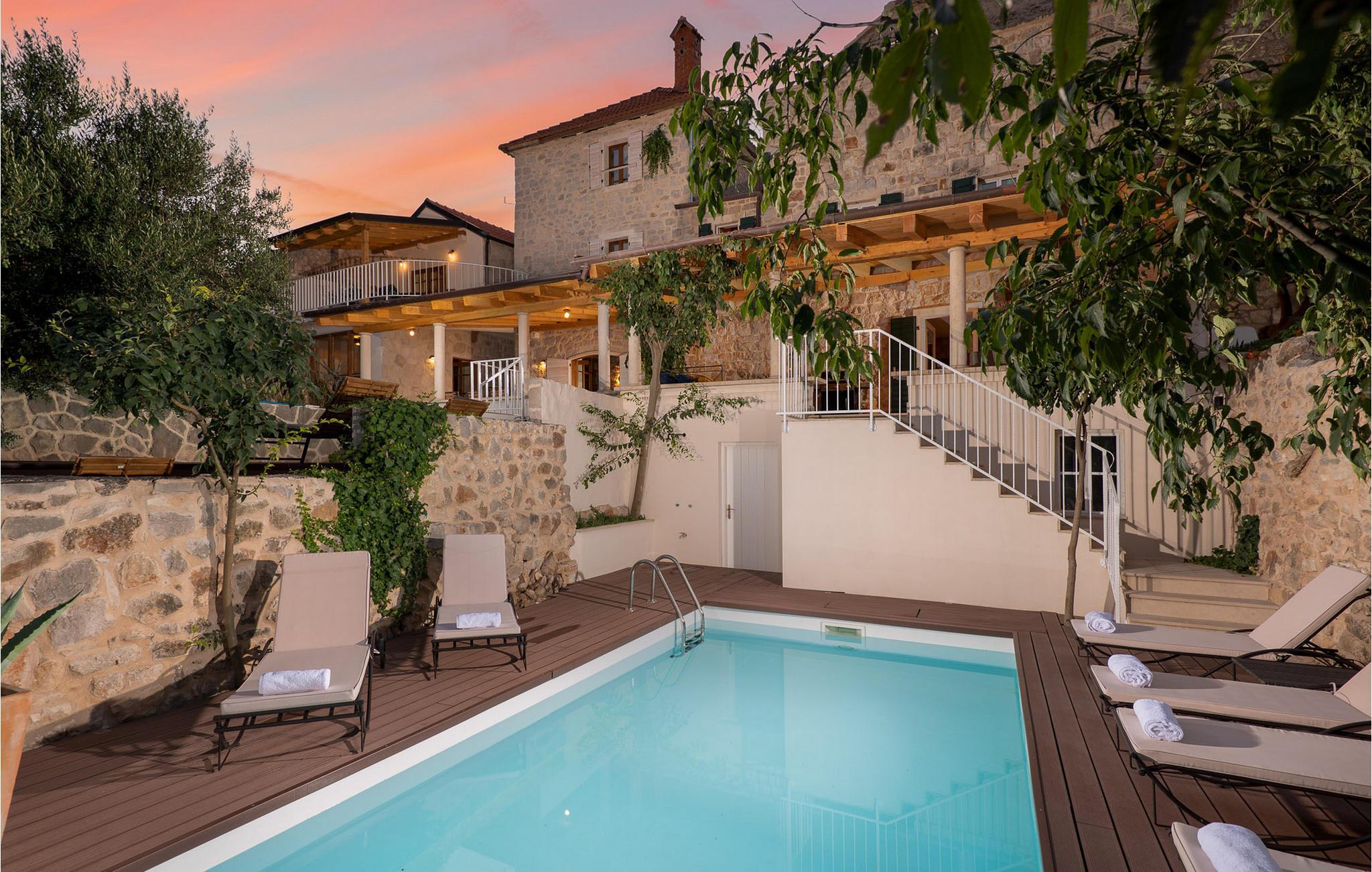 Villa Adoral ist bereit, seinen Gästen 200 m2 Wohnfläche zu bieten, und die Gesamtfläche des Grundstücks beträgt 250 m2. Es ist nur 2,5 km vom nächsten Meer entfernt, und nur 50 Meter von der Villa gibt es ein Restaurant, wo Sie köstliche traditionelle dalmatinische Gerichte probieren können. Die Villa ist voll klimatisiert und kann maximal 8 Personen beherbergen. Die Gäste werden in 3 komfortablen Schlafzimmern untergebracht, von denen eines über 2 ausziehbare Betten (für jeweils 2 Personen) verfügt, während die anderen beiden Schlafzimmer mit einem Doppelbett ausgestattet sind. Zwei Schlafzimmer befinden sich im 1. Stock und das dritte Zimmer im 2. Stock, neben dem sich eine Dachterrasse befindet, auf der Sie Ihren Morgenkaffee inmitten der unberührten Natur trinken können. Außerdem verfügt die Villa über 3 Bäder: eines mit Badewanne und zwei mit Duschkabine.
