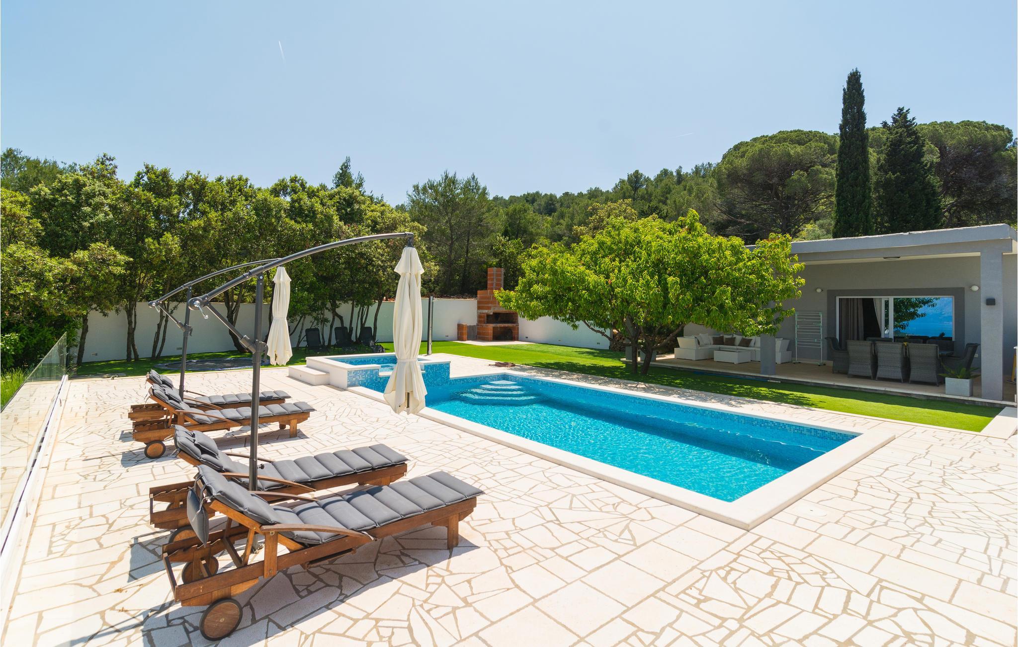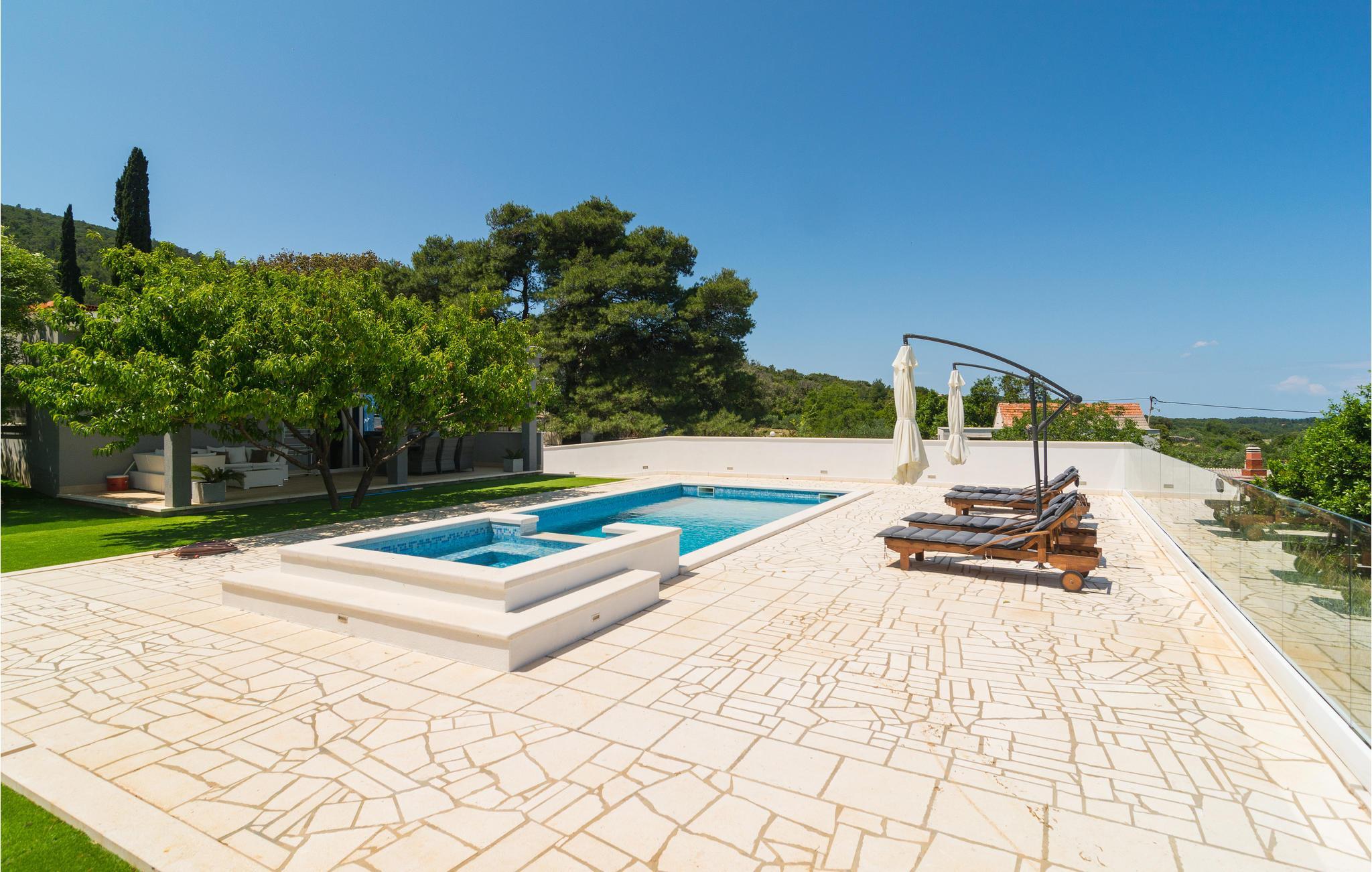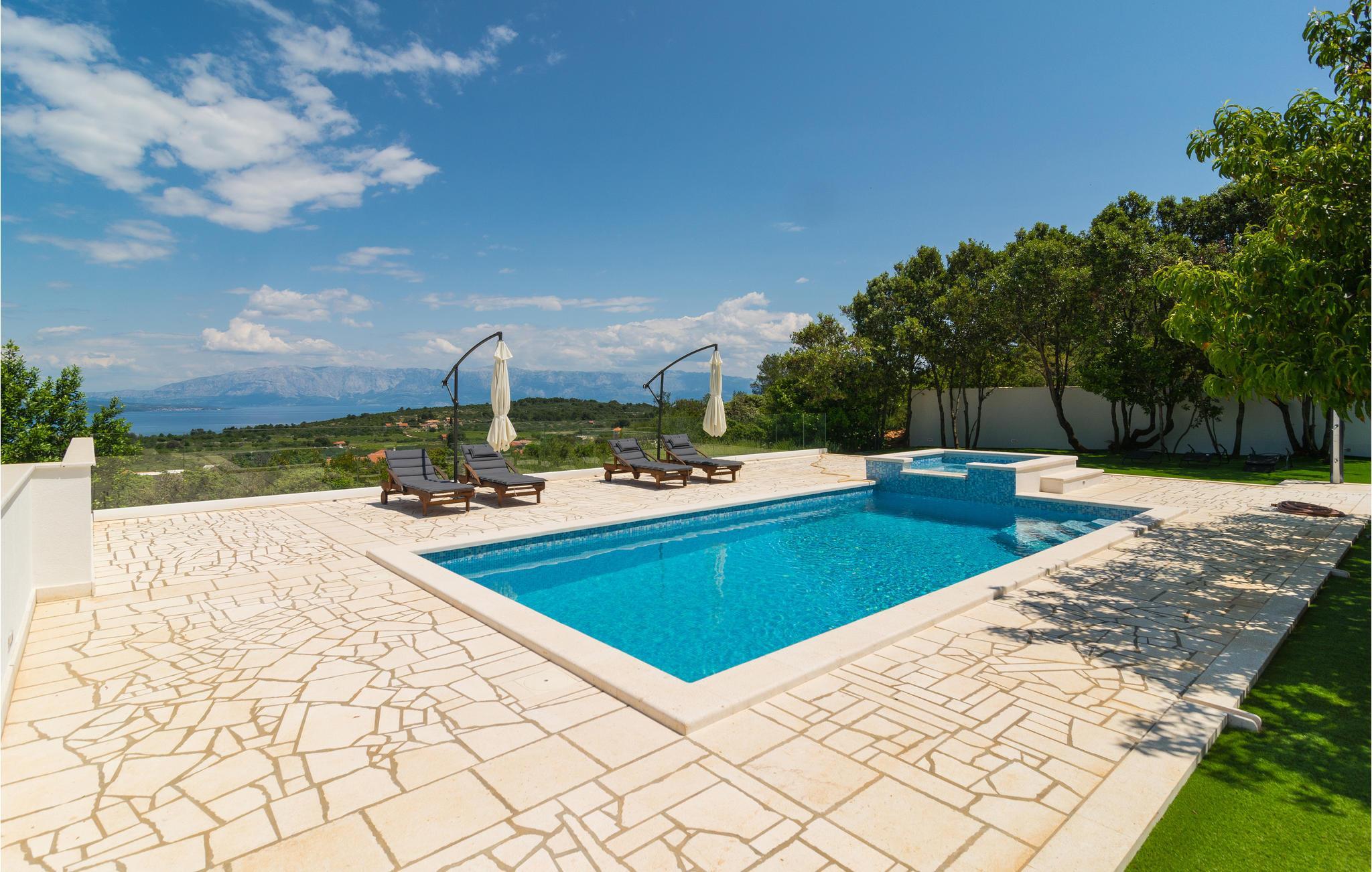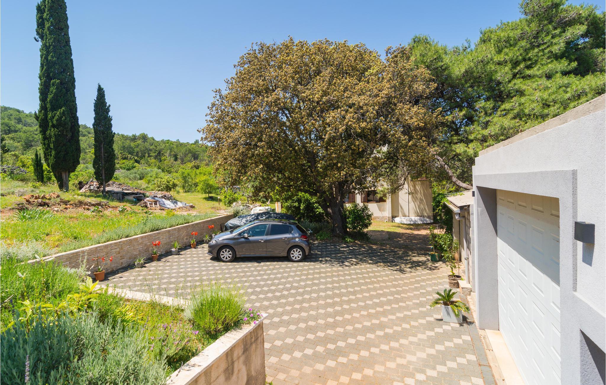 Verbringen Sie einen fabelhaften Urlaub in diesem modern eingerichteten Ferienhaus im Inland der Insel Hvar, bekannt als die kroatische Insel mit meisten sonnigen Tagen im Jahr. Die Innenräume bieten Komfort durch zwei Schlafzimmer, einem Badezimmer und dem Wohnraum mit Küche. Im Außenbereich genießen Sie den schönen Panoramablick von der überdachten Terrasse und Poolbereich. Der Fitnessraum im Souterrain beinhaltet eine Dusche. In der Nähe sind sehr schöne Buchten zu finden, wie die Bucht Zecja und Vela Stiniva. Zusätzlich zur Garage es sind noch zwei überdachte Parkplätze verfügbar. Jedes Jahr am letzten Wochenende im August findet das Weinfest im nahe gelegenen Jelsa. Abenteuersüchtige werden im Adventure Park Jelsa auf ihre Kosten kommen.