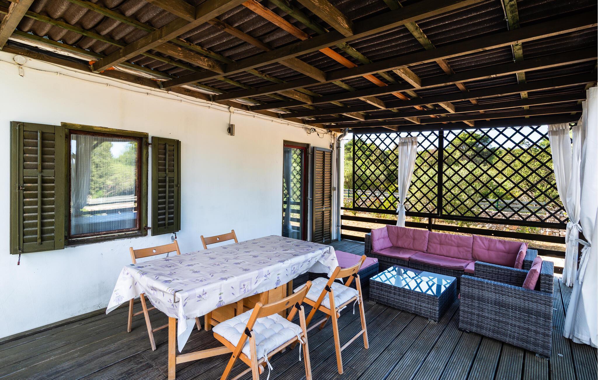 Die großzügige, überdachte Terrasse mit Grillplatz ist ideal für gesellige Abende unter dem Sternenhimmel. Genießen Sie Ihr Frühstück im Grünen oder entspannen Sie auf einer Sonnenliege, umgeben von mediterranen Pflanzen.