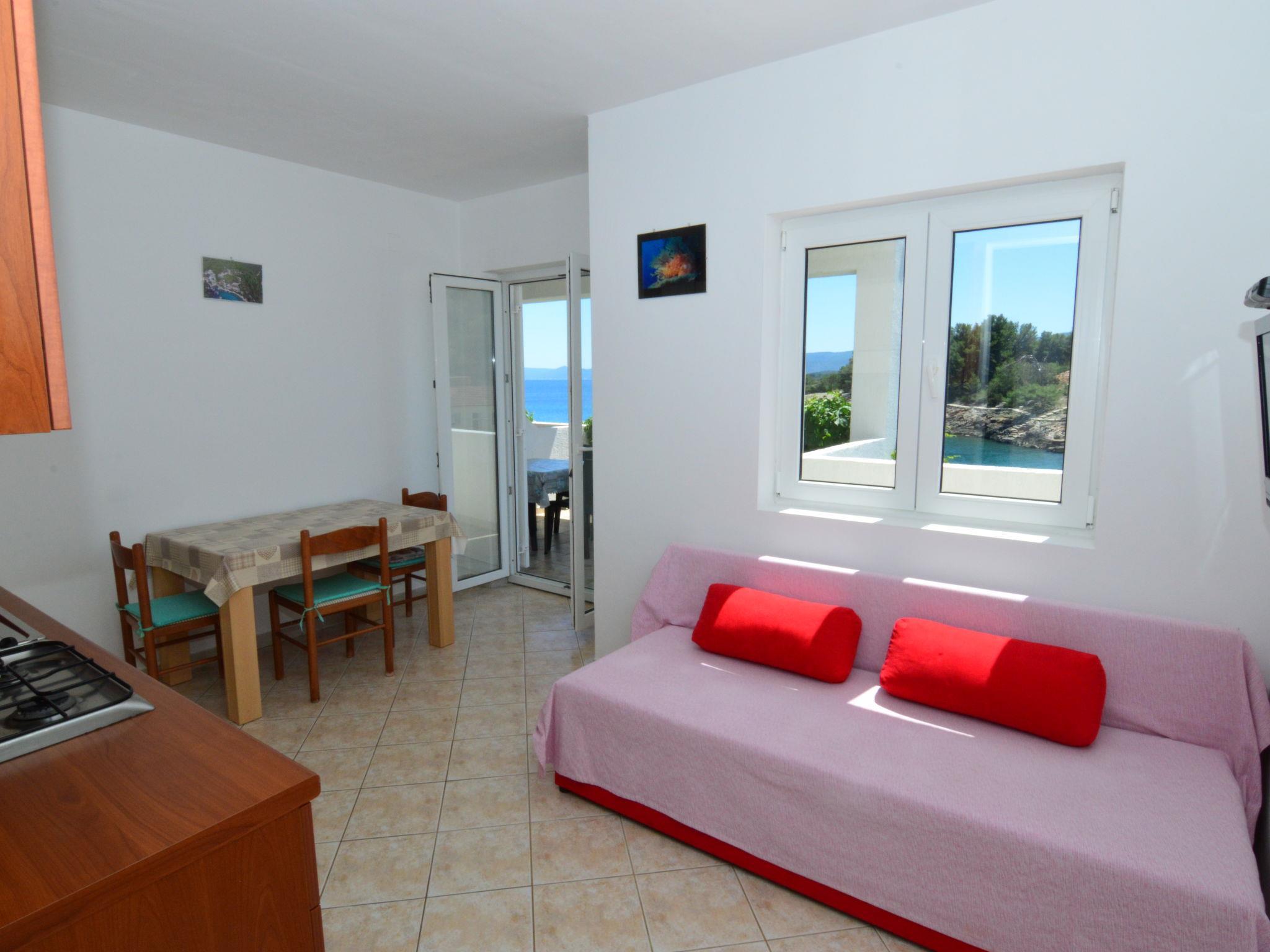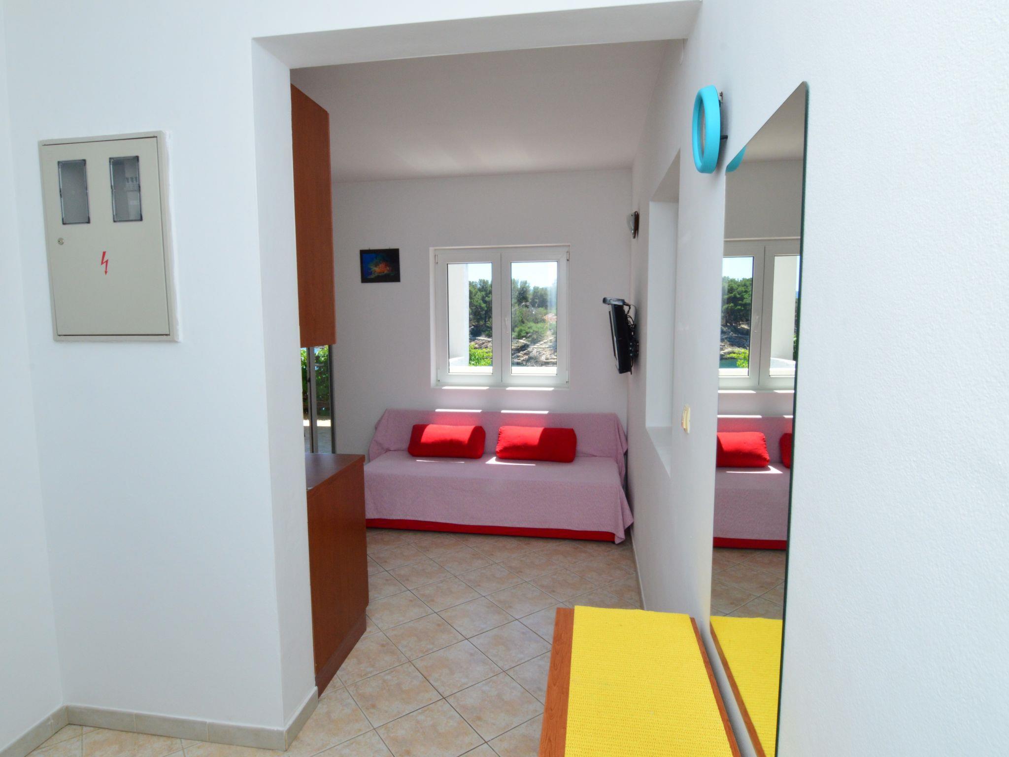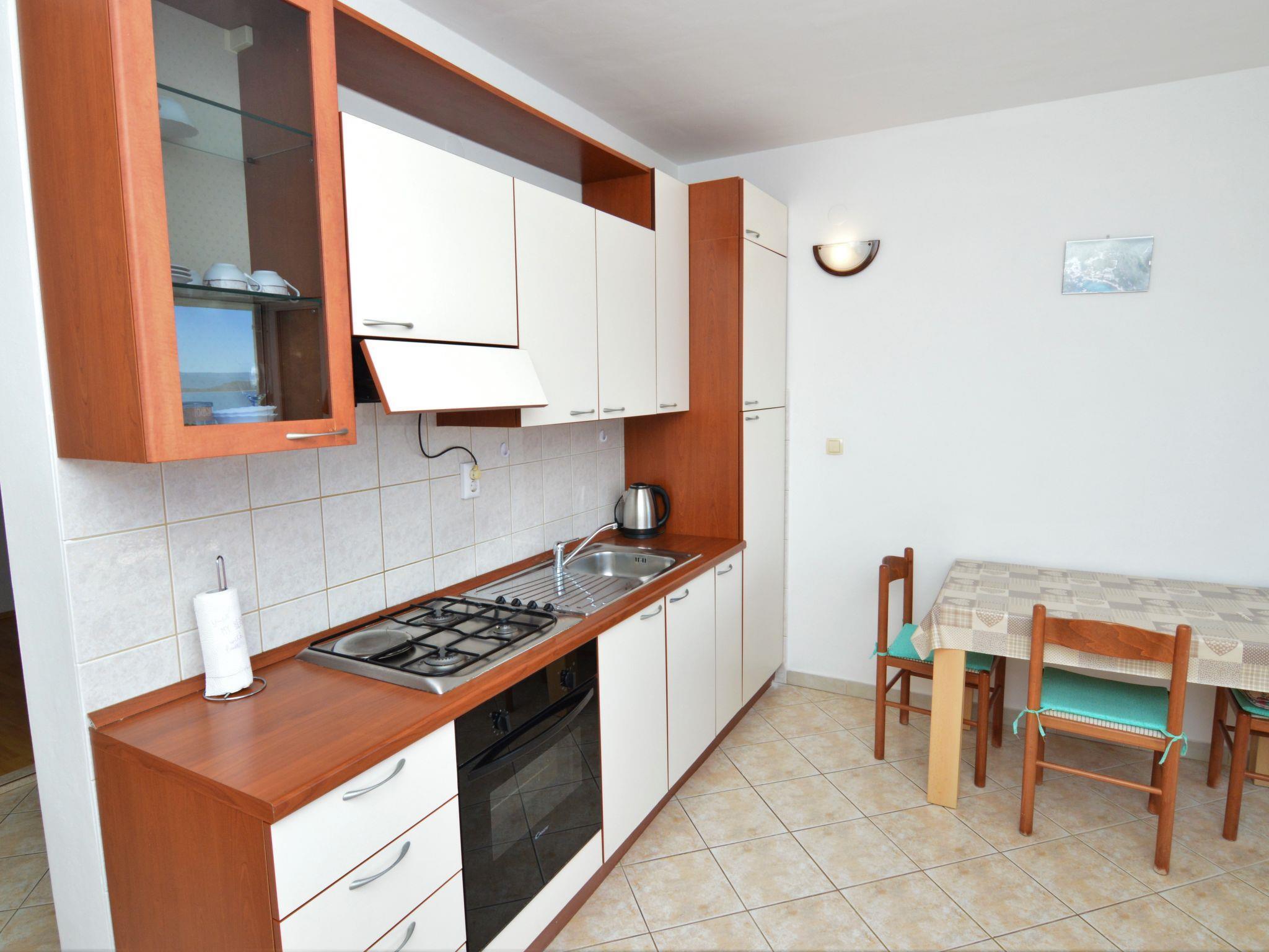"Buda", 2-room apartment 35 m2, on the upper ground floor. Living/dining room with 1 double sofabed, satellite TV and fan. Exit to the balcony. 1 room with 1 double bed. Open kitchen (4 hot plates, oven, electric coffee machine). Shower/WC. No heating option. Balcony 12 m2. Balcony furniture, covered balcony. Marvellous view of the sea. Facilities: Internet (WiFi, free). Parking (1 car). Maximum 1 pet/ dog allowed. Maximum occupancy: 3 adults, 1 child up to 12 years old.
