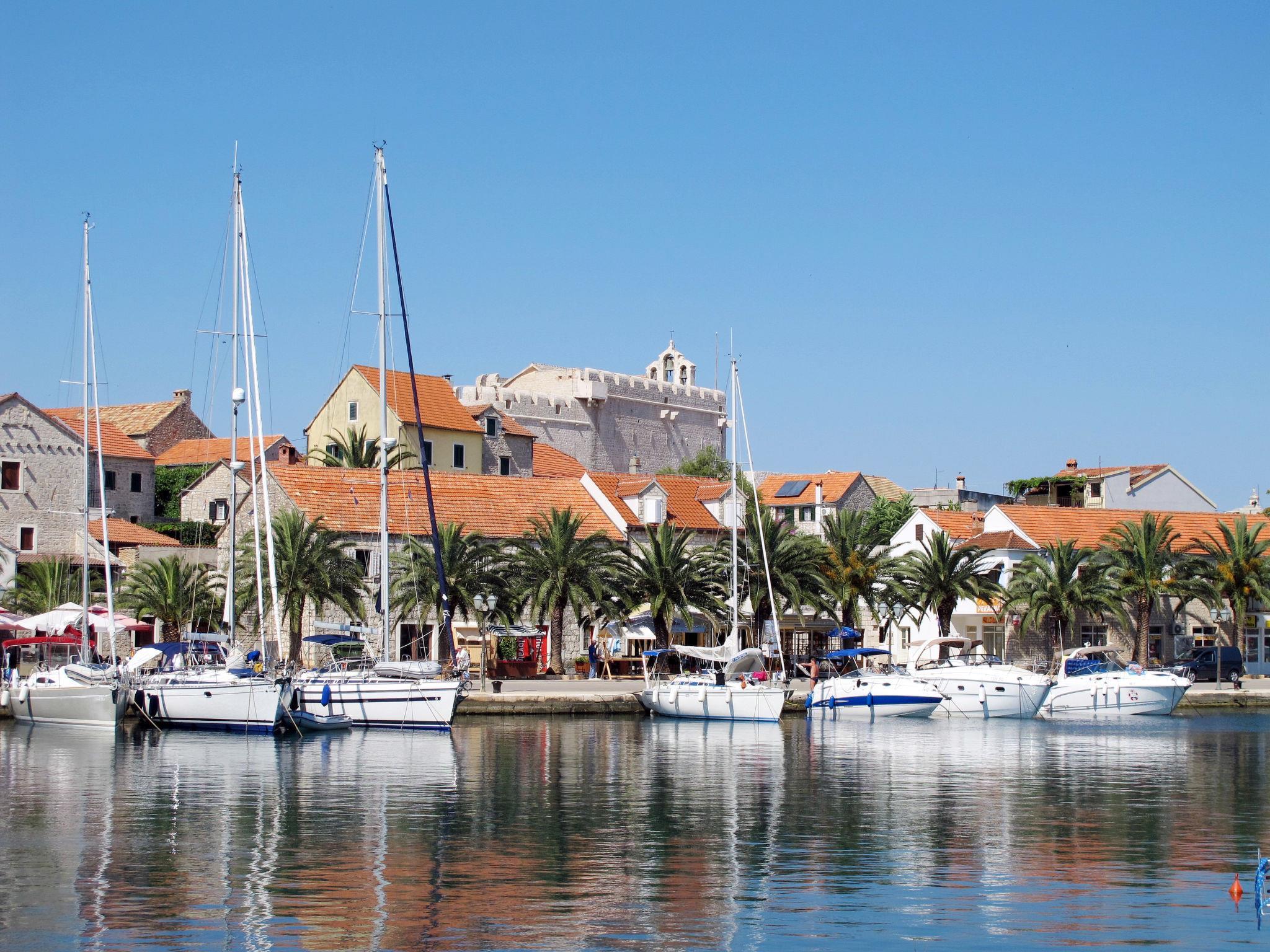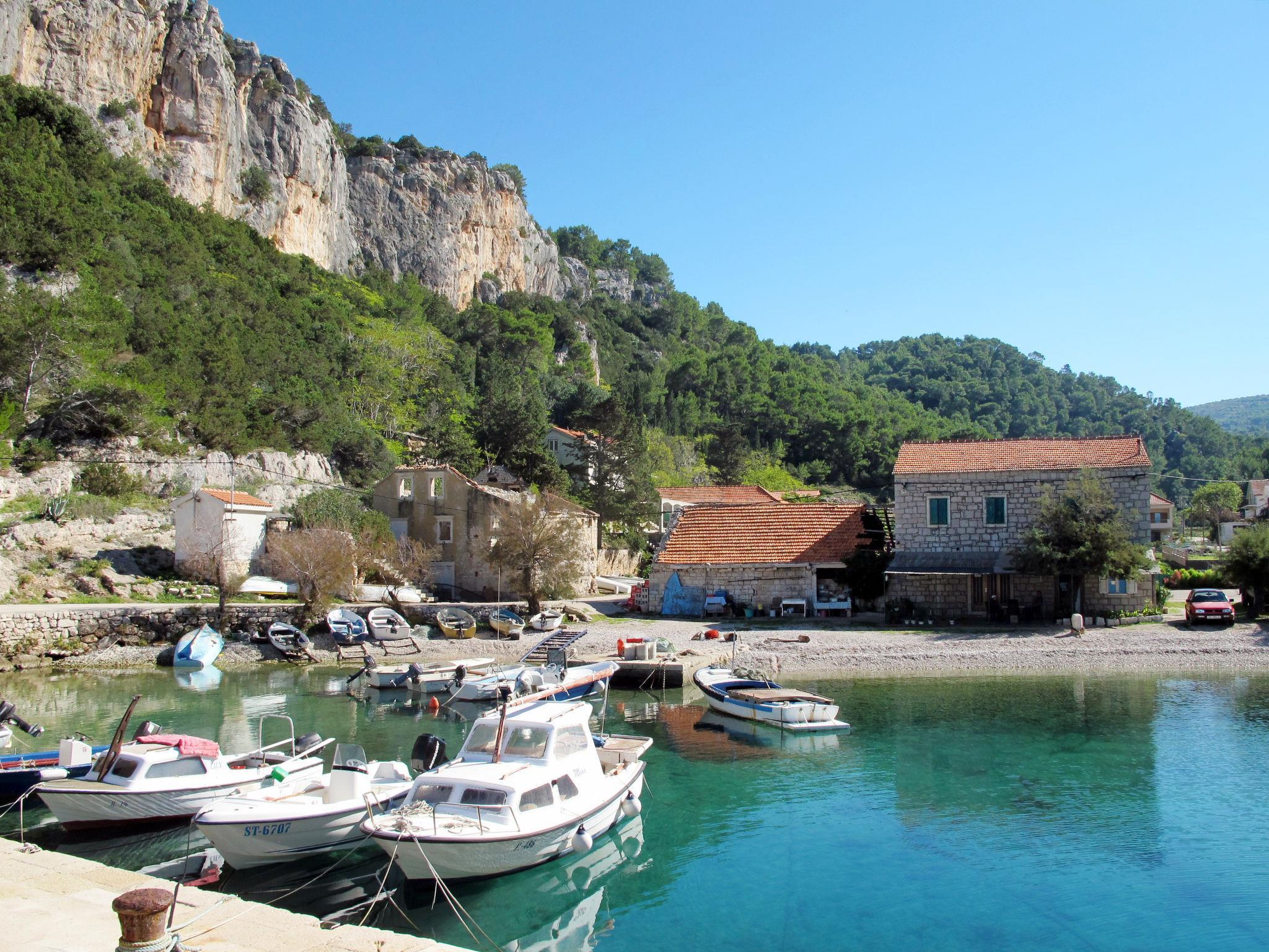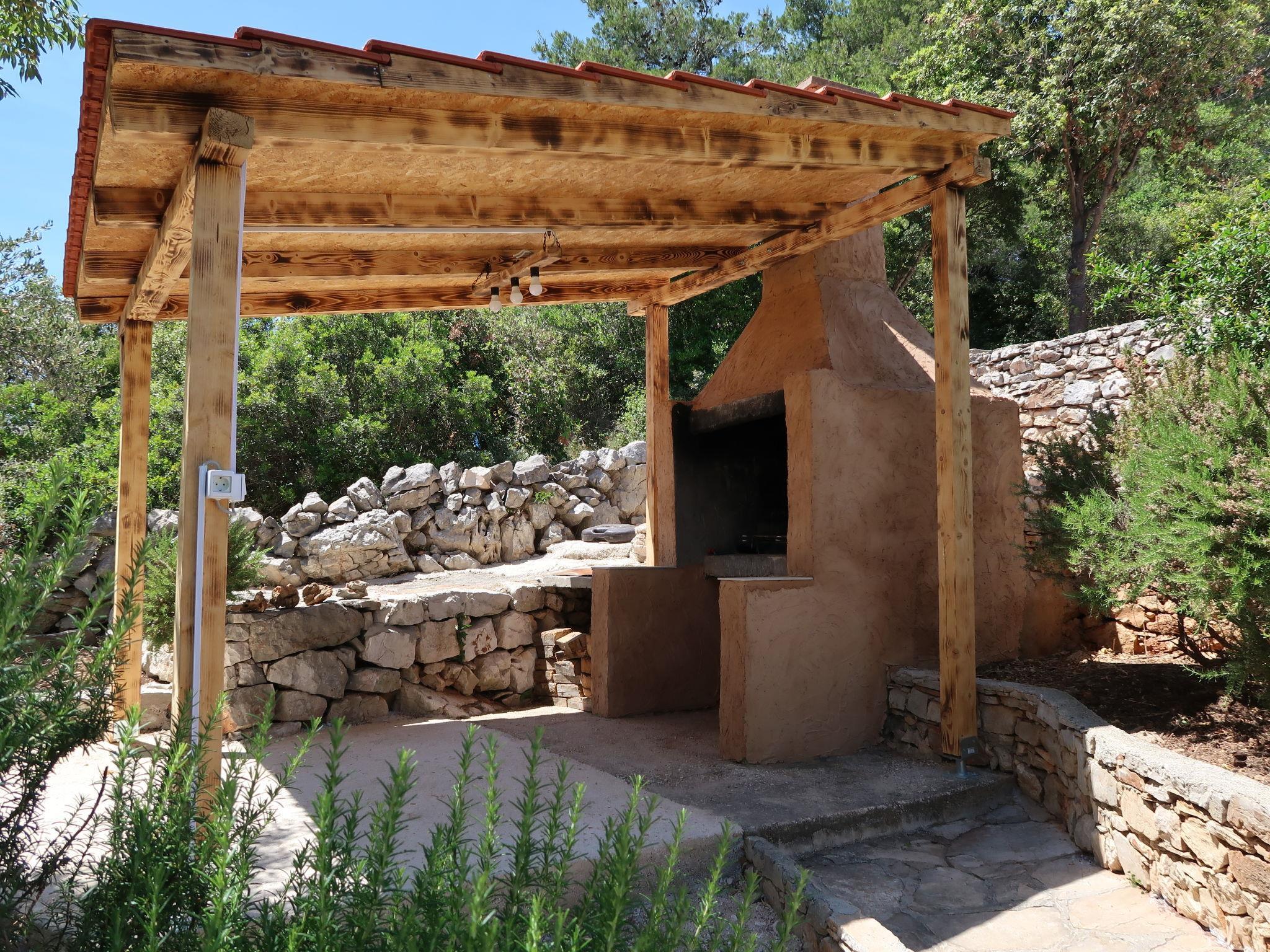 Apartment house "Buda". 400 m from the centre of Bašina, 4 km from the centre of Vrboska, 10 km from the centre of Starigrad, from the sea, 10 m from the beach, in a cul-de-sac. For shared use: property 1'500 m2 with trees. Barbecue. In the house: internet access. 300 m long narrow motor access. Parking on the premises. Shop 4 km, supermarket 10 km, bus stop 77 km, ferry 10 km, rocky beach, concrete beach 10 m. Please note: airfield 77 km from the property. Access to the beach via steps.
