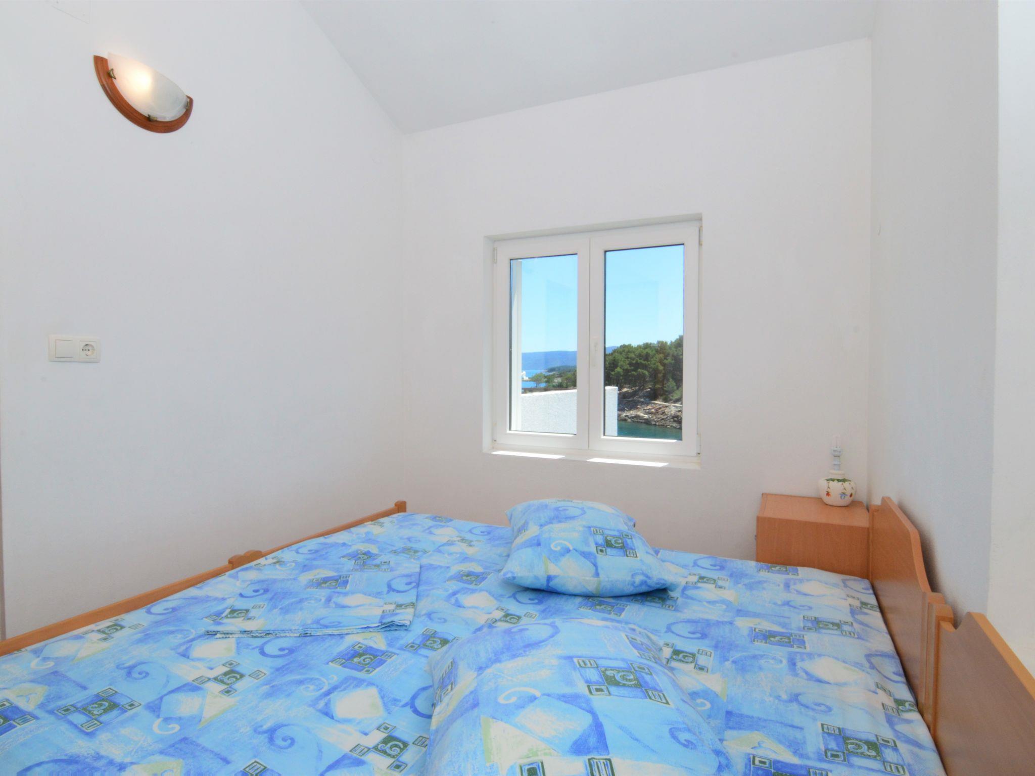 Apartment house "Buda". 400 m from the centre of Bašina, 4 km from the centre of Vrboska, 10 km from the centre of Starigrad, from the sea, 10 m from the beach, in a cul-de-sac. For shared use: property 1'500 m2 with trees. Barbecue. In the house: internet access. 300 m long narrow motor access. Parking on the premises. Shop 4 km, supermarket 10 km, bus stop 77 km, ferry 10 km, rocky beach, concrete beach 10 m. Please note: airfield 77 km from the property. Access to the beach via steps.