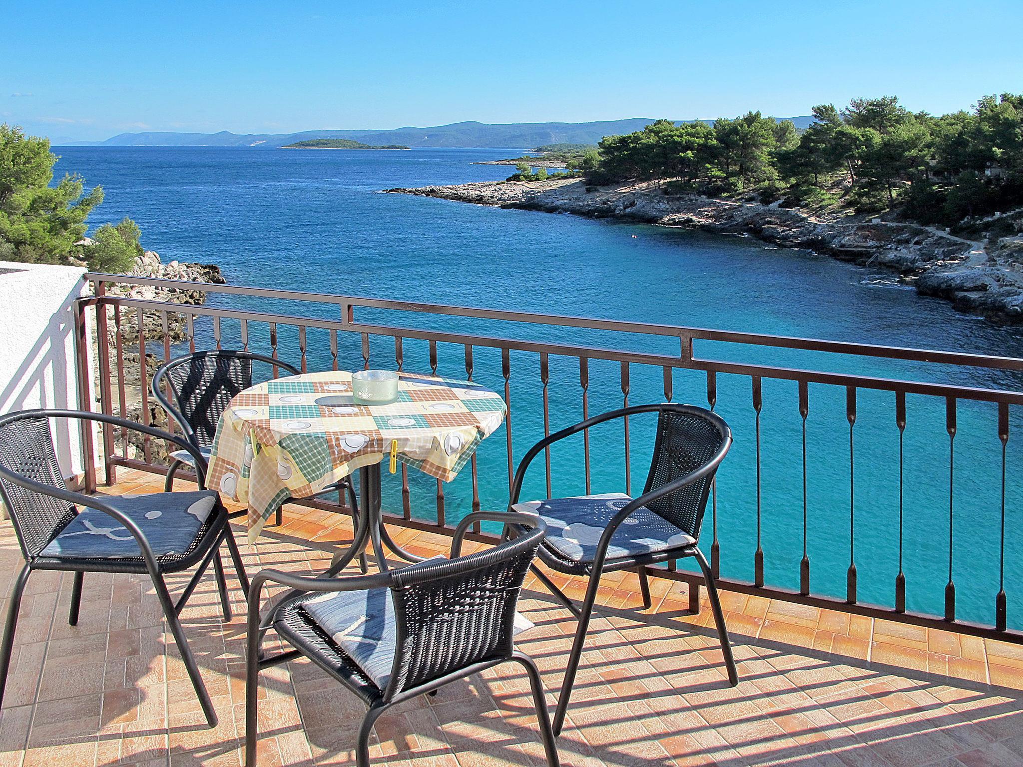 "Buda", 2-room apartment 35 m2 on 1st floor. Living/dining room with 1 sofabed, satellite TV and fan. Exit to the balcony. 1 room with 1 double bed. Open kitchen (4 hot plates, oven, electric coffee machine). Shower/WC. No heating option. Balcony 9 m2. Balcony furniture, covered balcony. Marvellous view of the sea. Facilities: Internet (WiFi, free). Parking (1 car). Maximum 1 pet/ dog allowed.