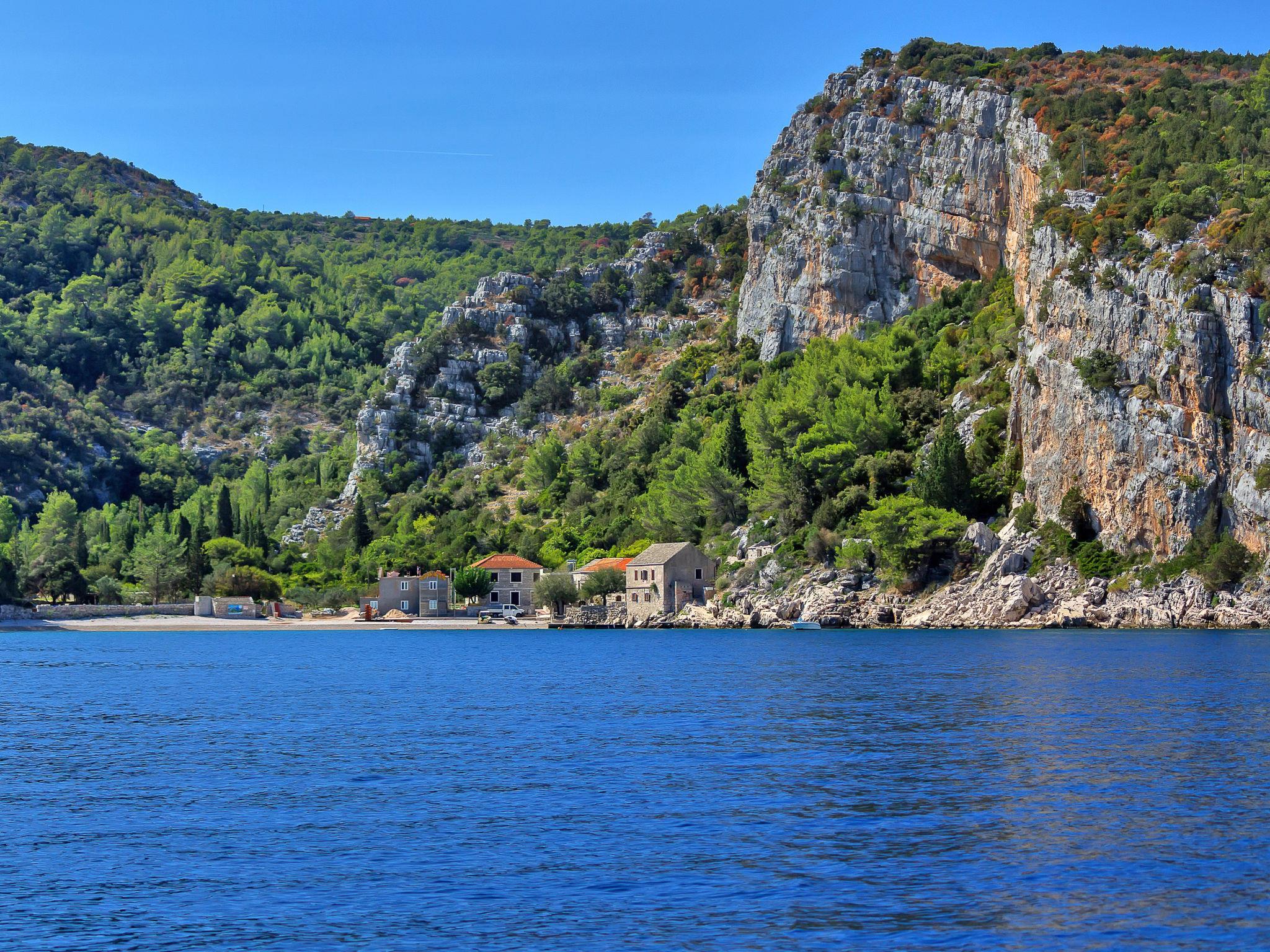 Apartment house "Cico". 6 km from the centre of Gdinj, in a quiet, sunny position, 10 m from the sea, 10 m from the beach. For shared use: property 200 m2 (fenced). Terrace (20 m2), garden furniture, barbecue. In the house: internet access, bicycle rental. Parking at the house on the premises. Shop 6 km, restaurant 40 m, bus stop 50.7 km, rocky beach, concrete beach 10 m. Please note: private mooring, on request. Motor-boat rental possible (on request, extra).