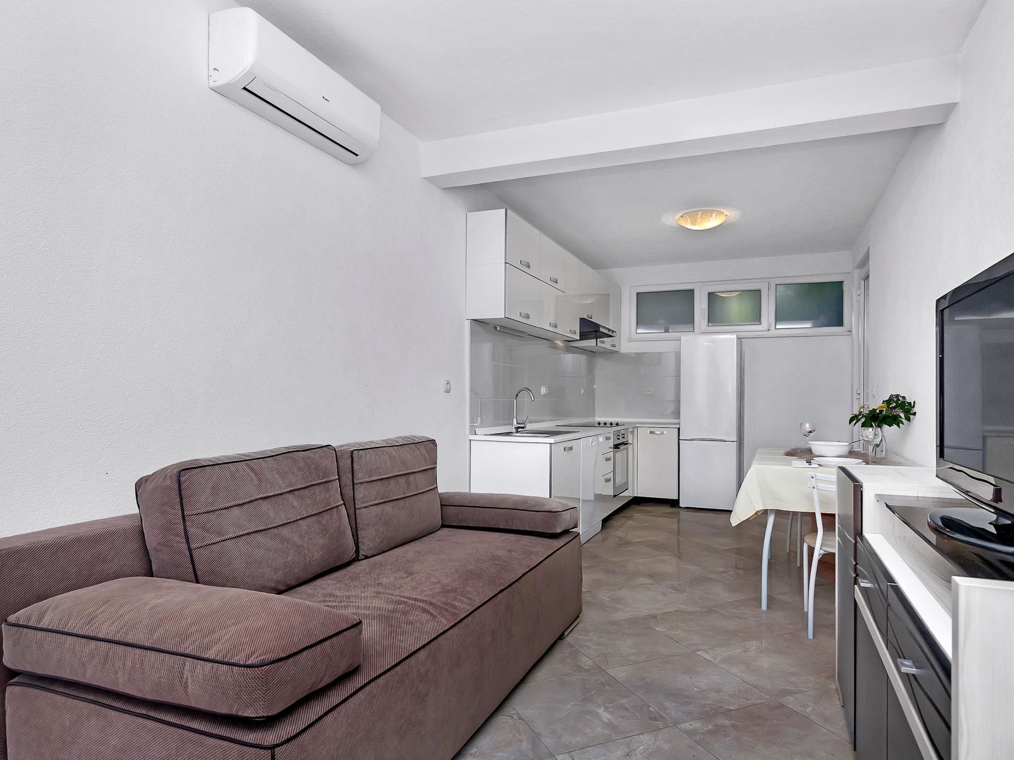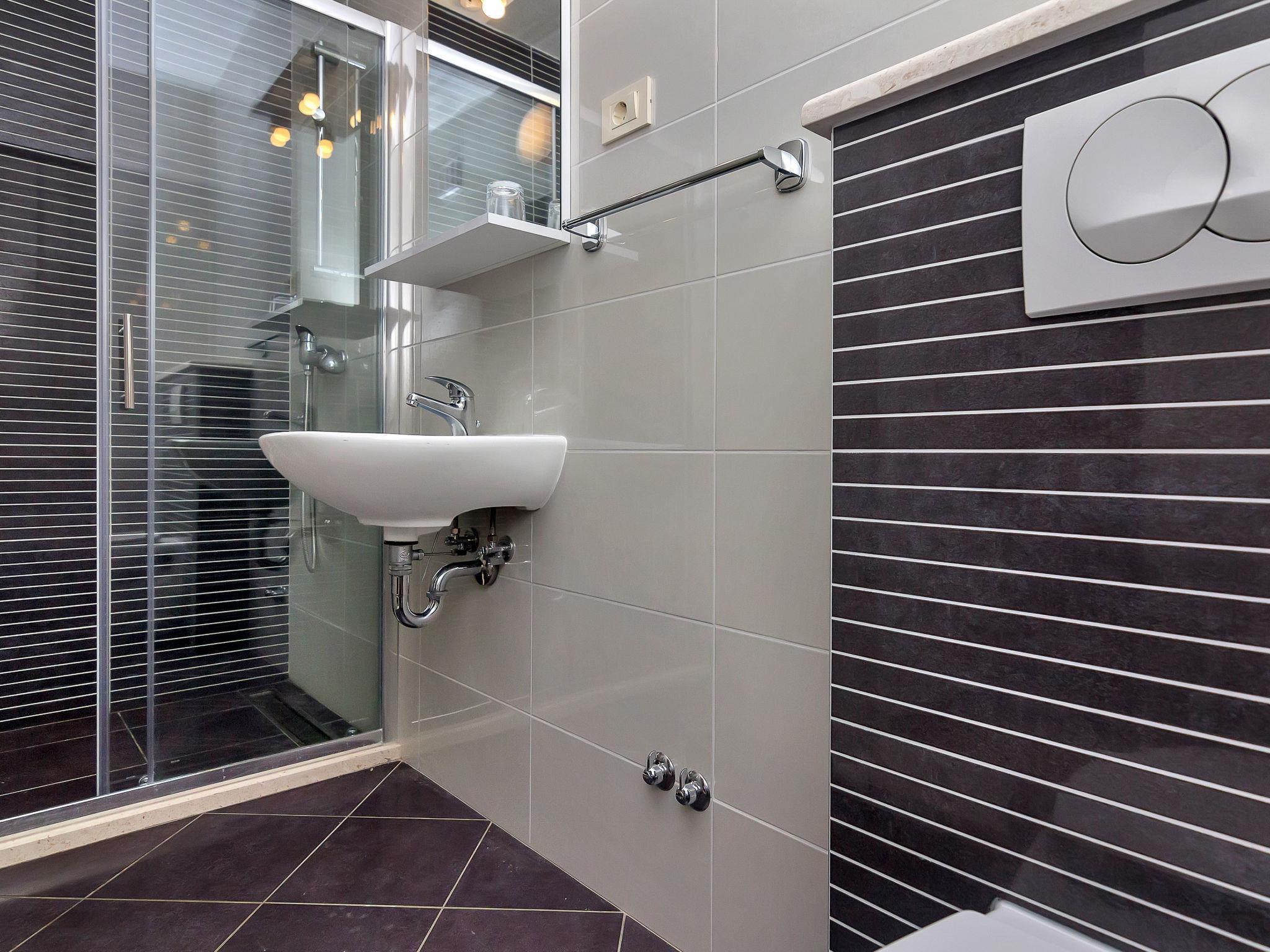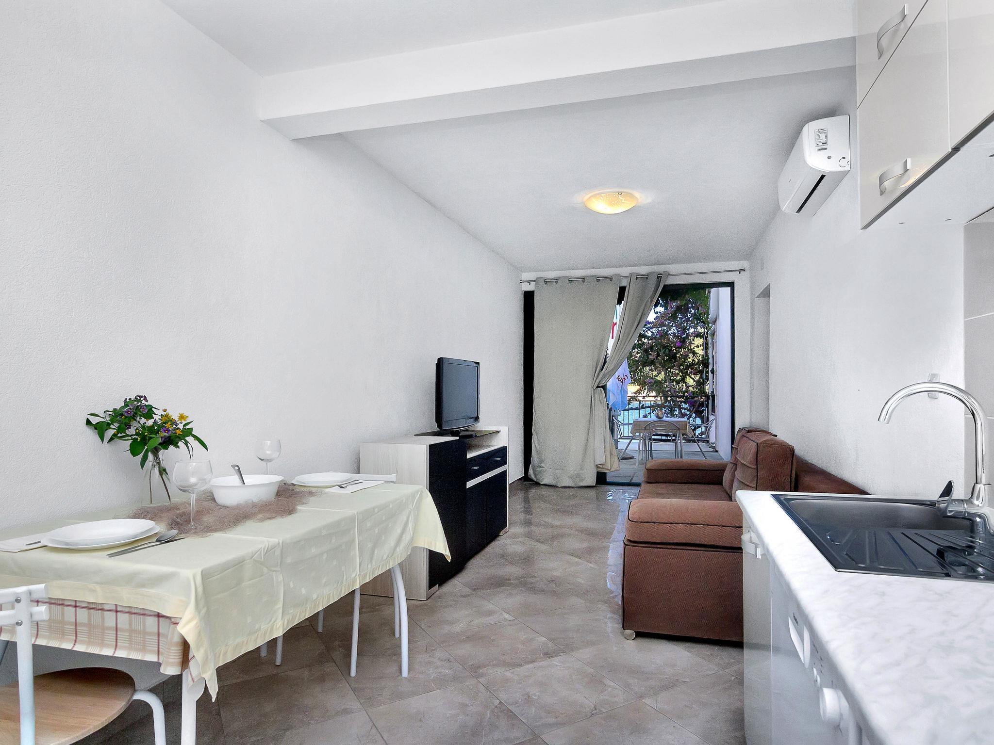 3-room apartment 62 m2, on the ground floor, east facing position. Living/dining room with 1 double sofabed (140 cm, length 200 cm), satellite TV (flat screen), air conditioning. Exit to the terrace. 2 rooms, each room with 1 french bed (160 cm, length 200 cm), shower/WC, satellite TV and air conditioning. Exit to the terrace. Open kitchen (oven, dishwasher, 4 ceramic glass hob hotplates, freezer). Air-conditioning (extra). Terrace 8 m2, roofed, 2 terraces 4 m2, roofed. Terrace furniture. Marvellous view of the sea. Facilities: Internet (WiFi). Maximum 1 pet/ dog allowed.