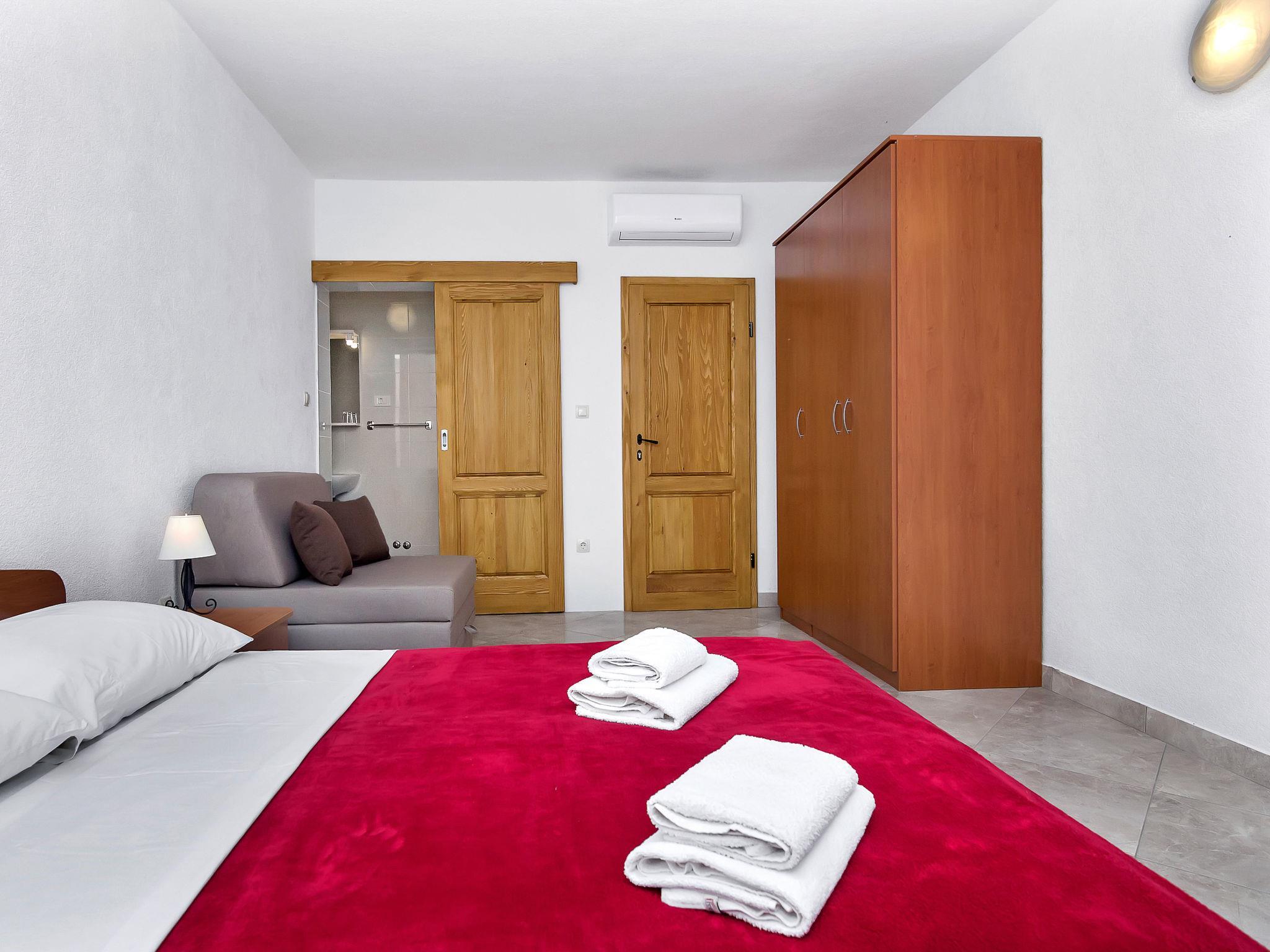 Apartment house "Rubin". 4 km from the centre of Zastražišce, in a quiet, sunny position, 10 m from the sea, 10 m from the beach. For shared use: property 1'000 m2. Barbecue. In the house: internet access, bicycle rental. Parking at the house on the premises. Shop 4 km, restaurant 15 km, bus stop 54.5 km, rocky beach, concrete beach 10 m. Please note: private mooring, on request. Motor-boat rental possible (on request, extra).