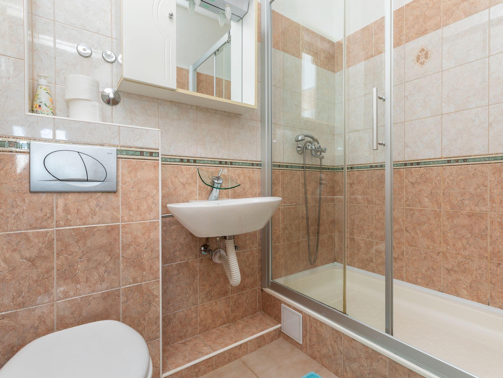Studio bietet Platz für 2 Gäste. Die Betten sind in Schlafzimmern, die es 1 gibt, innerhalb einer Gesamtfläche von 19m2, angeordnet. Die Gäste haben einen eigenen Balkon zur Verfügung, auf der sie in warmen Sommernächten genießen können. Das Studio-Apartment bietet Meerblick. Es ist erlaubt, Speisen auf dem Gemeinschafts-Grill vorzubereiten. In der Unterkunftseinheit besteht die Möglichkeit des Mitbringens von Haustieren gegen Aufpreis. IM PREIS INBEGRIFFEN: Kurtaxe, Endreinigung, Klimatisierung, Parkplatz, Internet, Kinderbett, tragbarer Grill. VERBINDLICHE ZUSÄTZLICHE KOSTEN: Aufzahlung für Kurzaufenthalte (prozentualer Zuschlag pro Nächtigungsanzahl: 30% - 1, 20% - 2, 10% - 3). UNVERBINDLICHE ZUSÄTZLICHE KOSTEN: Haustiere (5,00 € pro Nacht). Die Verfügbarkeit zusätzlicher Dienstleistungen in Ihrem reservierten Termin und die Preise derselben (falls nicht aufgeführt) müssen im Voraus überprüft werden. Zusätzliche Dienstleistungen die in der Zahlungsaufforderung nicht aufgeführt sind werden direkt beim Vermieter bezahlt, angenommen der Gast nutzt auch diese. Ermäßigung auf den Grundpreis: Gratistag 14=13 (bei einem Aufenthalt von 14 Tagen oder mehr erhalten Sie einen Gratistag für den Aufenthalt bis 31.12.26).