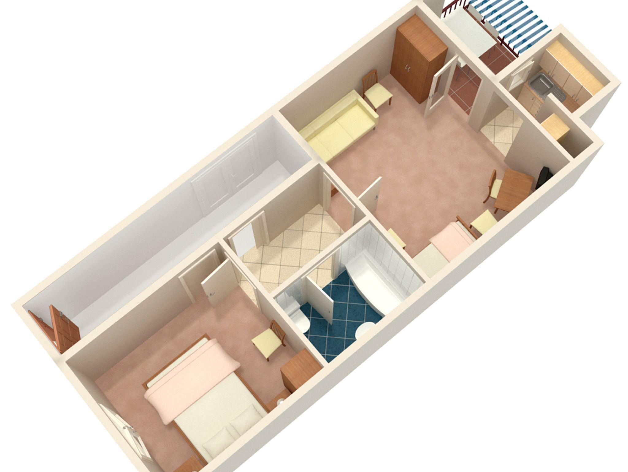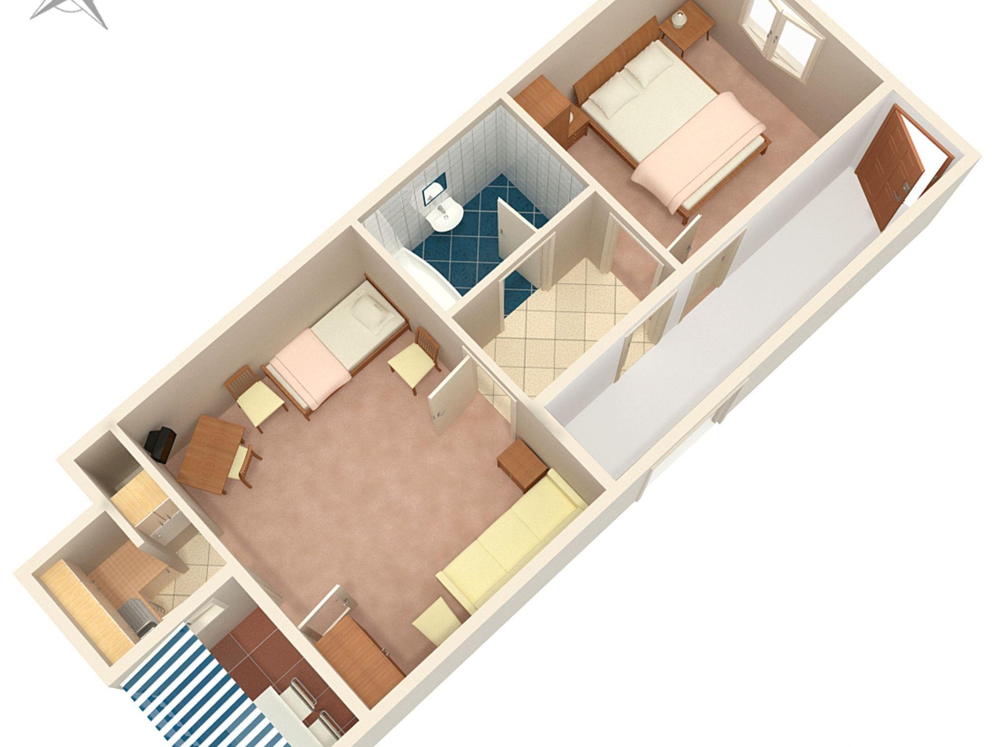 Ferienwohnung bietet Platz für 4 Gäste. Die Betten sind in Schlafzimmern, die es 1 gibt, und in Esszimmer, innerhalb einer Gesamtfläche von 31m2, angeordnet. Die Gäste haben einen eigenen Balkon zur Verfügung, auf der sie in warmen Sommernächten genießen können. Das Apartment bietet Meerblick. Es ist erlaubt, Speisen auf dem Gemeinschafts-Grill vorzubereiten. IM PREIS INBEGRIFFEN: Kurtaxe, Endreinigung, Parkplatz, Internet, Bootsanlegeplatz, Bügeleisen, Bügelbrett, tragbarer Grill. VERBINDLICHE ZUSÄTZLICHE KOSTEN: Aufzahlung für Kurzaufenthalte (prozentualer Zuschlag pro Nächtigungsanzahl: 30% - 1, 20% - 2, 10% - 3). UNVERBINDLICHE ZUSÄTZLICHE KOSTEN: Zusatzbett (12,00 € pro Nacht). Die Verfügbarkeit zusätzlicher Dienstleistungen in Ihrem reservierten Termin und die Preise derselben (falls nicht aufgeführt) müssen im Voraus überprüft werden. Zusätzliche Dienstleistungen die in der Zahlungsaufforderung nicht aufgeführt sind werden direkt beim Vermieter bezahlt, angenommen der Gast nutzt auch diese. Ermäßigung auf den Grundpreis: Gratistag 14=13 (bei einem Aufenthalt von 14 Tagen oder mehr erhalten Sie einen Gratistag für den Aufenthalt bis 31.12.26).