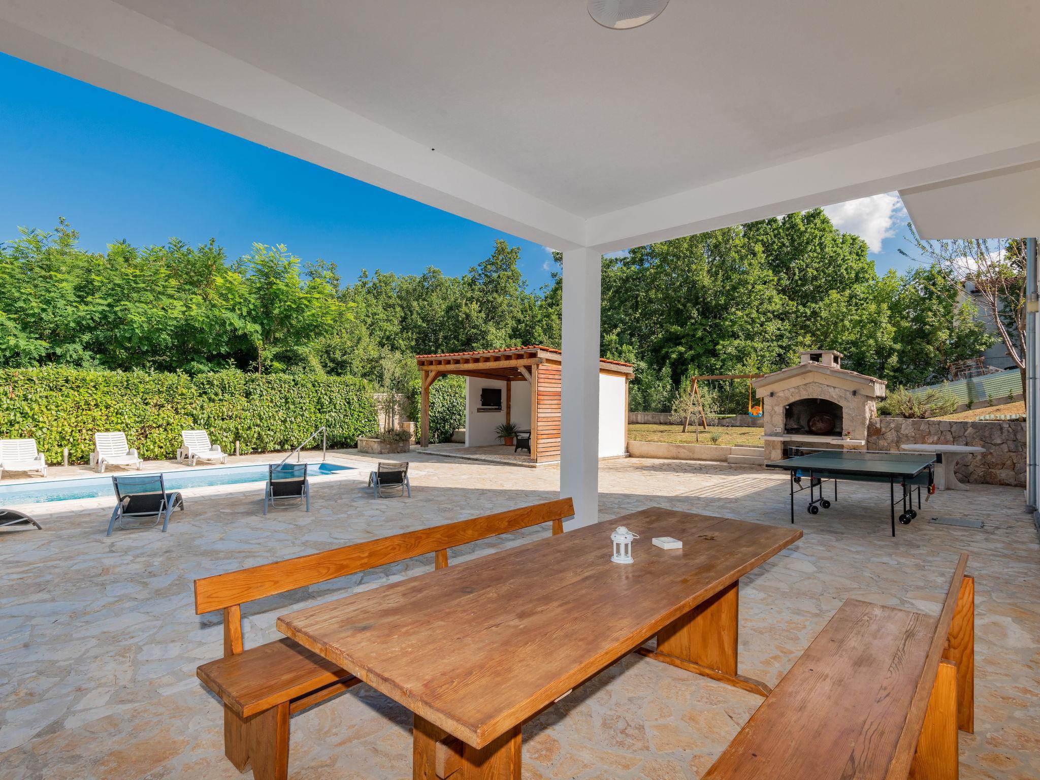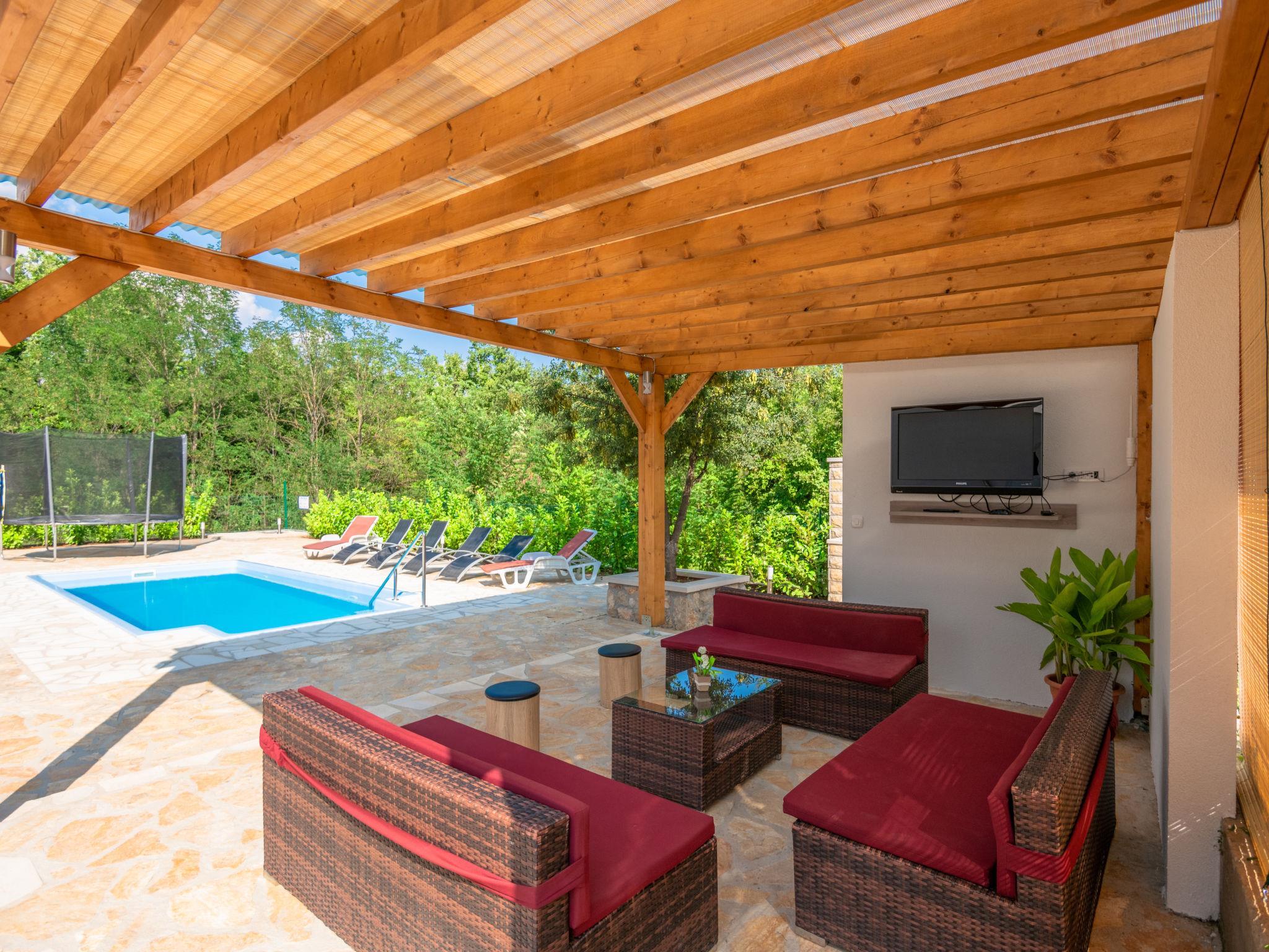 Single-family house "Villa Dalmatina", 2 storeys. 7.5 km from the centre of Imotski, in a quiet, sunny position, 30 km from the sea, 30 km from the beach, in a cul-de-sac. Private: property 3'000 m2 (fenced) with trees, swimming pool angular (7 x 4 m, depth 150 cm, seasonal availability: 15.Jun. - 01.Oct.). WC in the pool area, outdoor shower, pool house with fridge and cooking stove, table tennis, terrace (30 m2), barbecue. In the house: internet access, trampoline. Parking (for 5 cars) at the house on the premises. Shop 250 m, restaurant 7.5 km, bus stop 260 m, pebble beach 30 m. Nearby attractions: Modro jezero 10 km.