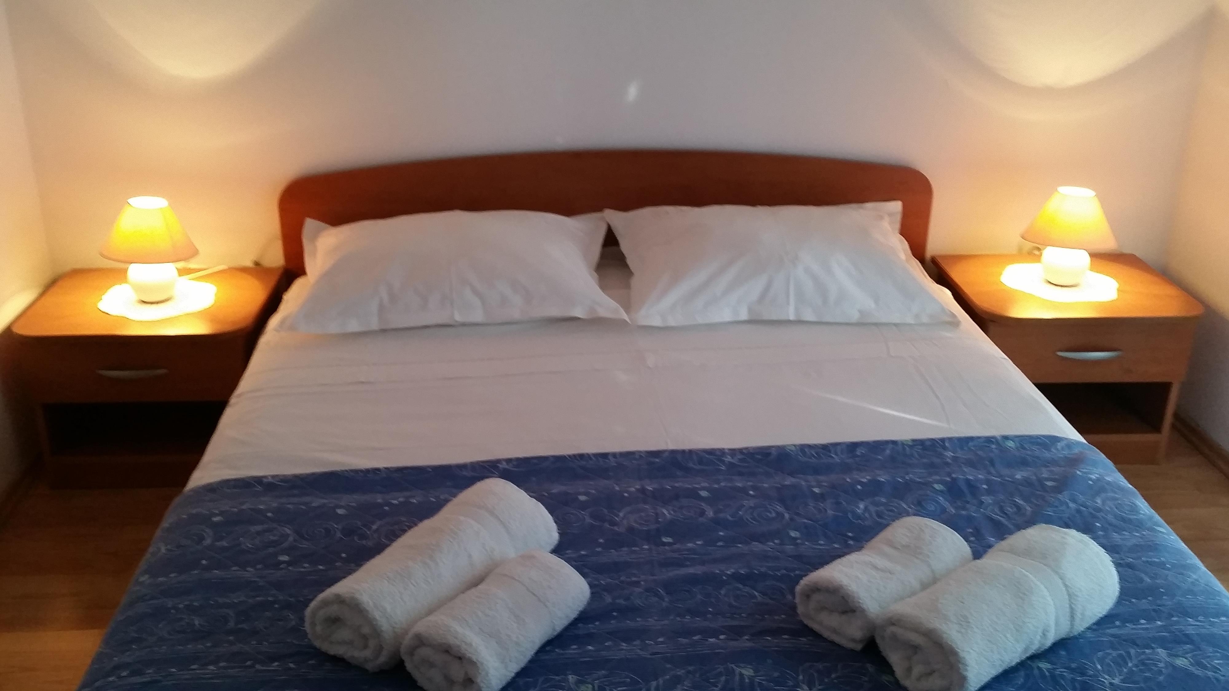 Apartment can accommodate 6 guests. Beds are situated in 2 sleeping rooms, but also in the dining room, within 43m2. Guests can use a private balcony to enjoy the warm summer evenings. The apartment offers the sea view. Food can be prepared using barbecue which is shared with other guests too. This accommodation unit welcomes pets at an additional charge.