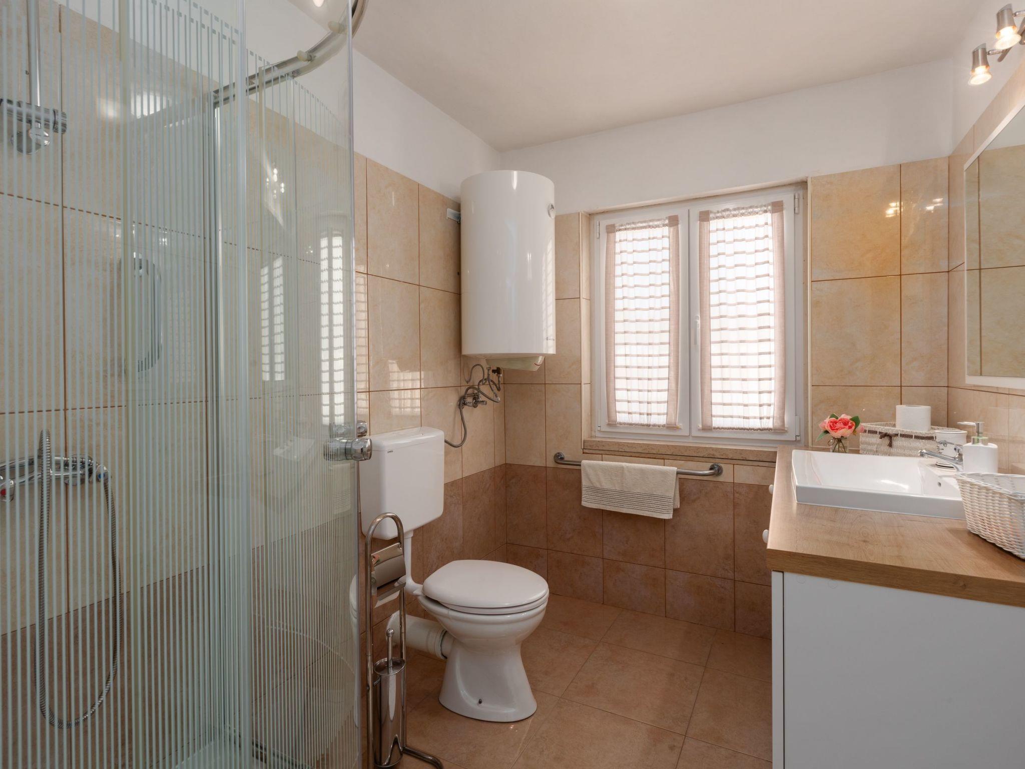 Inside, House Anna is designed to cater to your every need, ensuring a comfortable stay. The ground floor boasts a fully equipped kitchen, complete with a dishwasher, stove, oven, microwave, electric kettle, and a filter coffee machine, ensuring you have everything you need to whip up delicious meals. The dining table is perfectly situated for family meals, while the cozy living room, with direct access to the outdoor terrace, offers a welcoming space to relax. A convenient bathroom with a washing machine, shower, and toilet, as well as a useful storage room, is also located on the ground floor. The first floor comprises three bedrooms, one offering balcony access for a breath of fresh air, alongside an additional bathroom equipped with a shower and toilet, accommodating the needs of families and guests alike.