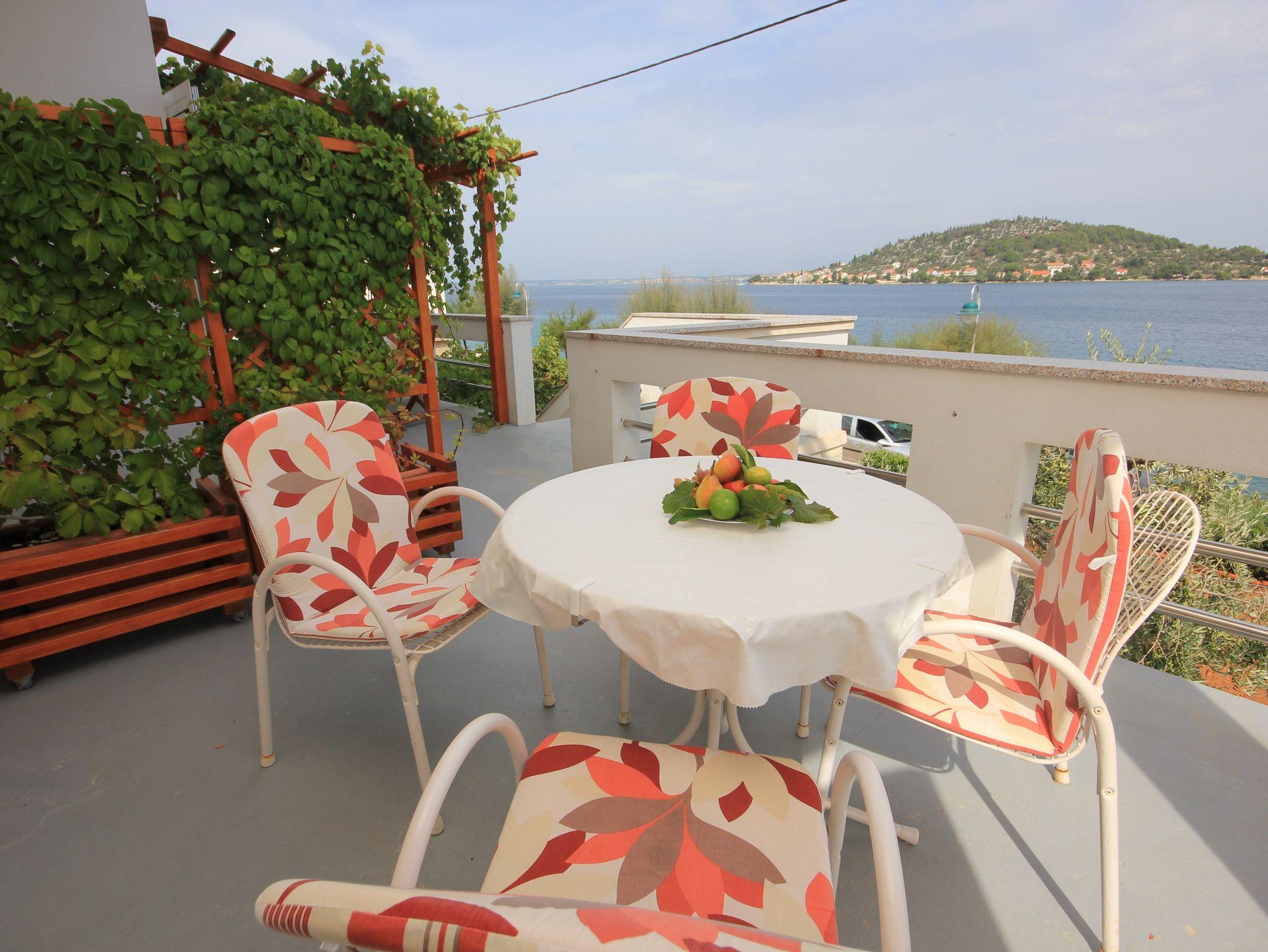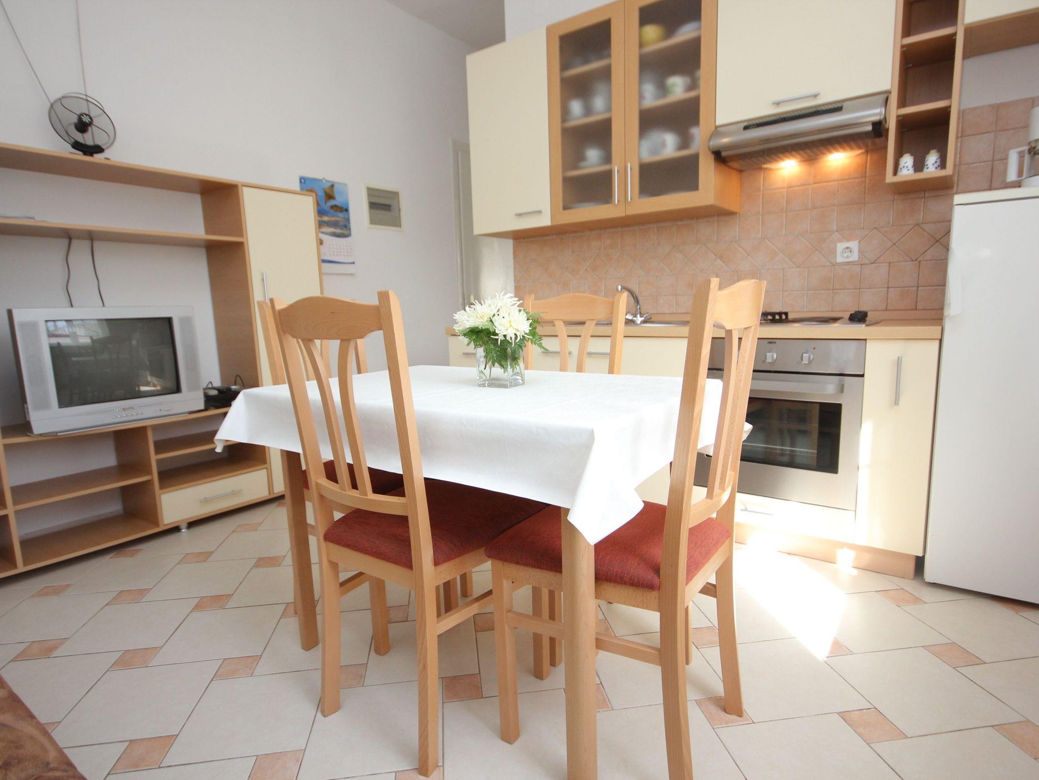 Ferienwohnung bietet Platz für 3 Gäste. Die Betten sind in Schlafzimmern, die es 1 gibt, und in Esszimmer, innerhalb einer Gesamtfläche von 34m2, angeordnet. Die Gäste haben eine eigene Terrasse zur Verfügung, auf der sie in warmen Sommernächten genießen können. Das Apartment bietet Meerblick. Es ist erlaubt, Speisen auf dem Gemeinschafts-Grill vorzubereiten. In der Unterkunftseinheit besteht die Möglichkeit des Mitbringens von Haustieren gegen Aufpreis. IM PREIS INBEGRIFFEN: Kurtaxe, Endreinigung, Klimatisierung, Parkplatz, Internet, Kinderbett, Bügeleisen, Bügelbrett, Föhn, tragbarer Grill, Sonnenschirm, Liegestühle. UNVERBINDLICHE ZUSÄTZLICHE KOSTEN: Zentralheizung (5,00 € pro Nacht), Wäschewaschen (10,00 € Waschen), Bootsanlegeplatz (5,00 € pro Nacht), Haustiere (5,00 € pro Nacht). Die Verfügbarkeit zusätzlicher Dienstleistungen in Ihrem reservierten Termin und die Preise derselben (falls nicht aufgeführt) müssen im Voraus überprüft werden. Zusätzliche Dienstleistungen die in der Zahlungsaufforderung nicht aufgeführt sind werden direkt beim Vermieter bezahlt, angenommen der Gast nutzt auch diese.