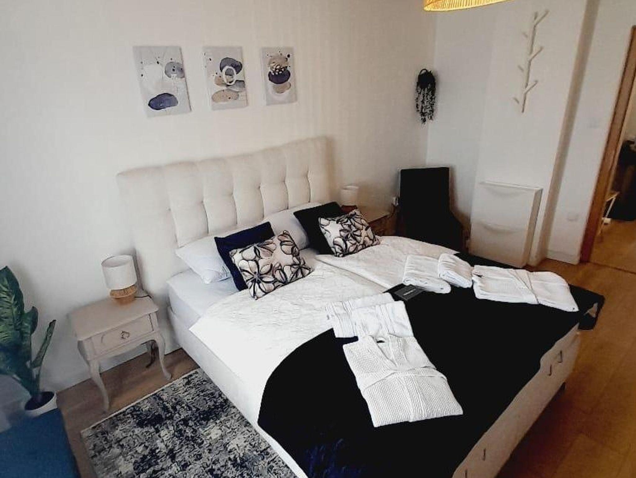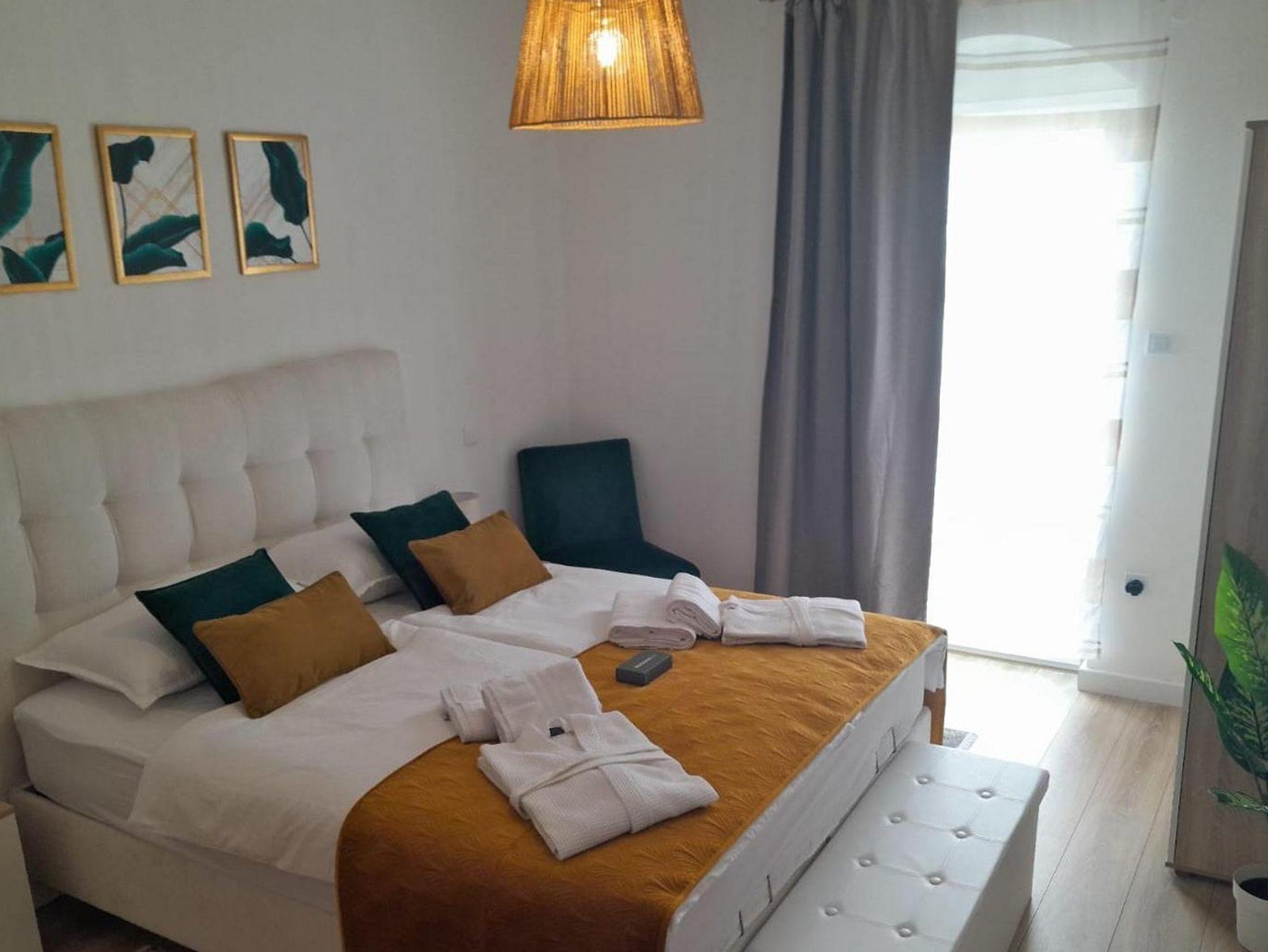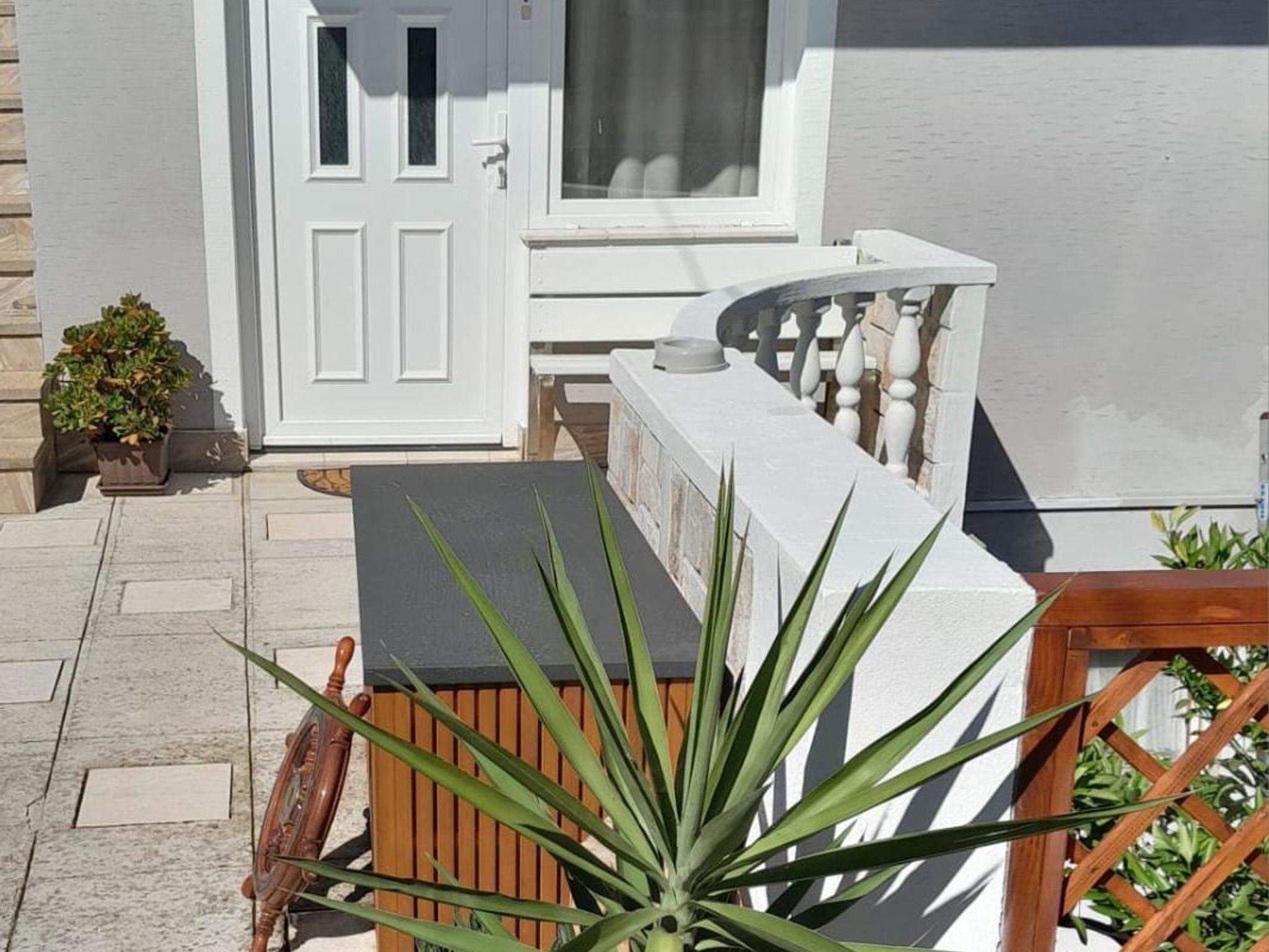 Ferienwohnung bietet Platz für 4 Gäste. Die Betten sind in Schlafzimmern, die es 2 gibt, innerhalb einer Gesamtfläche von 58m2, angeordnet. Die Gäste haben eine eigene Terrasse zur Verfügung, auf der sie in warmen Sommernächten genießen können. Das Apartment bietet Meerblick. Es ist erlaubt, Speisen auf dem Gemeinschafts-Grill vorzubereiten. In der Unterkunftseinheit besteht die Möglichkeit des Mitbringens von Haustieren gegen Aufpreis. IM PREIS INBEGRIFFEN: Kurtaxe, Endreinigung, Klimatisierung, Parkplatz, Internet, Kinderbett, Bügeleisen, Bügelbrett, Föhn. UNVERBINDLICHE ZUSÄTZLICHE KOSTEN: Haustiere (10,00 € pro Nacht). Die Verfügbarkeit zusätzlicher Dienstleistungen in Ihrem reservierten Termin und die Preise derselben (falls nicht aufgeführt) müssen im Voraus überprüft werden. Zusätzliche Dienstleistungen die in der Zahlungsaufforderung nicht aufgeführt sind werden direkt beim Vermieter bezahlt, angenommen der Gast nutzt auch diese. Ermäßigung auf den Grundpreis: Gratistag 14=13 (bei einem Aufenthalt von 14 Tagen oder mehr erhalten Sie einen Gratistag für den Aufenthalt bis 31.12.26).