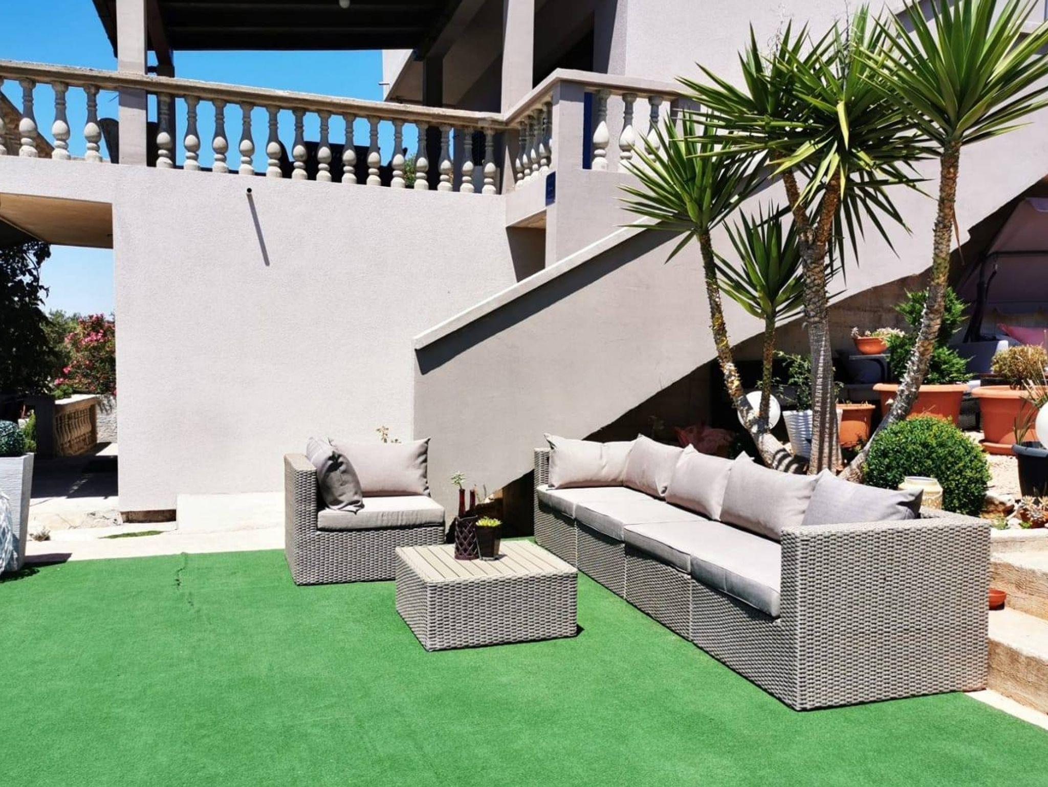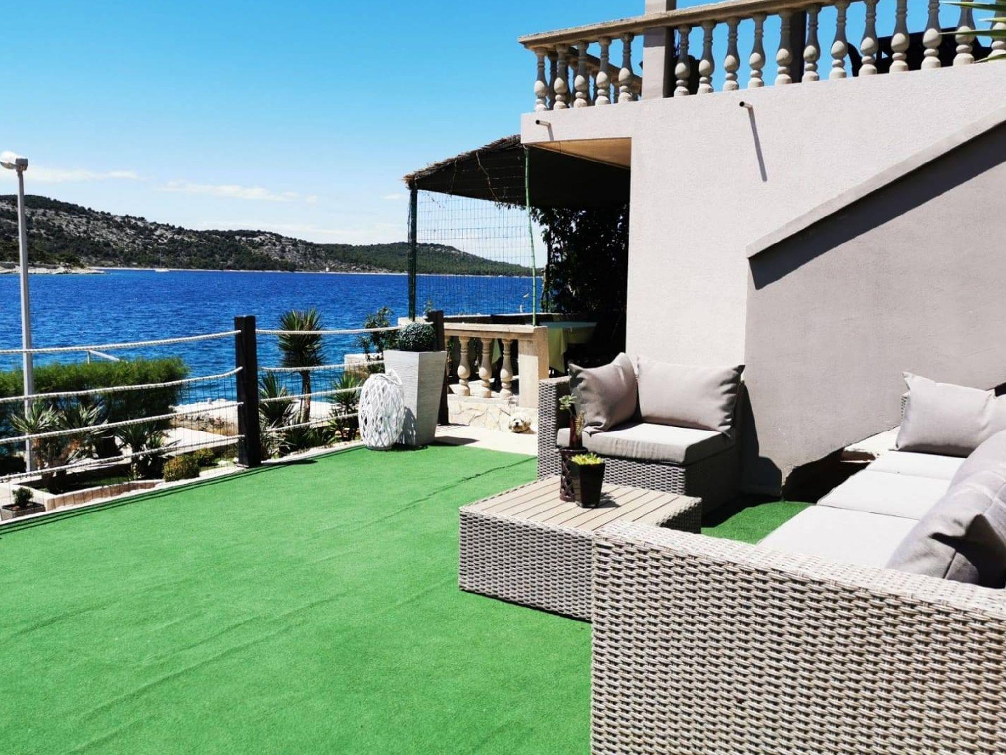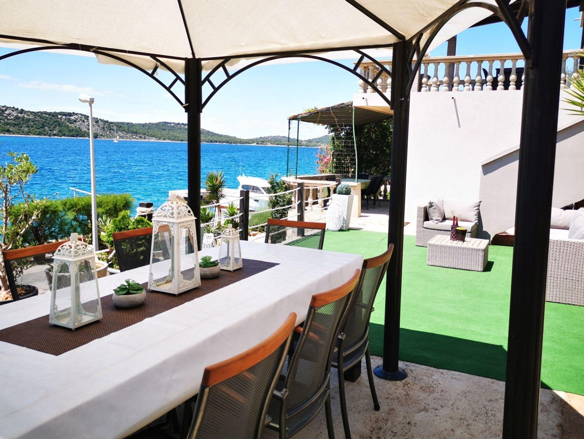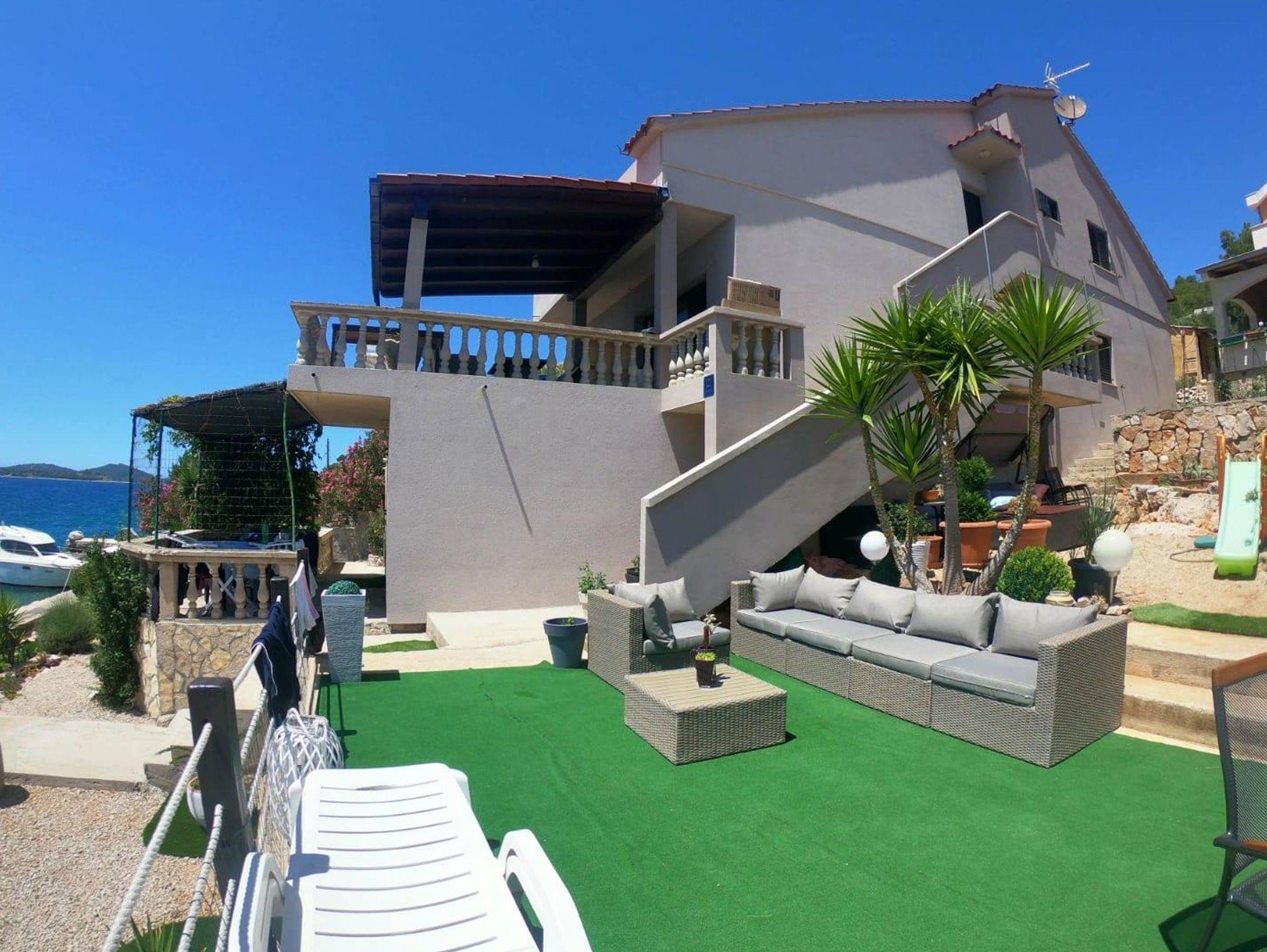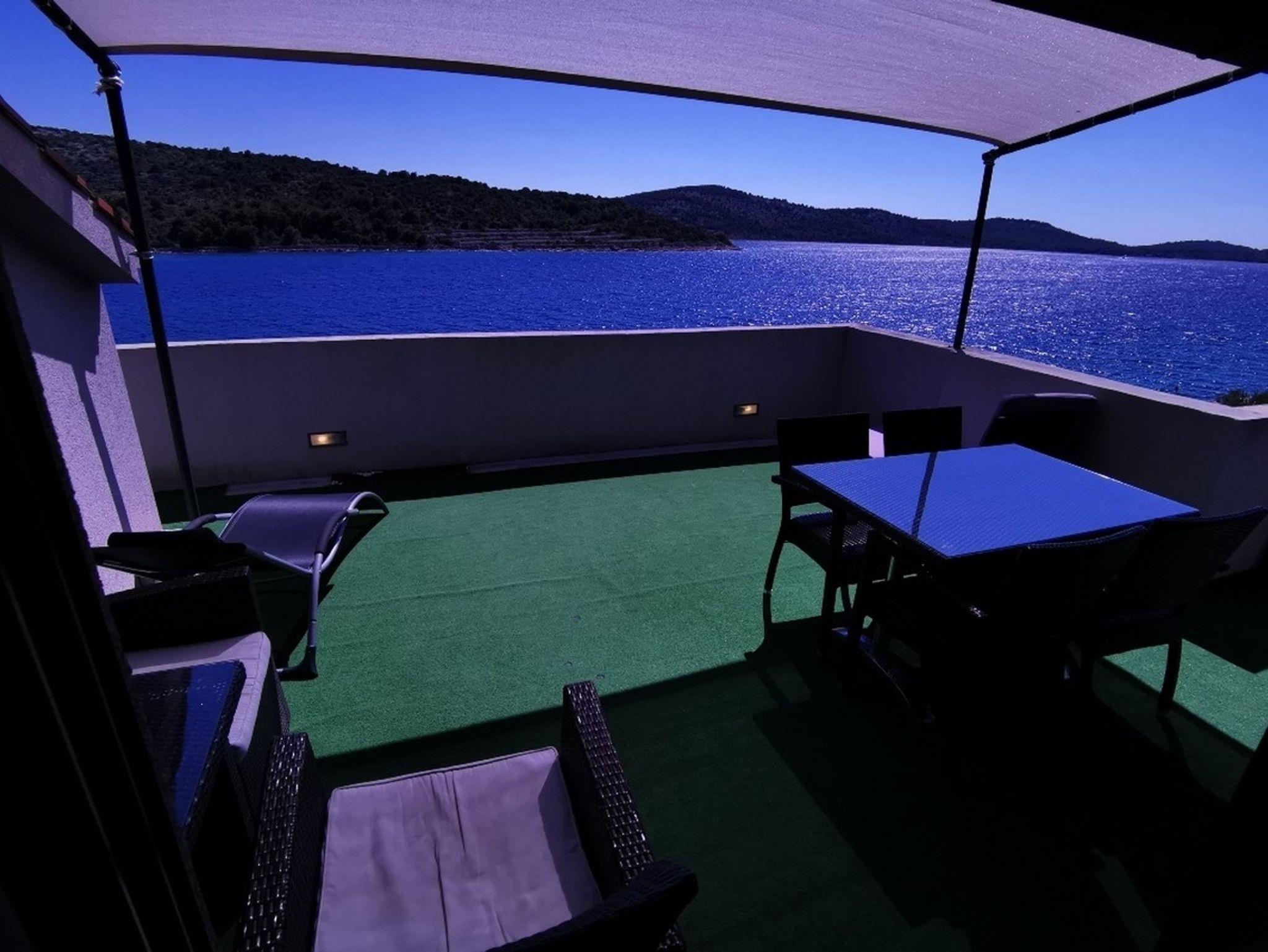 Ferienwohnung bietet Platz für 6 Gäste. Die Betten sind in Schlafzimmern, die es 3 gibt, innerhalb einer Gesamtfläche von 114m2, angeordnet. Die Gäste haben eine eigene Terrasse zur Verfügung, auf der sie in warmen Sommernächten genießen können. Das Apartment bietet Meerblick. Es ist erlaubt, Speisen auf dem Gemeinschafts-Grill vorzubereiten. In der Unterkunftseinheit besteht die Möglichkeit des Mitbringens von Haustieren, und die Dienstleistung ist im Preis der Unterkunft enthalten. IM PREIS INBEGRIFFEN: Kurtaxe, Endreinigung, Klimatisierung, Parkplatz, Internet, Boot, Bootsanlegeplatz, Haustiere, Fahrrad, Kinderbett, Bügeleisen, Bügelbrett, Föhn, Sonnenschirm, Liegestühle. Die Verfügbarkeit zusätzlicher Dienstleistungen in Ihrem reservierten Termin und die Preise derselben (falls nicht aufgeführt) müssen im Voraus überprüft werden. Zusätzliche Dienstleistungen die in der Zahlungsaufforderung nicht aufgeführt sind werden direkt beim Vermieter bezahlt, angenommen der Gast nutzt auch diese.