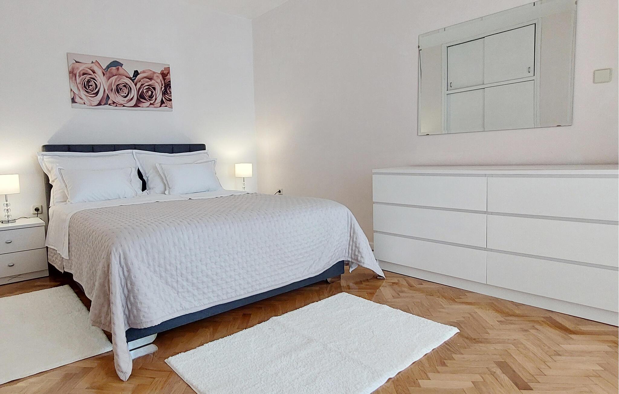 Eine schöne zweitstöckige Ferienwohnung direkt am Meer. Sie bietet Ihnen von der einen Seite eine märchenhafte Aussicht auf das Meer und von der anderen Seite einen Ausblick auf den Berg. Vor dem Haus ist ein Betonstrand, auf dem Sie mit der ganzen Familie beim Sonnen und Schwimmen Ihren wohlverdienten Urlaub genießen können. Der Pool befindet sich im Garten und ist mit Meerwasser gefüllt. Entspannen Sie beim Grillen und genießen Sie das angenehme Klima im Freien. Jedes Schlafzimmer verfügt über eine Klimaanlage und einen Fernseher. Besichtigen Sie auch den Nationalpark Paklenica, welcher ca. 20 km von der Ferienwohnung entfernt ist.