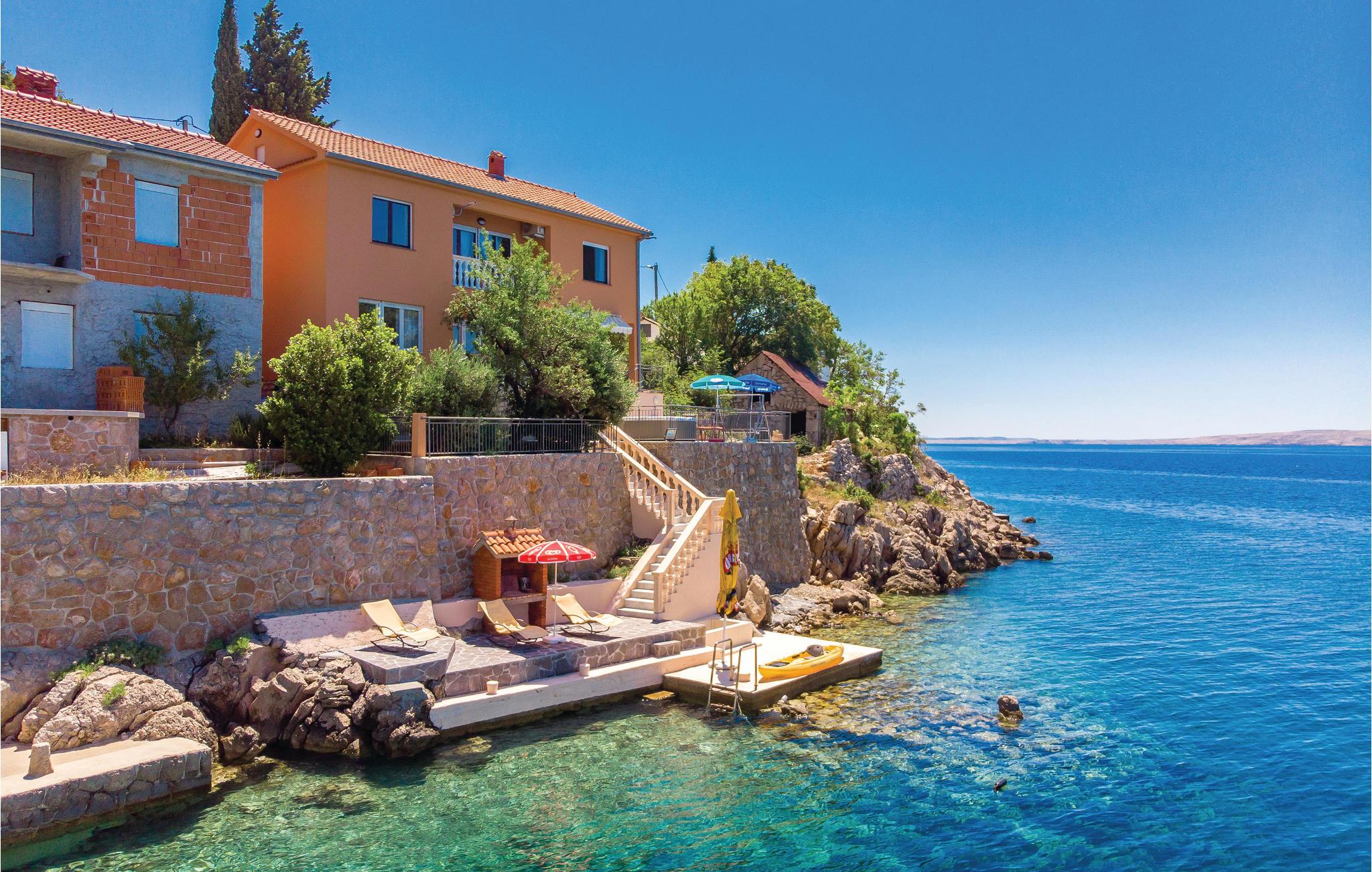 Dieses Ferienhaus liegt direkt am Meer, in ruhiger Lage, fernab vom Stadtgetümmel. Es besteht aus zwei Etagen, die durch Außentreppen miteinander verbunden sind. Mit insgesamt 5 Schlafzimmern ist diese Unterkunft ideal für zwei Familien oder eine Freundesgruppe, die Ihren Urlaub gemeinsam verbringen wollen. Auf dem Betonplateau vor dem Haus befinden sich Sonnenliegen direkt am Meer. Für Ihr Gummiboot oder ein kleines Motorboot steht Ihnen eine Bootsanlegestelle zur Verfügung. Wandern Sie durch den Nationalpark Paklenica und lernen das Velebit Gebirge kennen, eines der schönsten in Europa. Besuchen Sie auch die schöne Stadt Zadar.