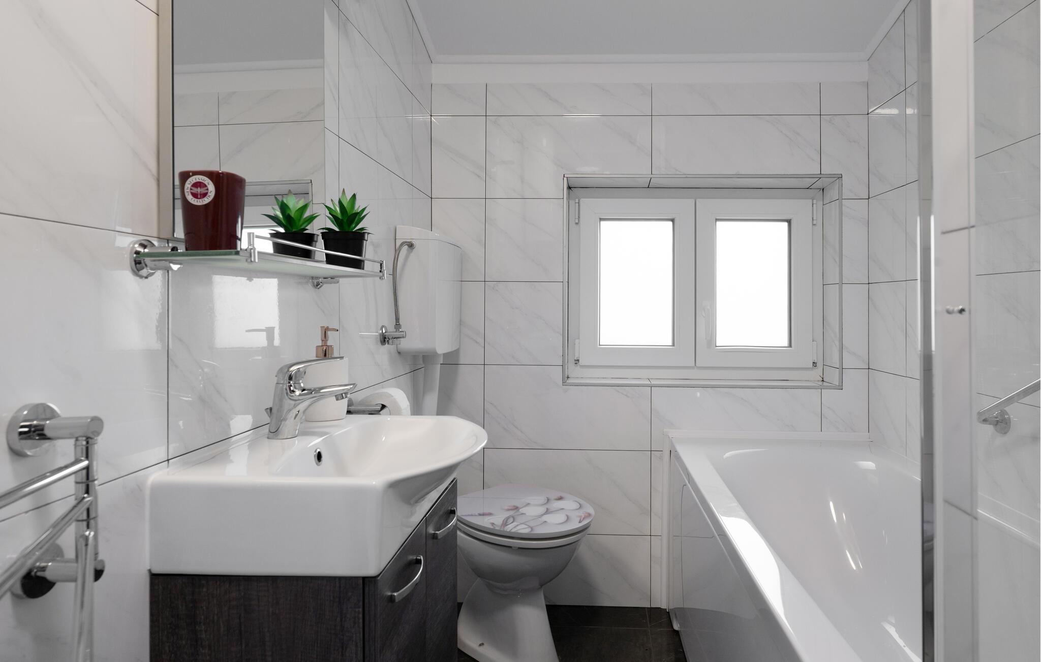 Badezimmer (nr. 1) - WC. Warmes und kaltes Wasser. Handdusche