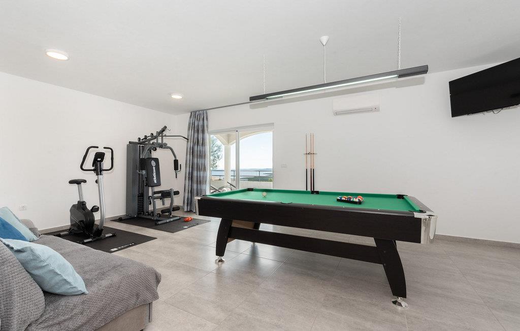 Die Villa Dream View ist eine moderne Villa, die auf einem Hügel liegt und einen Panoramablick auf das Meer bietet. Die Villa hat einen privaten Pool und ein Spielraum, vier Schlafzimmer und bietet Platz für bis zu 8 Personen. Erfrischen und entspannen sie sich im privaten Pool während der heißen Sommertage, mit einem kalten Getränk in Ihrer Hand oder Ihrem Lieblingsbuch. Auf der Terrasse befindet sich ein Whirlpool, perfekt für Entspannung während der warmen Sommerabende, wenn die Sonne untergeht. Zur Verfügung steht Ihnen ein Grill, wo sie Mahlzeiten zubereiten und Ihren inneren Masterchef befreien können, und der Essbereich im Freien ist der perfekte Ort für das gemeinsame Abendessen mit Ihrer Familie. Im Erdgeschoss der Villa befinden sich eine Küche mit Essbereich und ein Spielraum. Dort befindet sich auch ein Billardtisch, eine Sauna, ein multifunktionales Fitnessgerät und auch eine separate Dusche. Dank den Sportgeräten müssen Sie im Urlaub nicht auf Ihren Trainingsalltag verzichten. Auf der ersten Etage befindet sich eine Küche, Ess- und Wohnzimmer, vier Schlafzimmer und vier Badezimmer. Eines der Schlafzimmer ist mit 2 Einzelbetten ausgestattet. Zwei Schlafzimmer haben en suite Badezimmer. Im ersten Stock befindet sich eine kleine Terrasse, auf der sich ein kleiner Esstisch befindet, perfekt für den ersten Kaffee am Morgen oder eine Tasse Tee mit einem perfekten Blick auf das Meer. Dies ist eine Villa von der Sie träumen. Buchen Sie die Villa Dream View und erfüllen Sie sich Ihre Träume!Koromacno ist ein kleiner Ort in der Gemeinde Rasa im südöstlichen Teil Istriens. Dies ist ein Gebiet mit wunderschöner und friedlicher Natur mit vielen Buchten, Strände und Hügeln. Diese Region ist bekannt für ihre Rad- und Wanderwege sowie auch für die vielen schönen Tauchplätze. Etwa 15 bis 20 Kilometer von der Villa befinden sich die Städte Labin und Rabac, zwei Nachbarstädte. Rabac ist eine Küstenstadt und Labin befindet sich einige Kilometer im Inneren Istriens. Die Stadt Labin ist ein perfekter Ort für Kunst- und Geschichtsliebehaber, und die Stadt Rabac ist bekannt für seine schönen Strände und hervorragende Gastronomie. Wenn Sie die weitere Region von Istrien erkunden möchten, können Sie Ausflüge mit dem Auto nach Pula und Rovinj planen, zwei alte römische Städte an der Küste. Beide sind etwa eine Autostunde entfernt und in jeder können Sie den ganzen Tag verbringen um Sie zu erkunden, da sie voller berümter historischer Sehenswürdigkeiten - wie der Pula Arena und der Kirche St. Euphemia in Rovinj- sind.