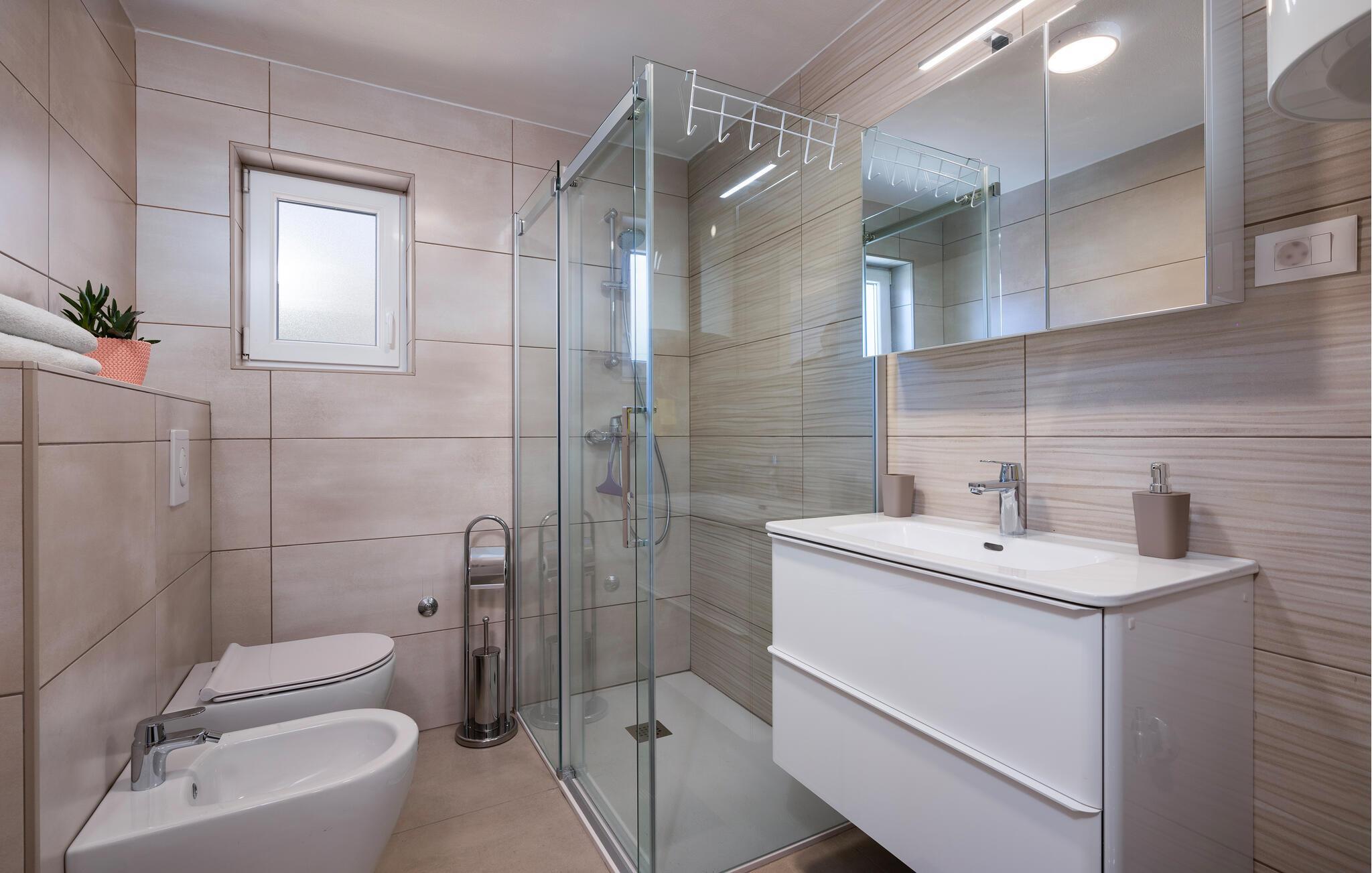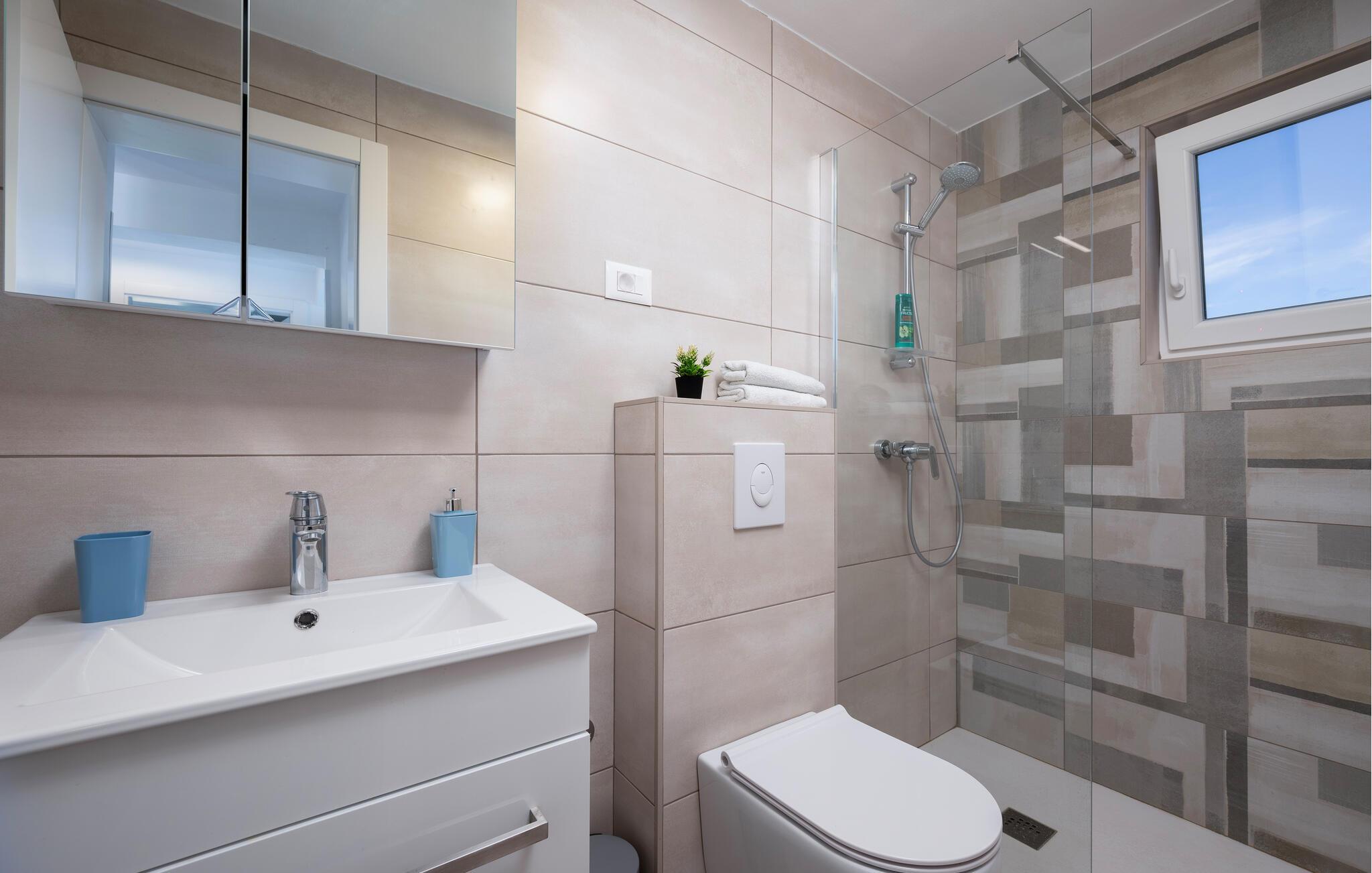 Badezimmer 4m2 (nr. 2) - WC. Warmes und kaltes Wasser. Dusche