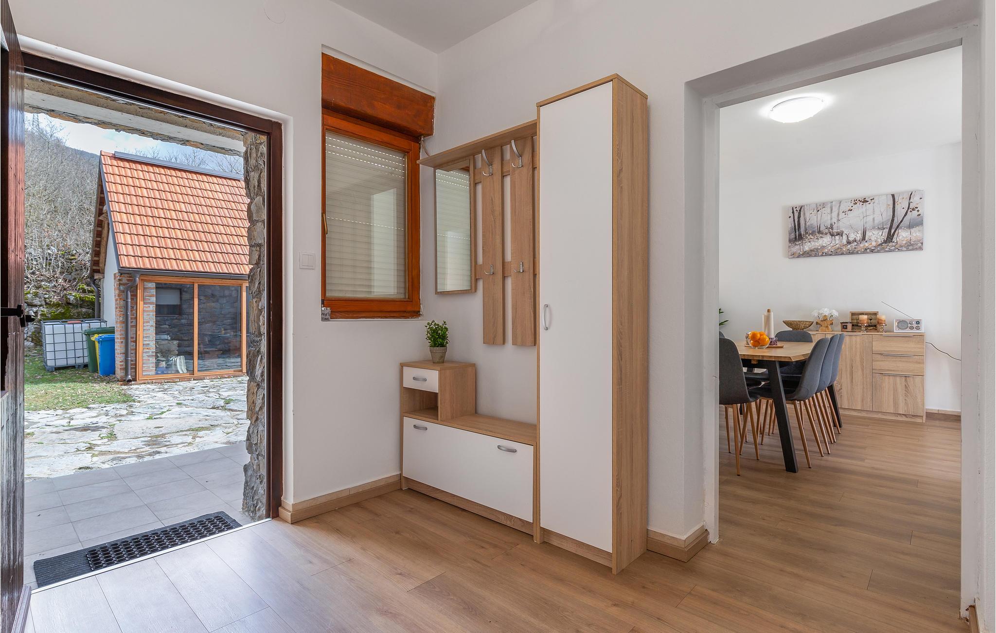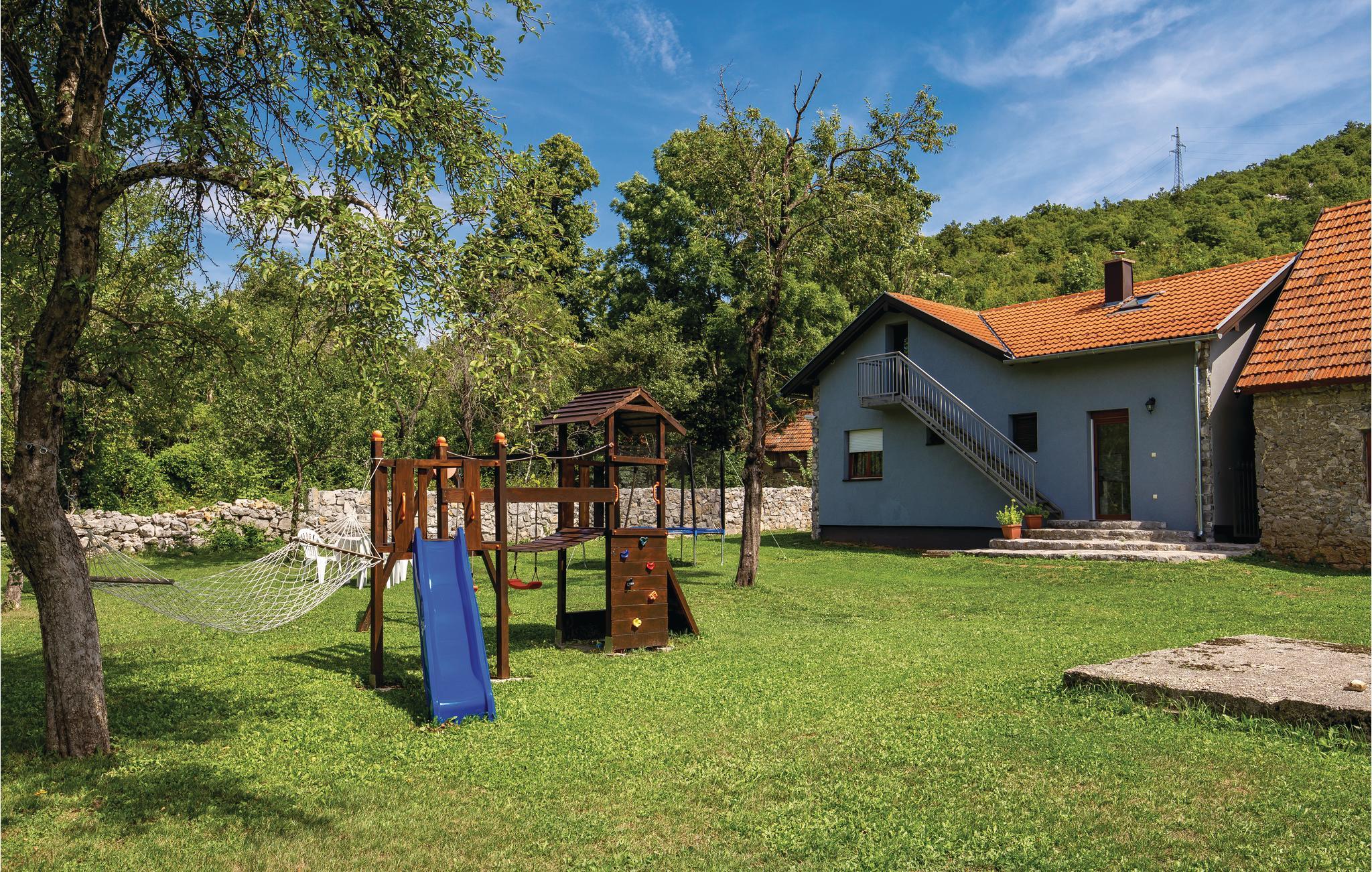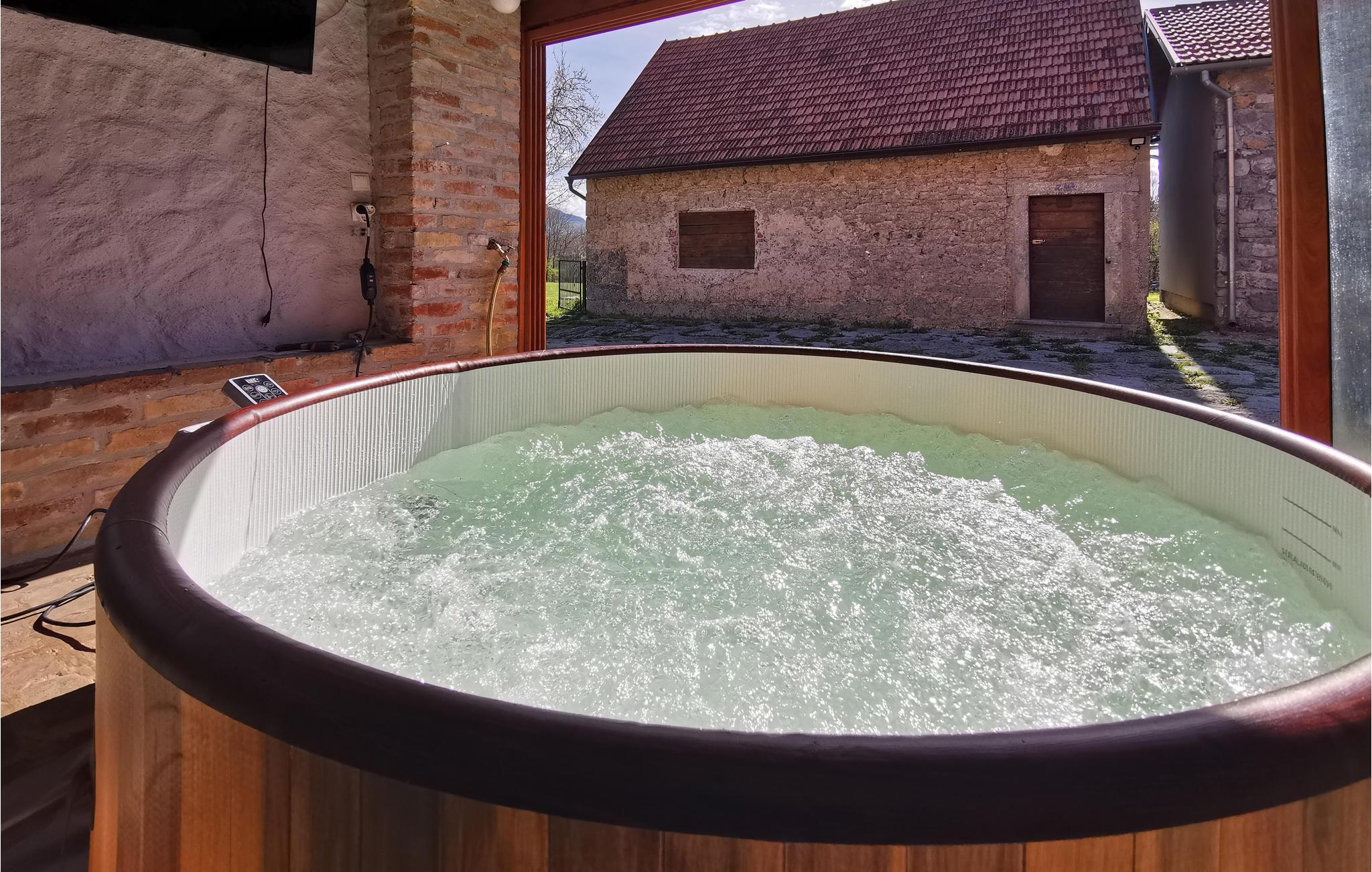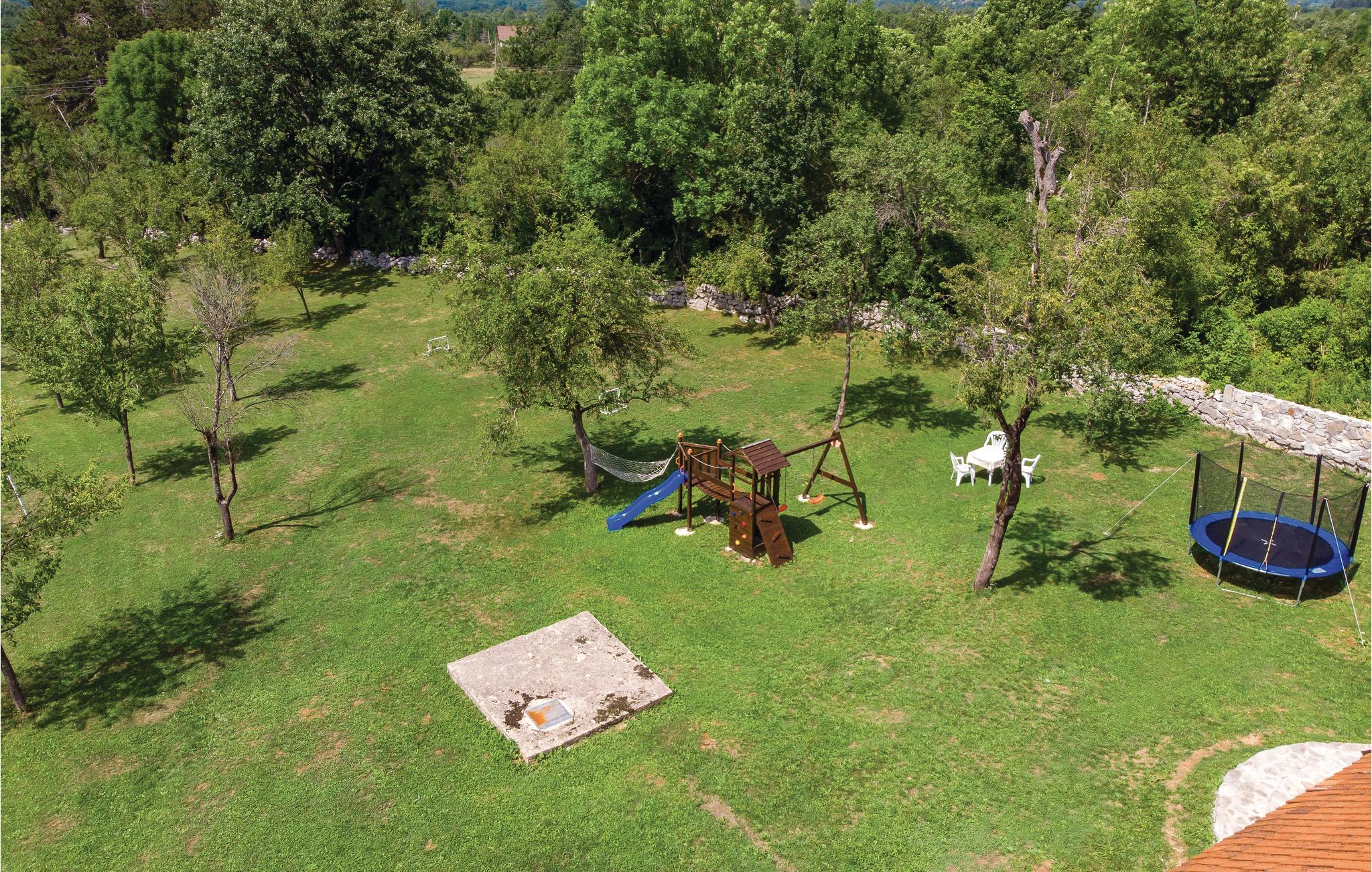Dieses vielseitige Ferienhaus ist umgeben von herrlicher Natur und liegt auf einem Grundstück mit etwa 30.000 m². Es besteht aus zwei Etagen, die mit Außentreppen verbunden sind. Auf der überdachten Terrasse im Hof, die mit Glaswänden geschlossen ist, finden Sie auch einen Wellnessbereich mit Holzbadetonne und Sauna für 6 Personen, wo Sie Ihrem Körper Entspannung schenken können. Daneben ist auch der Grill mit Gartenmöbeln, der im Urlaub nicht fehlen darf. Auf diesem Anwesen gibt es auch zahlreiche unterhaltsame Freizeitmöglichkeiten für Kinder und Erwachsene. Von der Hauptstraße bis zum Haus sind 300 m nicht asphaltiert. Besuchen Sie das Museum von Nikola Tesla in Gospic, den Nationalpark Plitwitzer Seen, die längste Zip-Line in Europa, das Bärenrefugium in Kuterevo und die Höhlen in Cerovac.