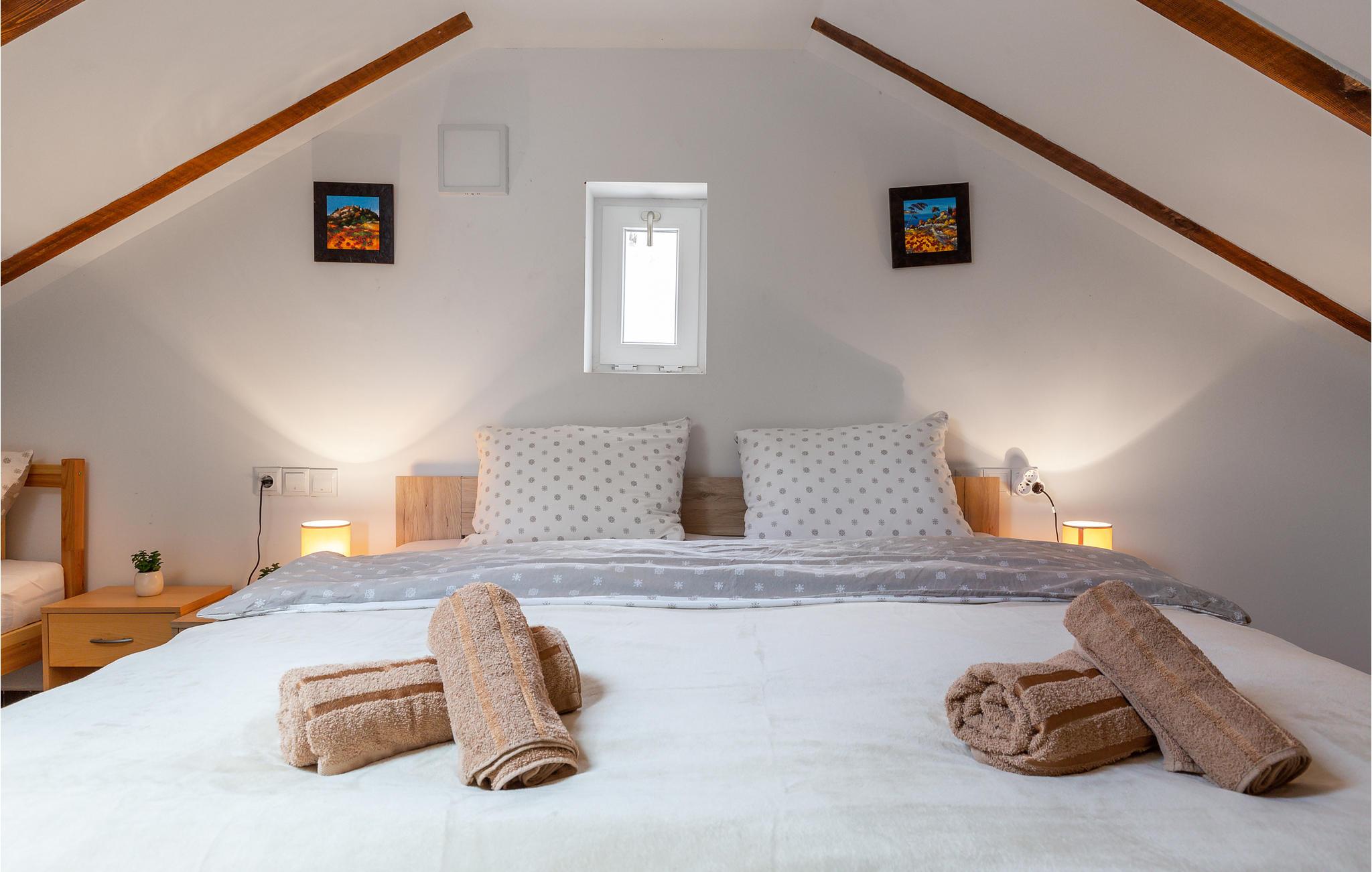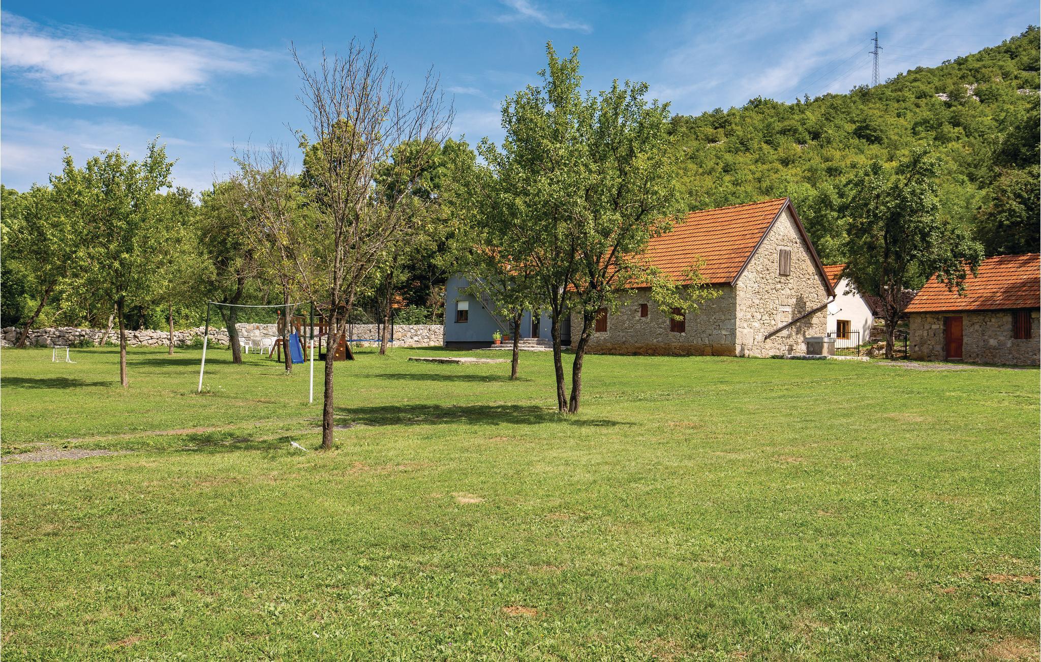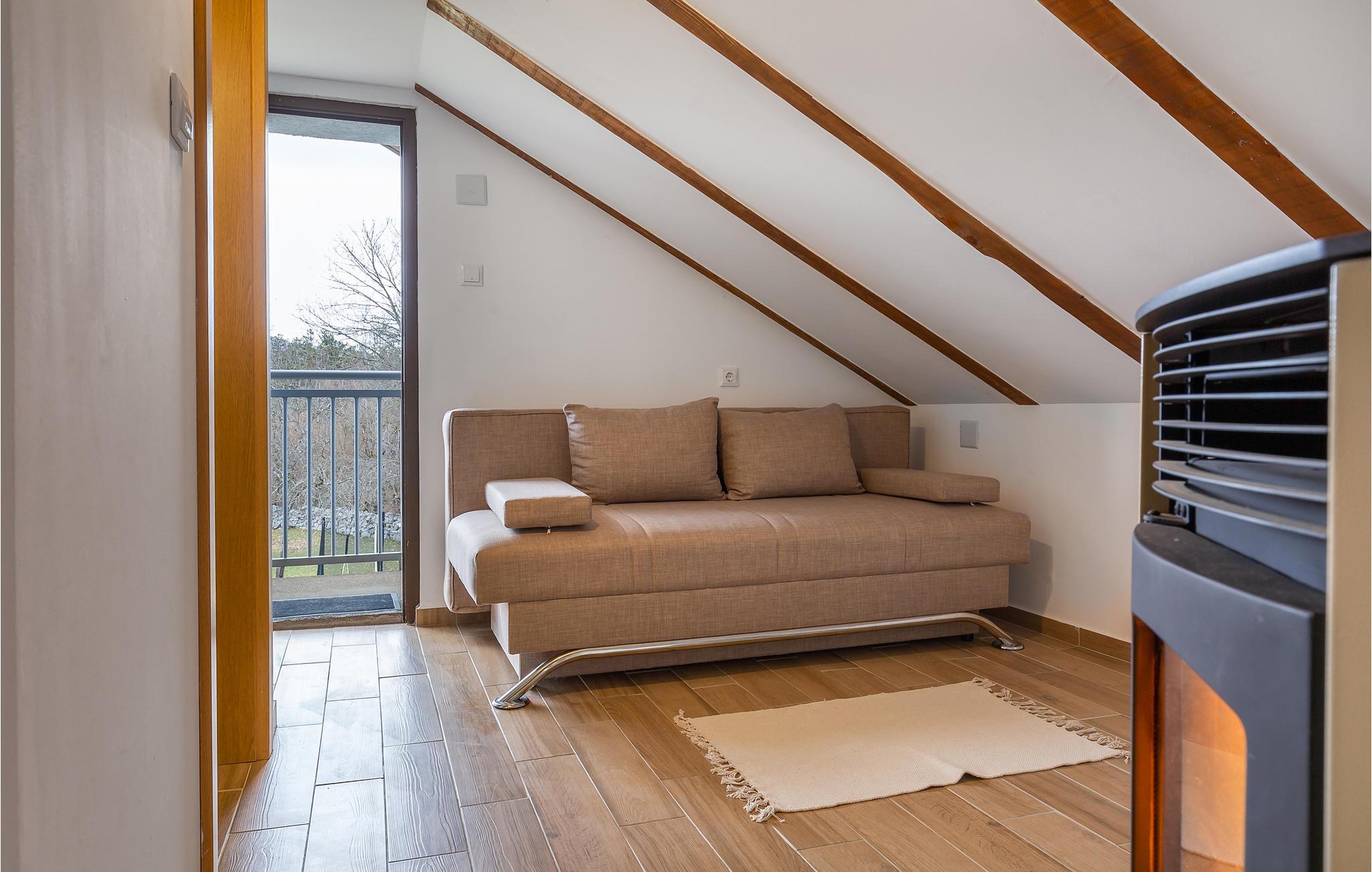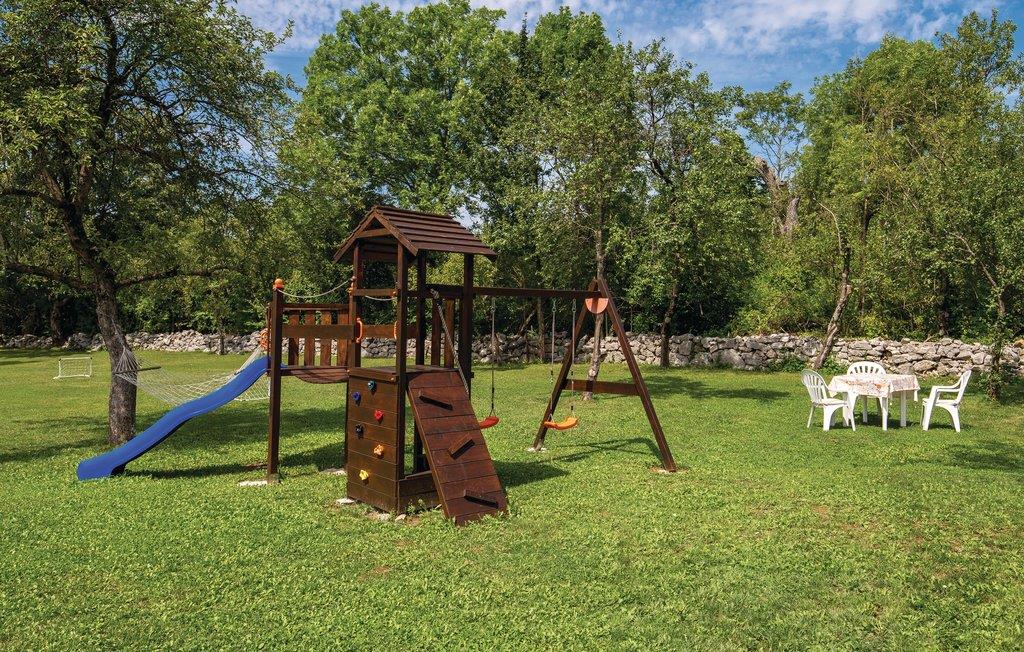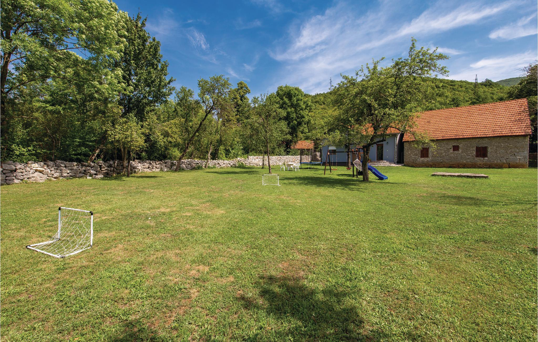 Dieses vielseitige Ferienhaus ist umgeben von herrlicher Natur und liegt auf einem Grundstück mit etwa 30.000 m². Es besteht aus zwei Etagen, die mit Außentreppen verbunden sind. Auf der überdachten Terrasse im Hof, die mit Glaswänden geschlossen ist, finden Sie auch einen Wellnessbereich mit Holzbadetonne und Sauna für 6 Personen, wo Sie Ihrem Körper Entspannung schenken können. Daneben ist auch der Grill mit Gartenmöbeln, der im Urlaub nicht fehlen darf. Auf diesem Anwesen gibt es auch zahlreiche unterhaltsame Freizeitmöglichkeiten für Kinder und Erwachsene. Von der Hauptstraße bis zum Haus sind 300 m nicht asphaltiert. Besuchen Sie das Museum von Nikola Tesla in Gospic, den Nationalpark Plitwitzer Seen, die längste Zip-Line in Europa, das Bärenrefugium in Kuterevo und die Höhlen in Cerovac.