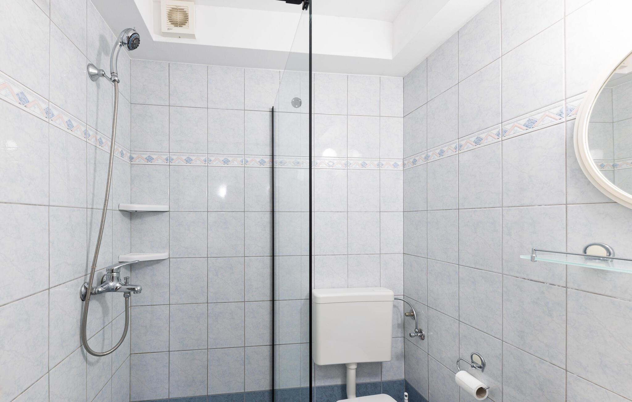- WC mit warmem und kaltem Wasser, Dusche
