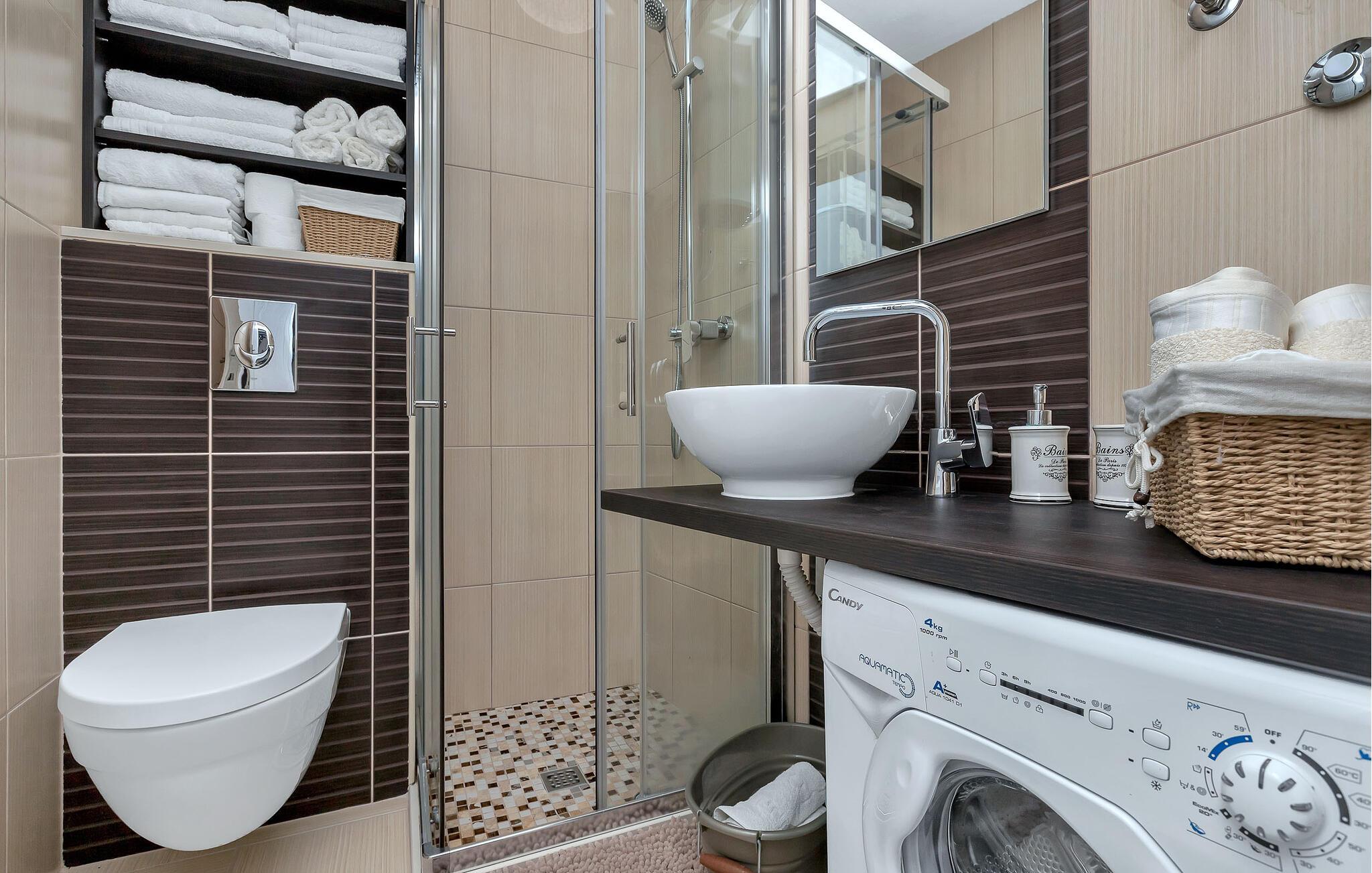 - WC mit warmem und kaltem Wasser, Dusche