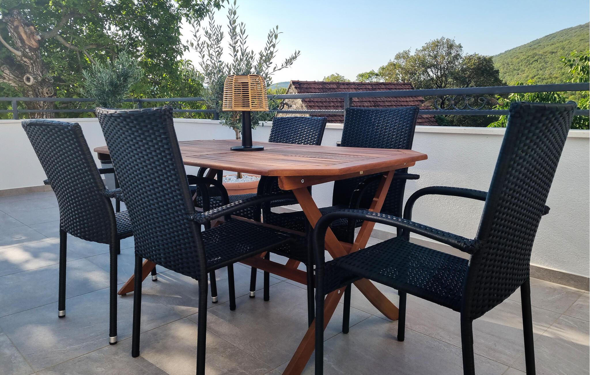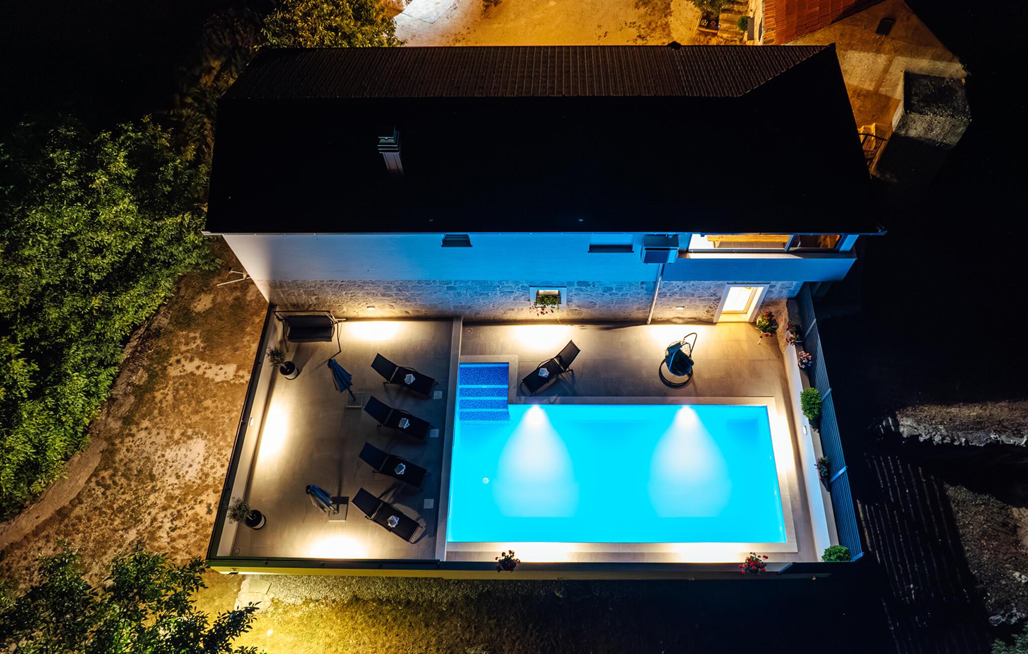 Lassen Sie auch im Freien umgeben von der idyllischen Landschaft die Seele baumeln. Genießen Sie die Sonne auf einer der Terrassen, erfrischen Sie sich im Pool, später können Sie Leckereien vom Grill für die ganze Familie servieren und gemeinsam unter freiem Himmel entspannen.