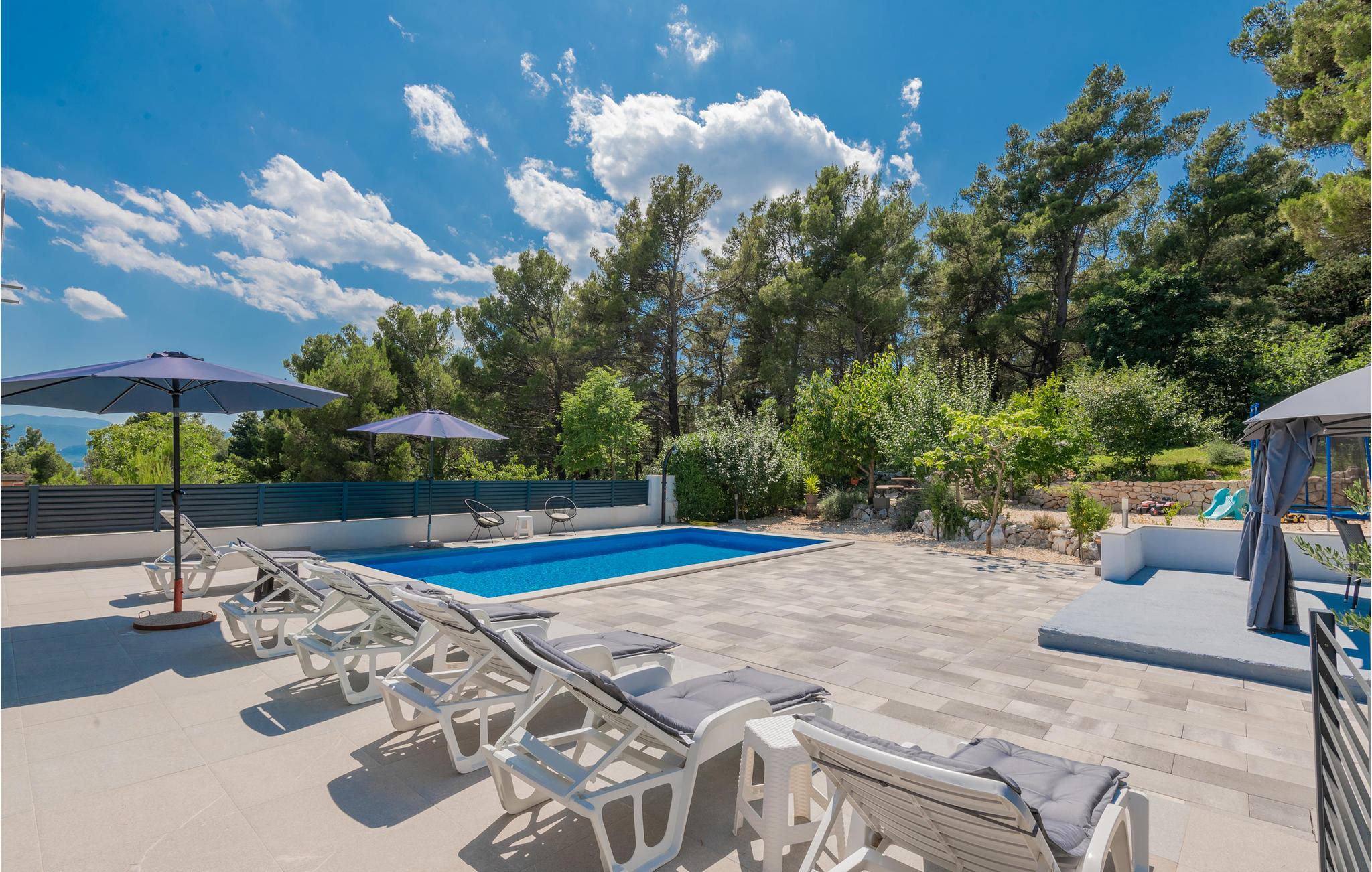 Dieses schöne Ferienhaus liegt im Zentrum von Dalmatien in der Region beim Roten und Blauen See. Oberhalb des geräumigen Hauses befindet sich ein schön angelegter weitläufiger Garten mit Pool und mehreren Terrassen mit Grill, wo Sie die Zubereitung köstlicher Mahlzeiten genießen können. Für die Kleinsten gibt es einen Kinderspielplatz.