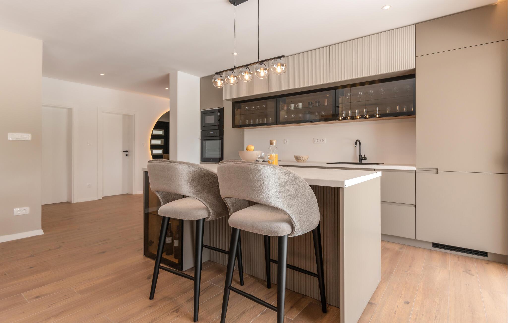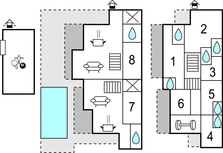 Die Villa selbst beeindruckt durch ihr stilvolles Design und bietet Ihnen höchsten Komfort. Und mit einem geschmackvoll eingerichteten, offenen Wohnbereich und einer gut ausgestatteten Küche ist hier alles vorhanden, was Sie in Ihrem Urlaub benötigen. Nutzen Sie auch den Fitnessraum der Villa, um sich fit zu halten oder spielen Sie Billard und Tischfußball. Für die kleinen Urlaubsgäste stehen im Garten Spielgeräte zur Verfügung.