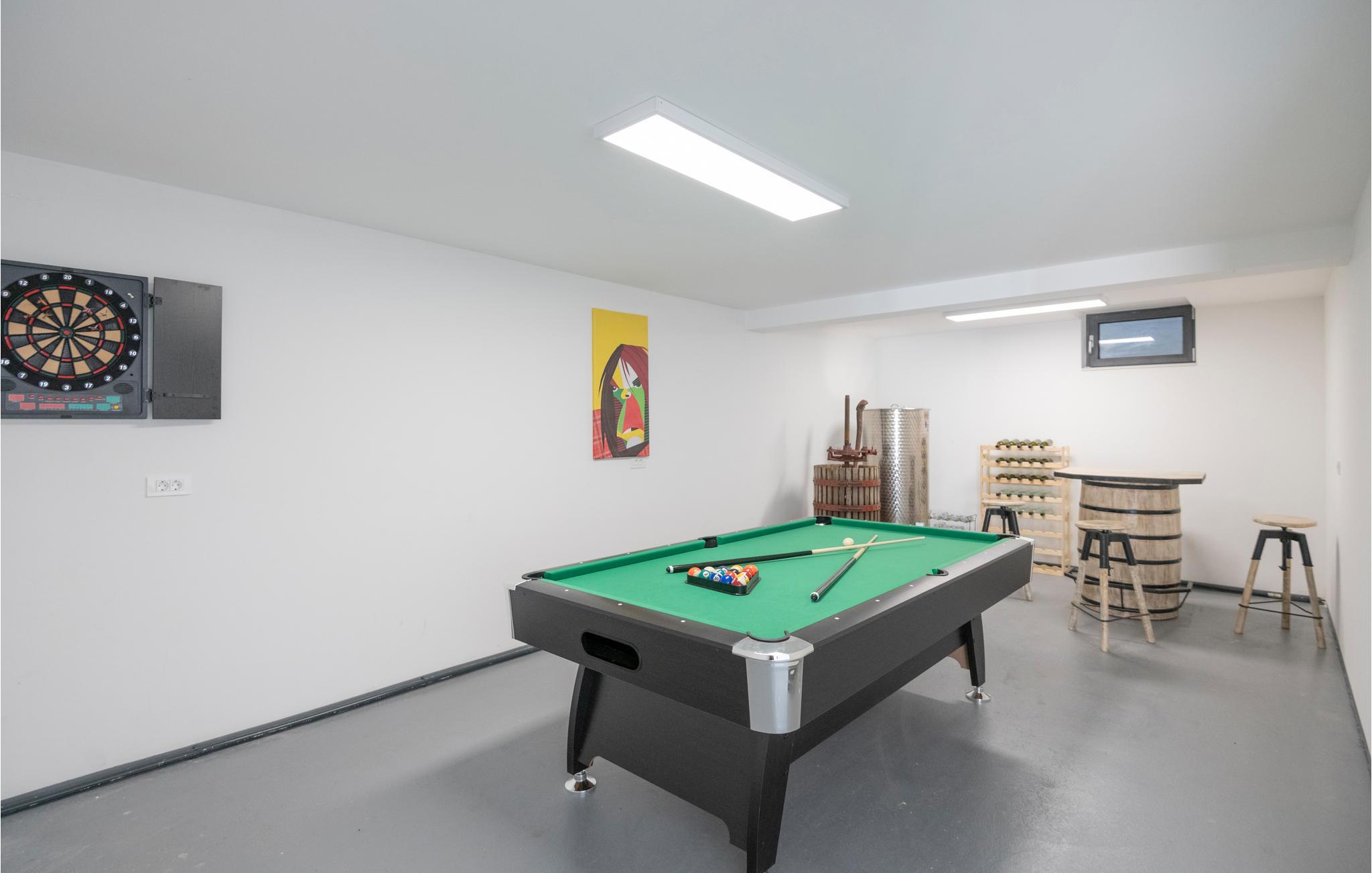 Am Nachmittag können Sie es sich gemütlich machen, auf dem Grundstück grillen, während Ihre Kinder um Sie herum spielen, schaukeln, den Sandkasten, Spielhaus und die Rutsche nutzen. Bei schlechtem Wetter gibt es auch viele Möglichkeiten im Haus, u.a. Billard, Tischtennis, Dart, Playstation4 und Kickertisch.