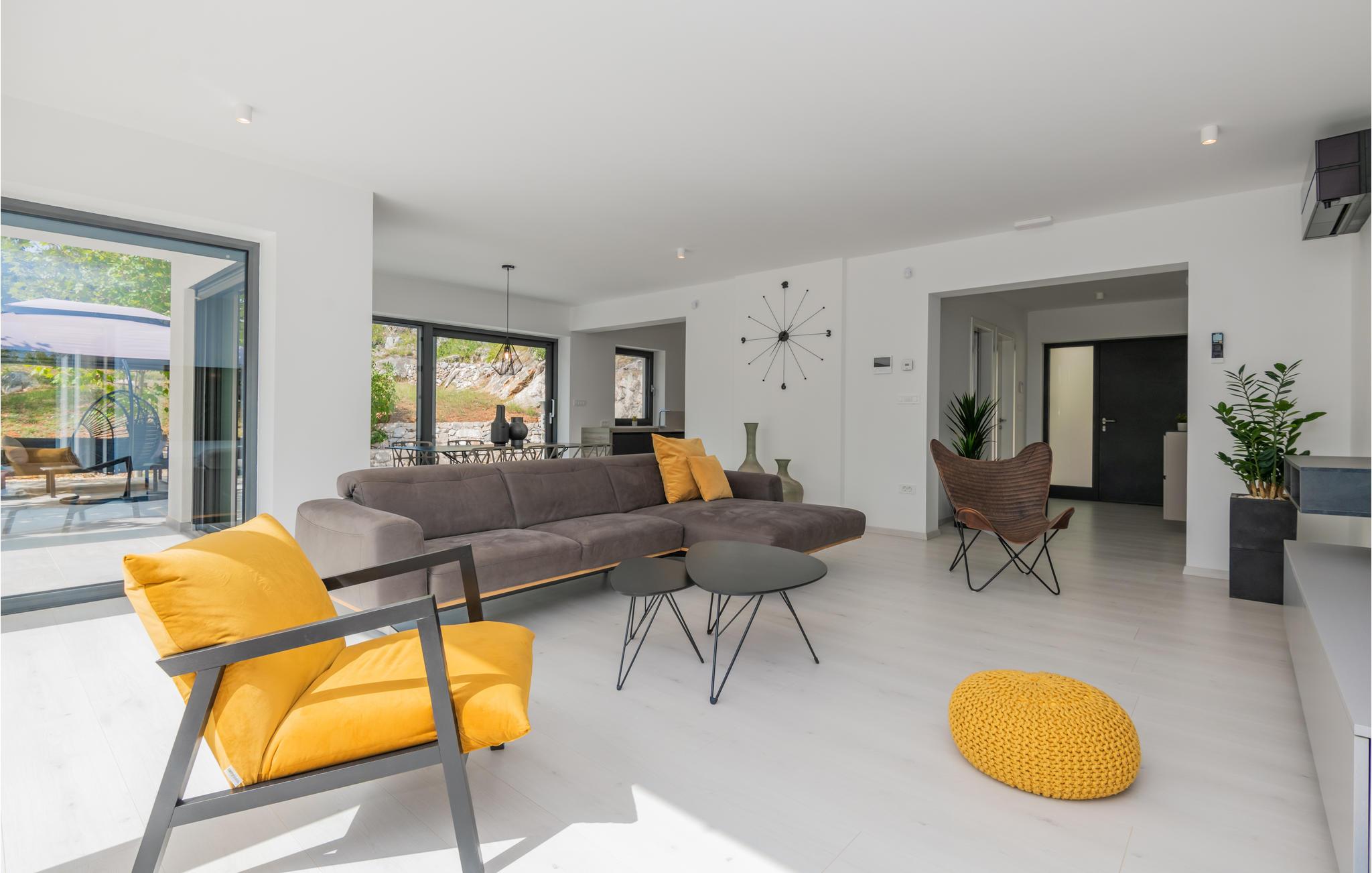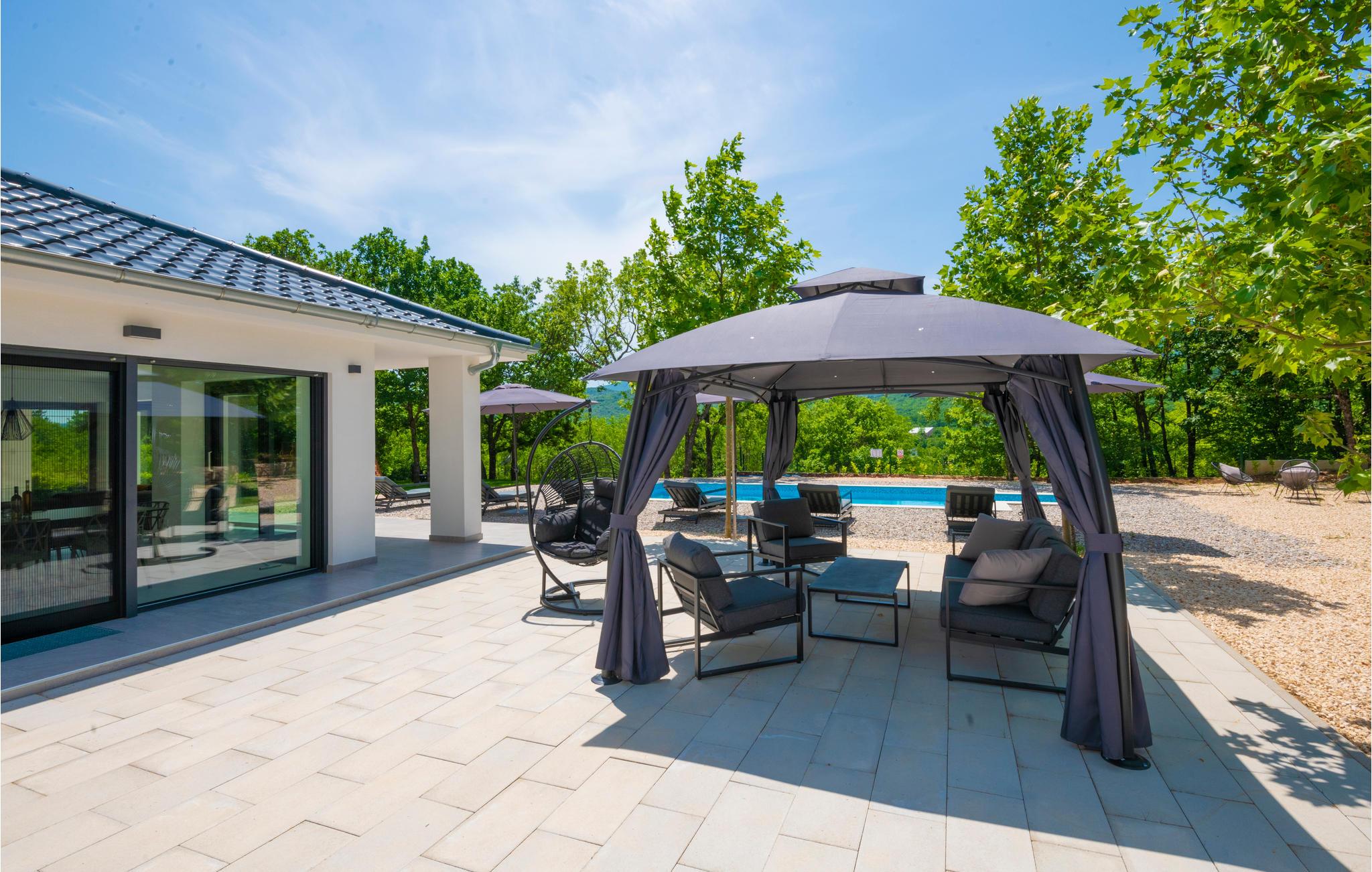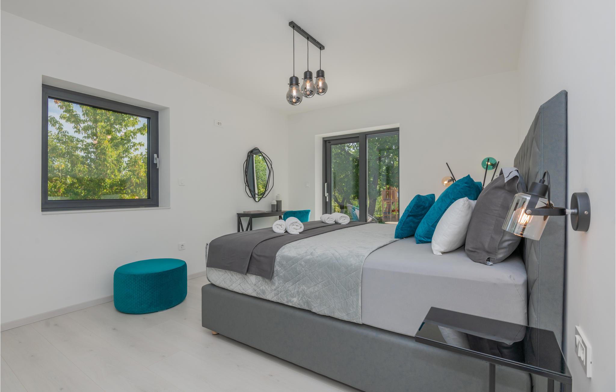 Morgens wachen Sie in den gemütlichen Räumen dieses Ferienhauses erholt auf und können sich auf einen tollen Tag freuen. Vielleicht möchten Sie vor dem Frühstück im Salzwasser-Swimmingpool auf dem Grundstück schwimmen. Von hier aus haben Sie eine fantastische Aussicht über die Landschaft, und auf der Terrasse können Sie auch gemütlich frühstücken.