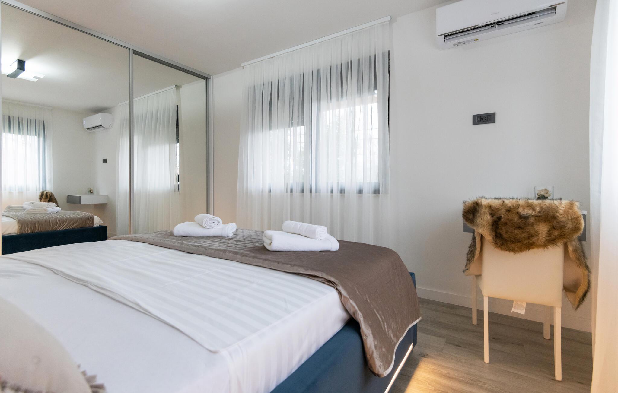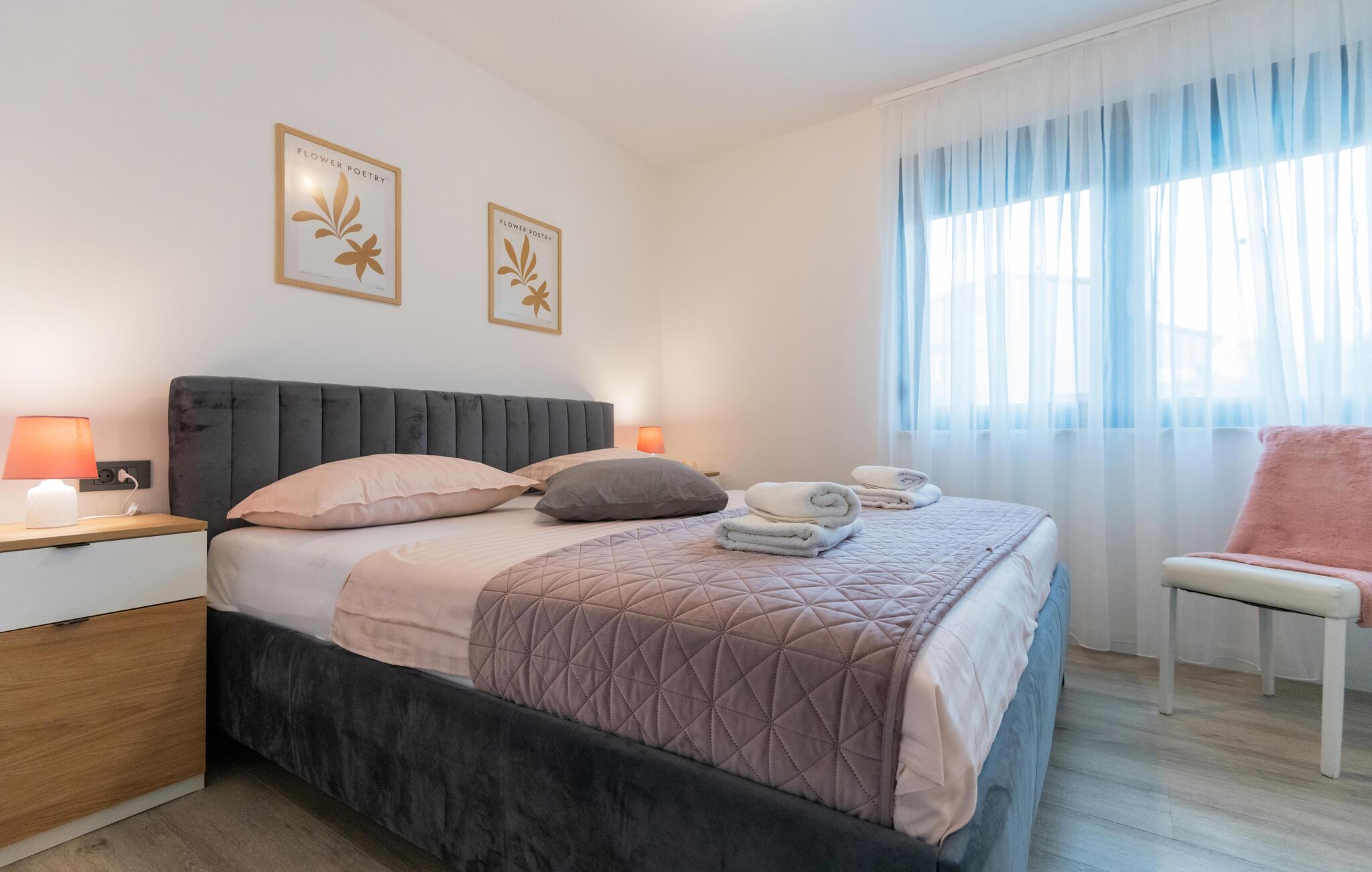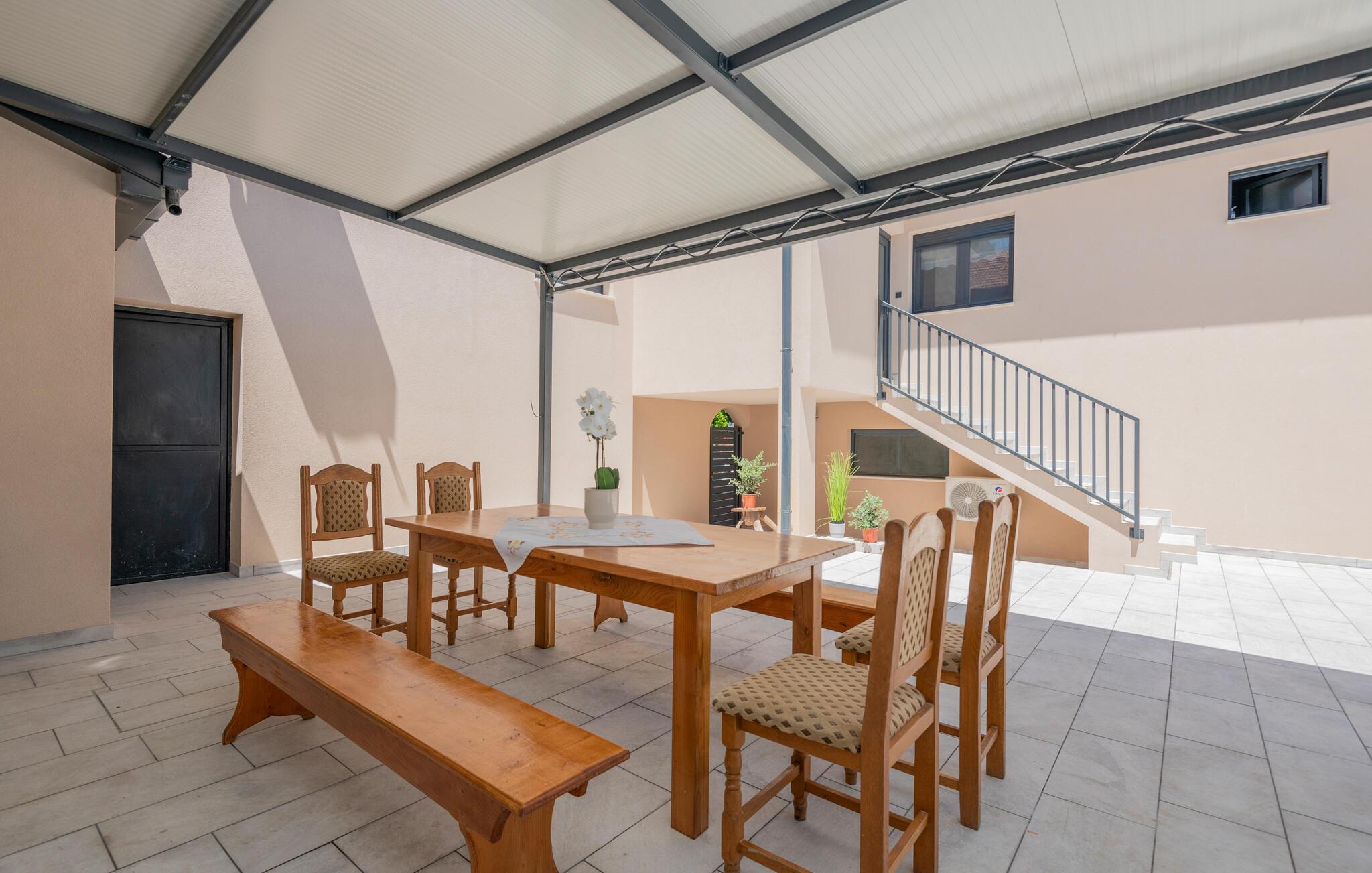 Verbringen Sie Ihren Urlaub in diesem einladenden Ferienhaus in Makarska-Kamenmost. Das Ambiente vereint modernen Komfort mit traditionellem Charme, ideal für erholsame Tage. Die geschmackvolle Einrichtung bietet Ihnen alles, was Sie brauchen, denn geräumige Schlafzimmer bis hin zum stilvollen Wohnbereich lassen Sie zur Ruhe kommen. Genießen Sie Mahlzeiten in der voll ausgestatteten Küche oder entspannen Sie auf der großzügigen Terrasse mit Blick auf den Pool. Der Außenbereich mit Pool lädt zu familiären Momenten und Erholung ein. Sehen Sie Ihren Kindern beim Toben auf dem privaten Spielplatz zu, während Sie auf der Sonnenliege faulenzen.