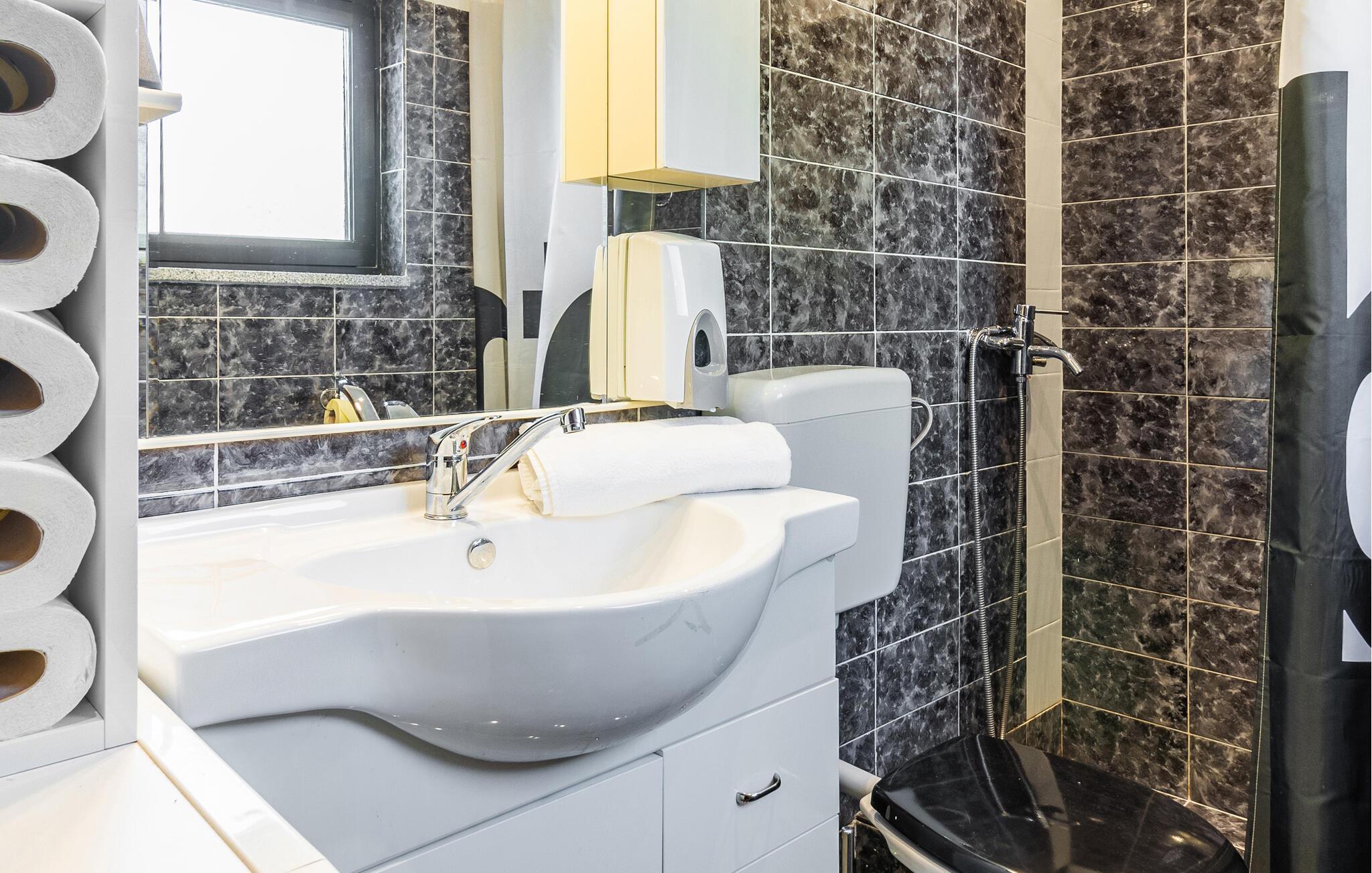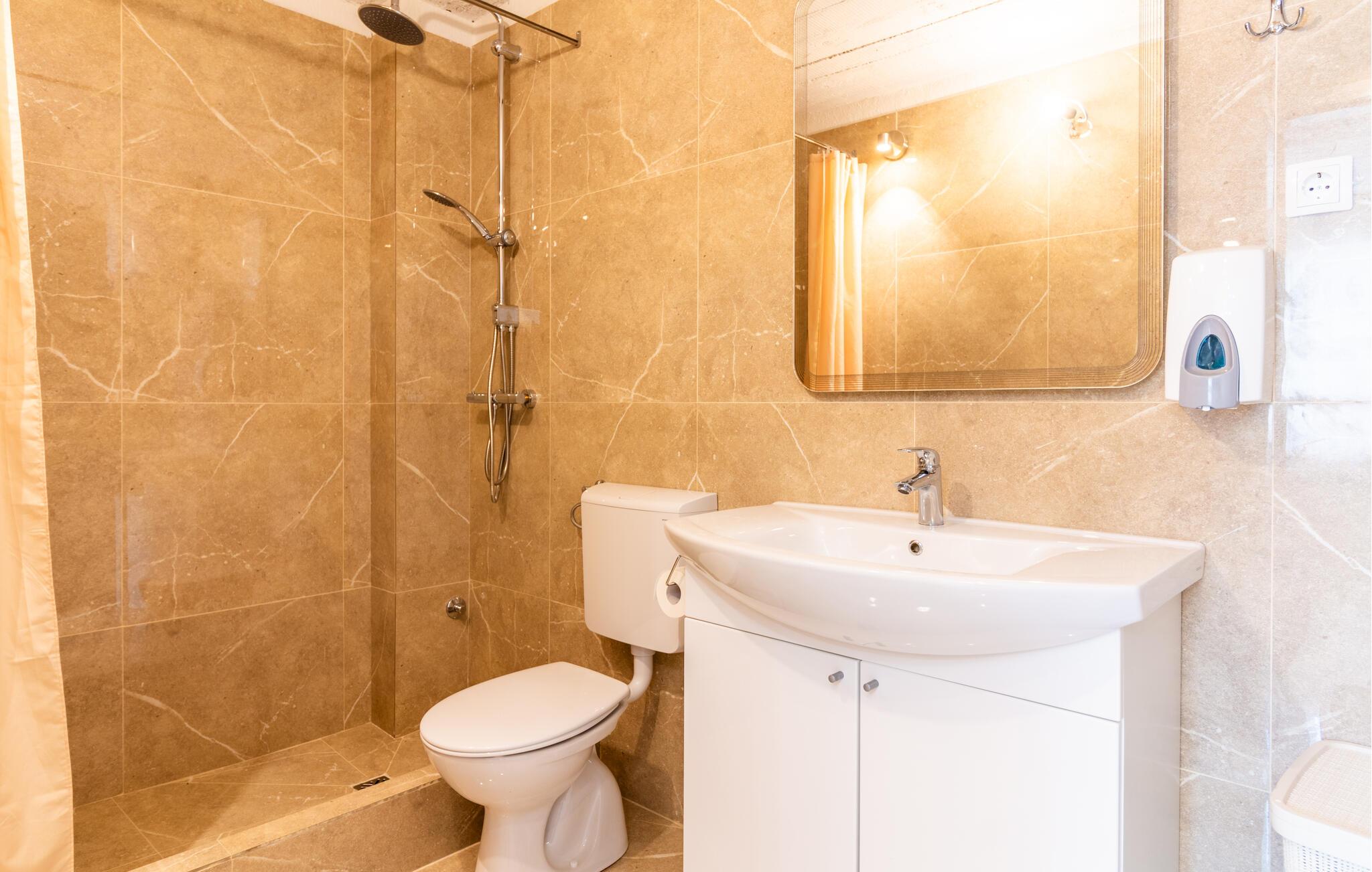 Badezimmer 5m2 (nr. 1) - WC. Warmes und kaltes Wasser. Dusche