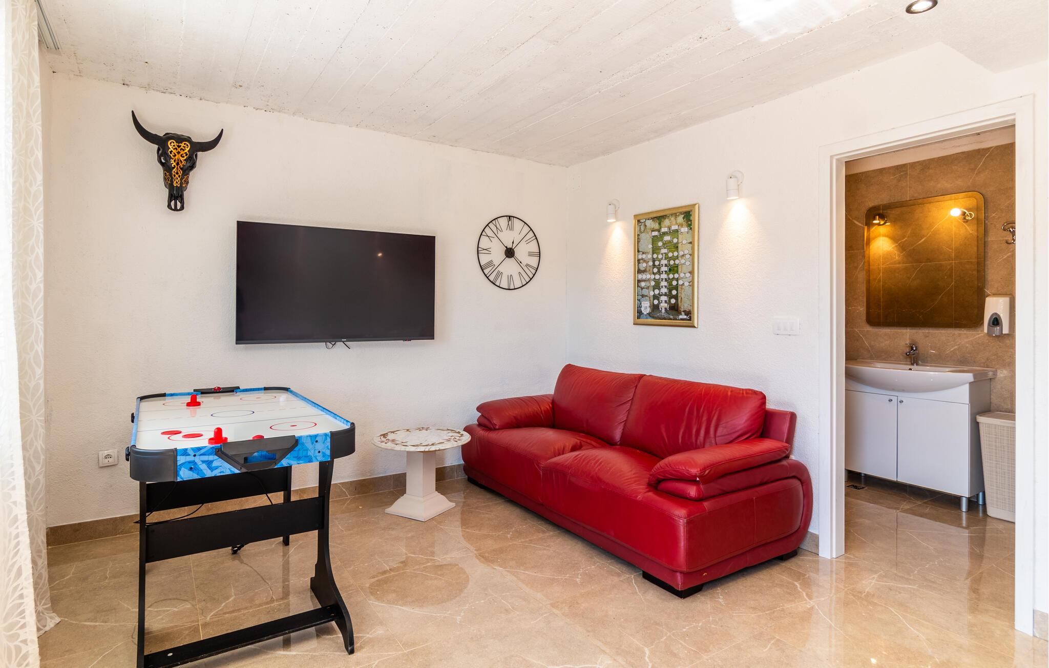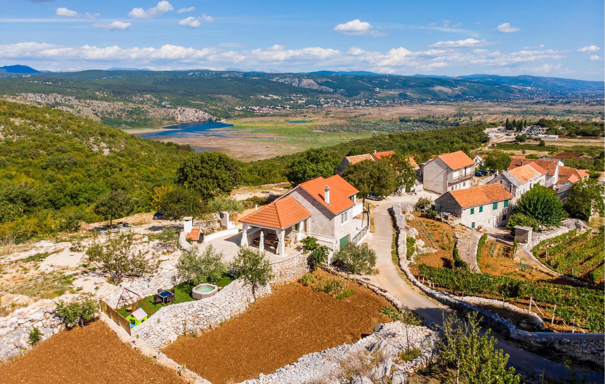 Sie wohnen In der Nähe von mehreren Seen sowie der Stadt Imotski, die im Sommer voller kultureller Veranstaltungen ist. An den Gewässern können Sie Ihrem Angelhobby nachgehen und mit etwas Glück frischen Fisch mit nach Hause bringen. Besuchen Sie auch die Riviera von Makarska mit ihren wunderschönen Kiesstränden, die in zwanzig Autominuten erreichbar sind. Relaxen im Meereswasser und lassen sich auf der Wasseroberfläche treiben.