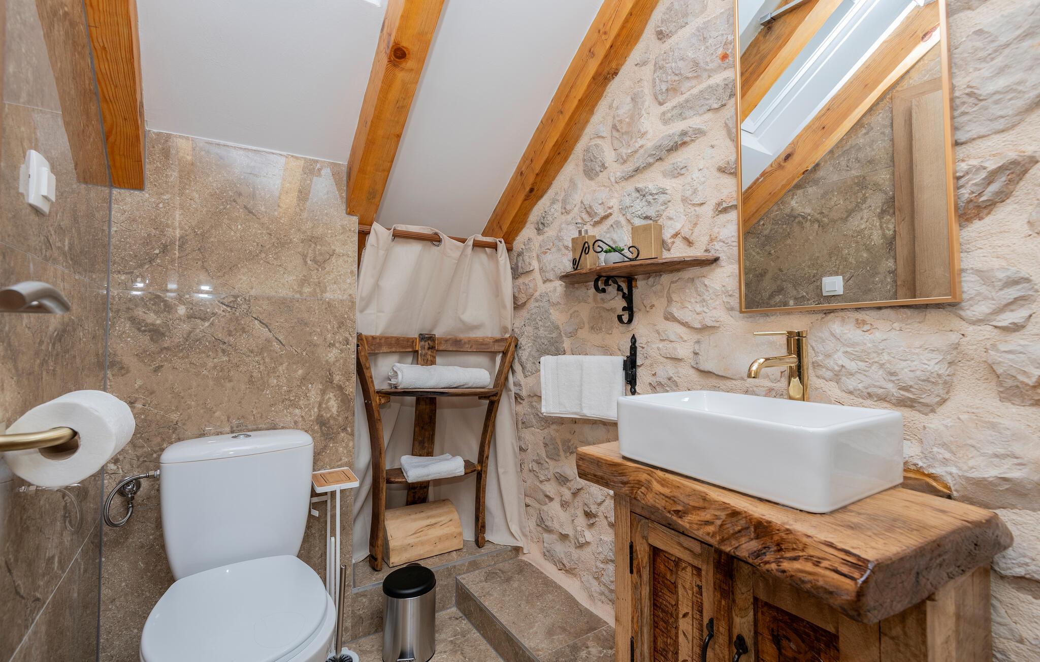 - WC mit warmem und kaltem Wasser, Dusche