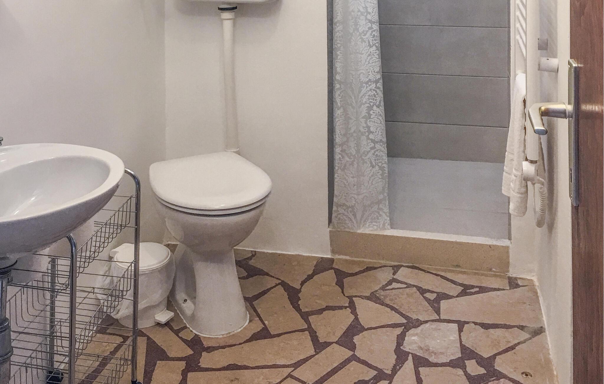 - WC mit warmem und kaltem Wasser, Dusche